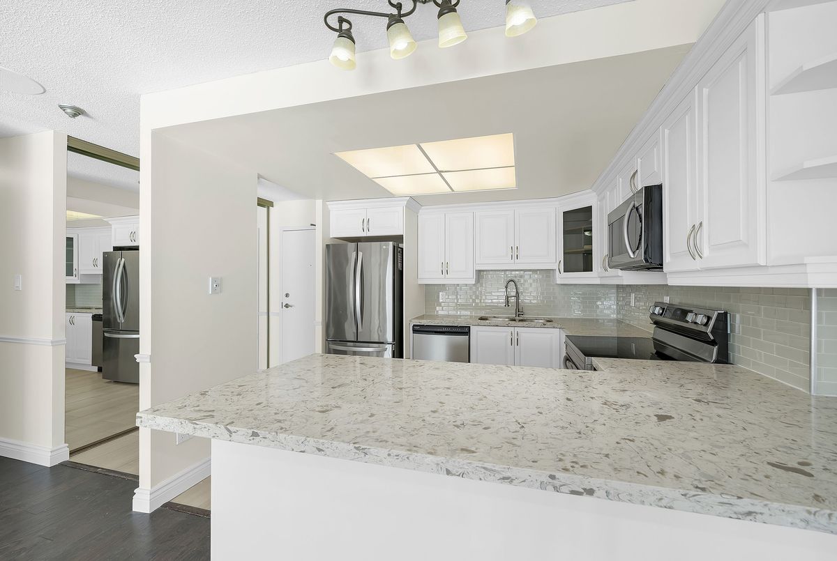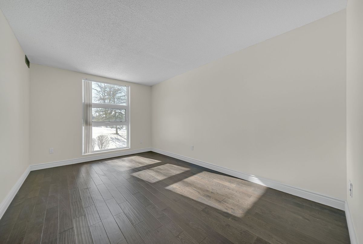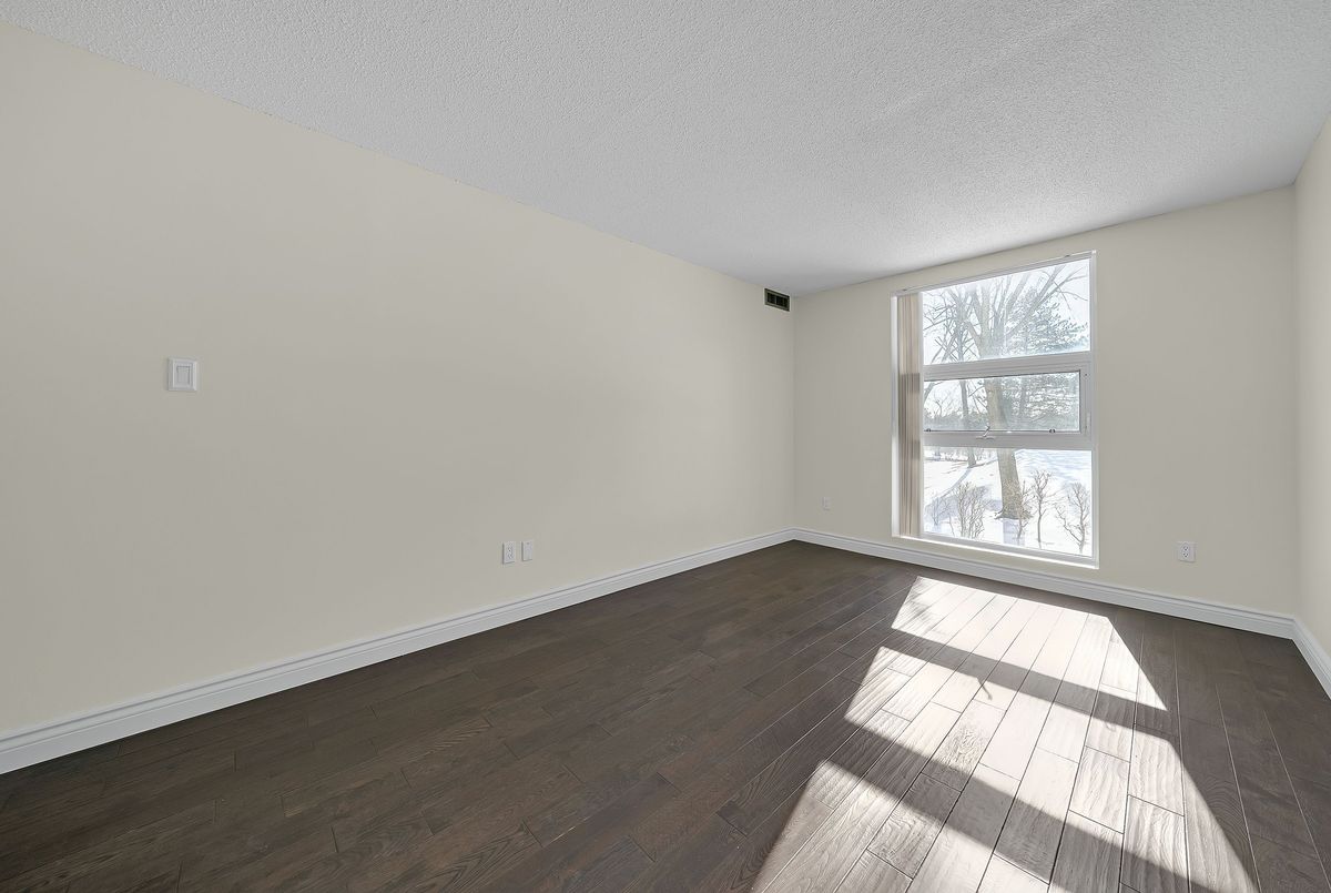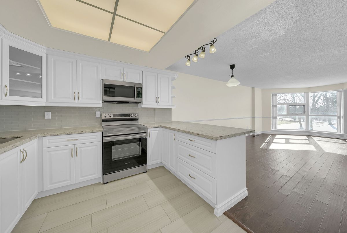 Step into this spacious and beautifully upgraded 2 bedroom, 2-bathroom condo offering 1,140 sq.ft. of bright, open-concept living. Perfectly situated in a quiet, well-managed community just minutes to Hwy 401, TTC transit, shopping, dining, parks, and everyday essentials. This beautifully maintained condo offers the ideal blend of convenience, comfort, and resort-style living. Thoughtfully renovated from top to bottom, this stunning suite features a modern open concept, chef's kitchen complete with stainless steel appliances, custom cabinetry, premium marble countertops, and elegant engineered hardwood flooring throughout. Floor-to-ceiling windows flood the living and dining areas with natural light while showcasing serene views of professionally landscaped gardens, creating a warm and inviting atmosphere. The functional layout offers generous living space ideal for both everyday comfort and entertaining, with seamless access to a private balcony. Enjoy an exceptional lifestyle with resort-style amenities including an indoor saltwater pool, fitness centre, sauna, tennis court, party room, library, 24-hour security, and beautifully manicured gardens. Ideally located just minutes to Hwy 401, TTC, shopping, dining, parks, and everyday conveniences.
