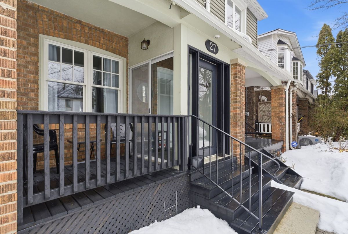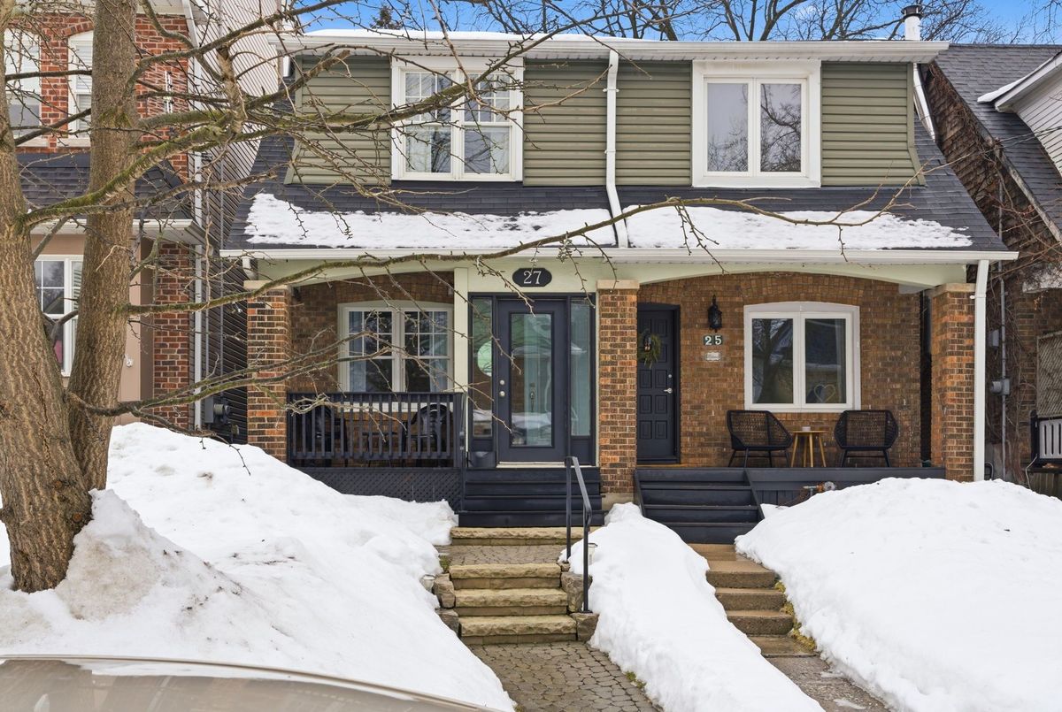 Welcome home to 27 Osborne, nestled on a quiet one-way street in the Upper Beaches. From the moment you step inside, you're embraced by this meticulously maintained and highly functional three-bedroom home, perfectly suited for growing families. The main floor showcases hardwood flooring throughout and a warm, inviting living room with a wood-burning fireplace overlooking the front porch and dining area. An eat-in kitchen opens to the family room and backyard-ideal for everyday living or entertaining. Upstairs features three generously sized bedrooms, including a primary retreat with a cathedral ceiling. The finished basement offers an exceptional recreation room along with a spacious laundry area complete with a sink and abundant storage. Step outside to a private backyard leading to an oversized 2 car garage and a shed, perfect for seasonal storage. Lovingly cared for by the same family for 34 years, this home truly has it all - just steps to the Danforth GO for a quick 13-minute commute downtown. Laneway housing potential.