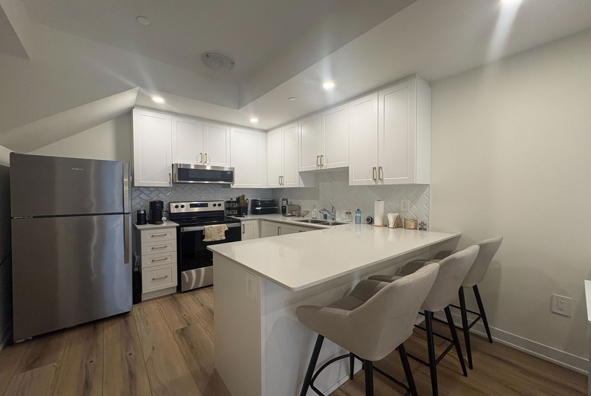 Beautiful townhome conveniently located in one of Pickering's desirable neighbourhoods! Featuring 2 bedrooms, 2.5 bathrooms, and stylish finishes throughout, this home offers the perfect blend of comfort and sophistication. Enjoy vinyl plank floors, upgraded cabinets, a sleek backsplash, and stunning quartz countertops in the kitchen. Pot lights on both levels create a bright and inviting space. The primary bedroom features a luxurious ensuite with quartz countertops. Conveniently located just minutes from Hwy 407 & 401, with easy access to shopping, restaurants, GO Train stations, and more. A must-see! Please note : some images are virtually staged
