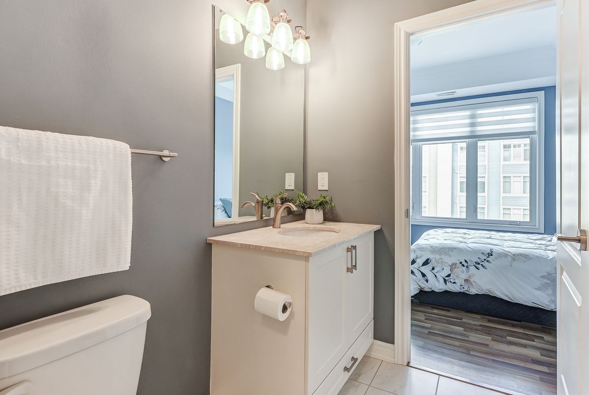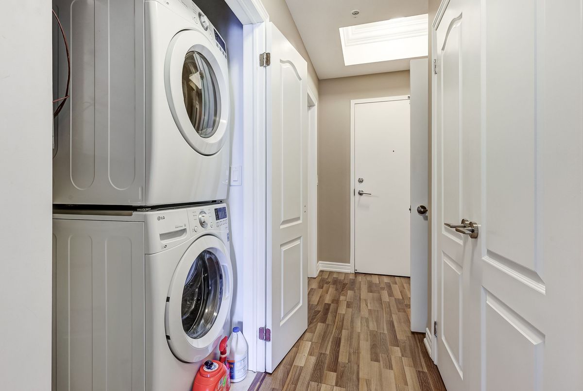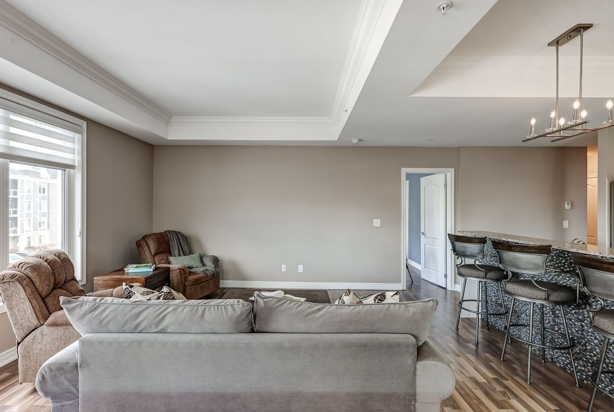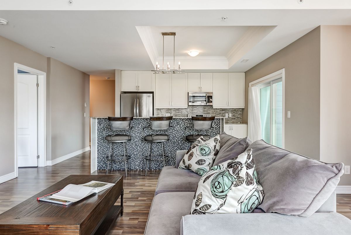 Elevate Your Lifestyle at Harbourside Condos in Whitby Shores, where this meticulously maintained 2+1 bedroom residence awaits. Spanning an impressive 1,322 square feet and featuring 9' coffered smooth ceilings with crown moulding and custom zebra window blinds. This spacious unit offers a thoughtfully designed layout ideal for modern living. The open-concept living and dining area creates an inviting flow, perfect for relaxation or entertaining. The gourmet kitchen boasts stainless steel appliances, elegant granite countertops, under-cabinet lighting, and a contemporary tile backsplash. The central island, complete with a breakfast bar, is perfect for casual dining. Step out onto your private balcony to savour morning coffee or bask in the beauty of evening sunsets. Retreat to your private primary bedroom featuring a walk-in closet and a luxurious 3-piece ensuite bath with a walk-in shower. This split bedroom floor plan offers a second bedroom equipped with a large double closet and a convenient semi-ensuite 4-piece bath. The versatile den is perfect as a home office, private study, or guest suite, enhancing the functionality of this exceptional living space. Enjoy the convenience of underground parking ideally located near the entrance, alongside a private locker for additional storage. As a resident of Harbourside Condos, enjoy exclusive access to the Pavilion Clubhouse, which features event spaces, full kitchens, a rooftop patio with stunning lake views, and inviting outdoor BBQ areas-ideal for gatherings. Located steps from scenic waterfront trails, the Whitby Yacht Club, Iroquois Park Sports Centre, accessible public transit, restaurants, and local amenities,. Commuting to downtown or around the GTA is made easy with close proximity to Whitby GO Station and Highway 401. Make Harbourside Condos your new home and embrace the vibrant lifestyle that Whitby Shores has to offer.