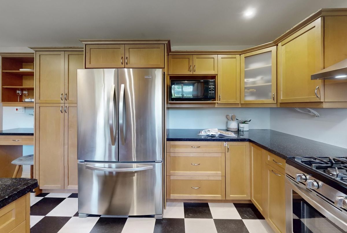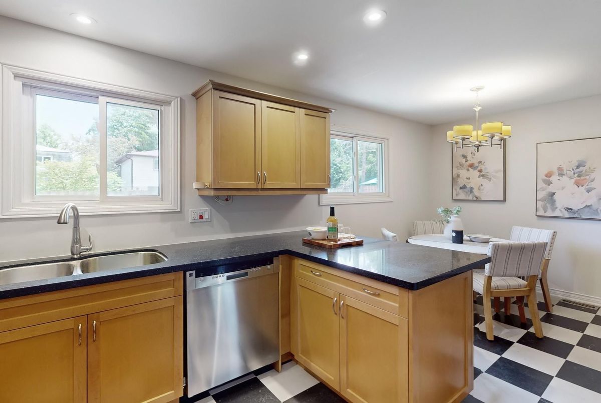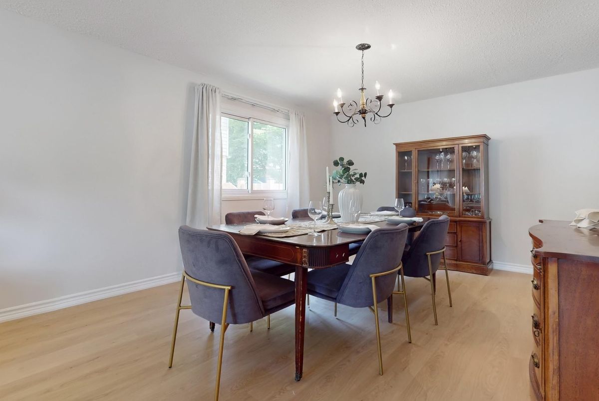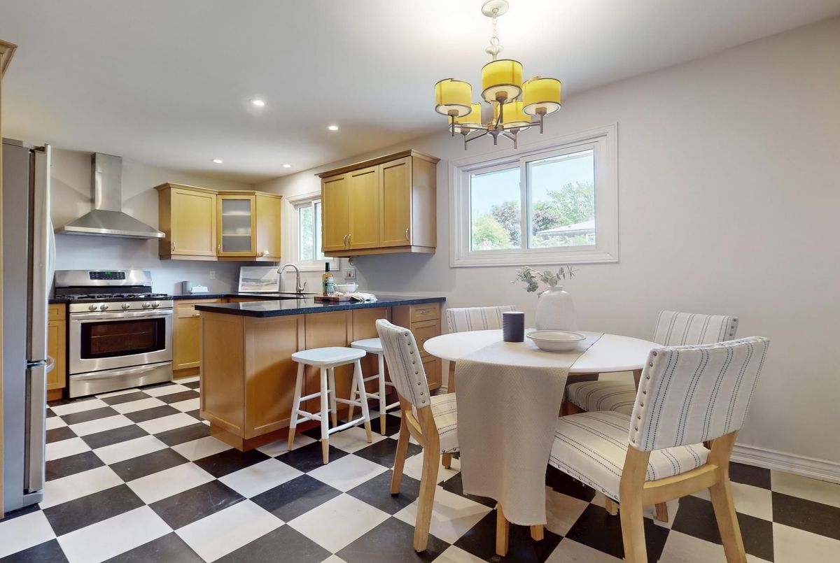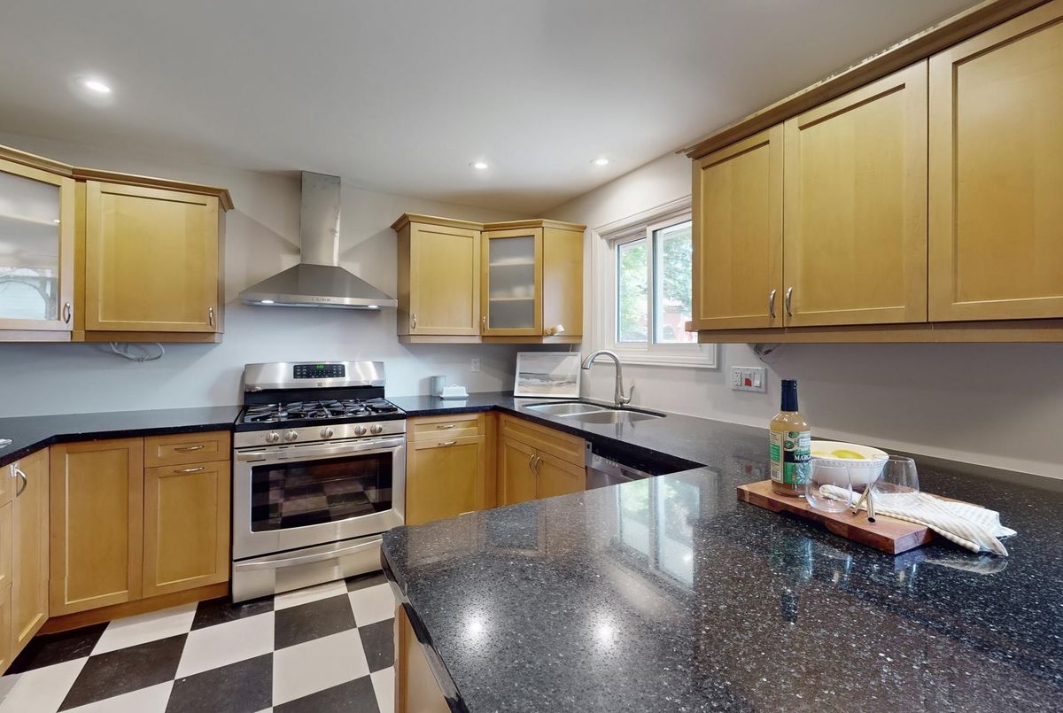 Beautifully maintained 4-bedroom home offering 2,385 sqft on a picturesque, tree-lined street in the highly sought-after Markham Village. The open-concept living and dining area boasts newly installed vinyl flooring, fresh paint, and a large window overlooking the front yard, ideal for relaxing or entertaining. The cozy family room includes updated carpet, a charming brick fireplace (as-is), and a seamless walkout to a backyard patio perfect for indoor-outdoor living. The spacious eat-in kitchen is equipped with stainless steel appliances, granite countertops, pot lights, and ample cabinet space. Additional highlights include a convenient main floor laundry with storage and backyard access, a generously sized primary bedroom with built-in closet organizers and a 4-piece ensuite, plus three more spacious bedrooms upstairs alongside a linen closet and a 4-piece main bathroom. The expansive backyard offers plenty of play space, mature trees, flower beds, a large patio, and direct garage access. Ideally located within walking distance to top schools, parks, Markham Stouffville Hospital, and Historic Main Street Markham's shops and eateries, the home also provides easy access to GO Transit, Highway 407, and the Cornell Bus Terminal, ensuring effortless travel throughout the GTA.