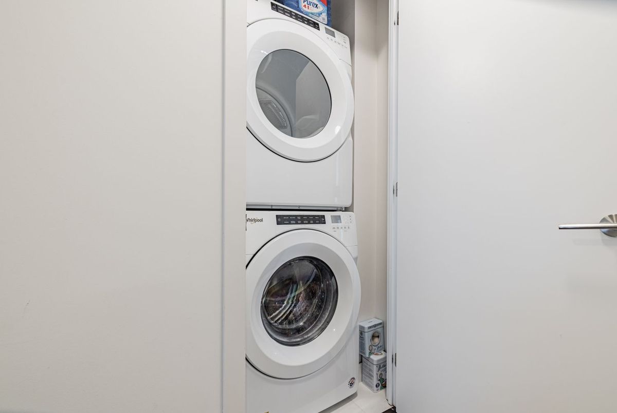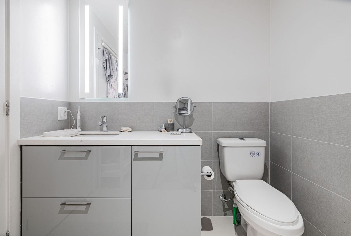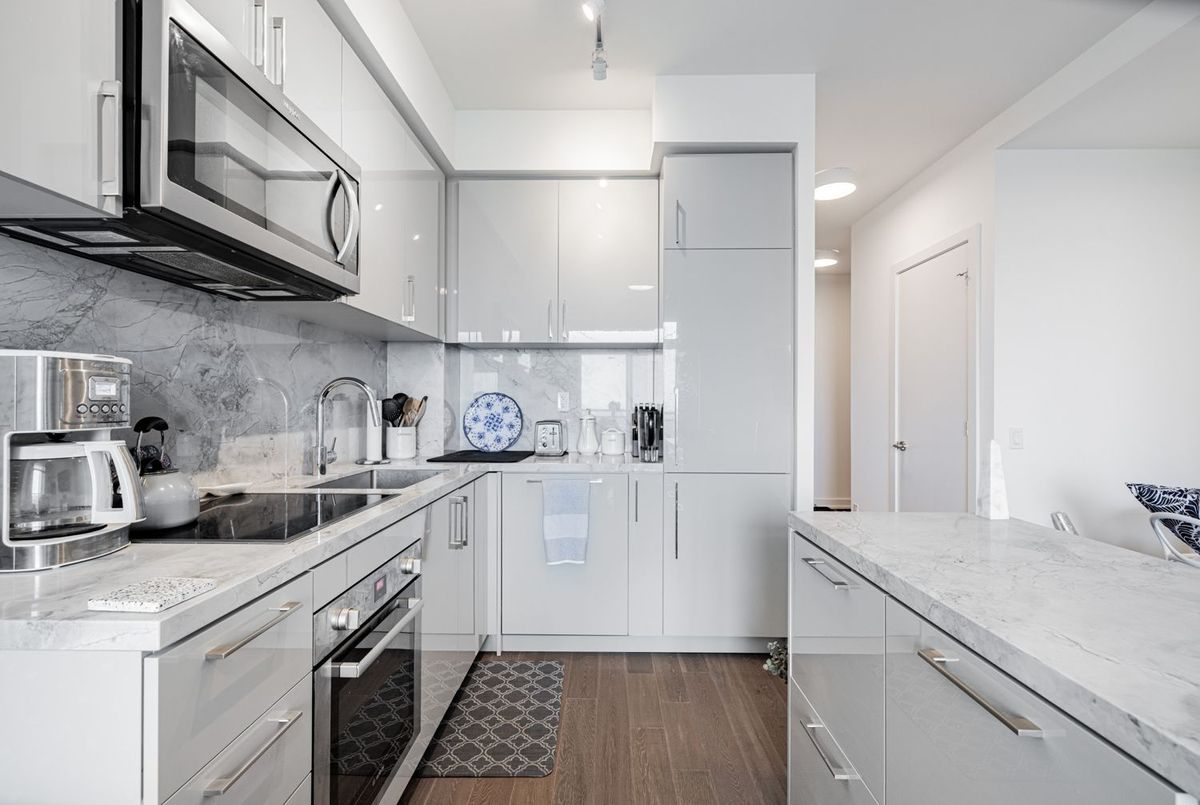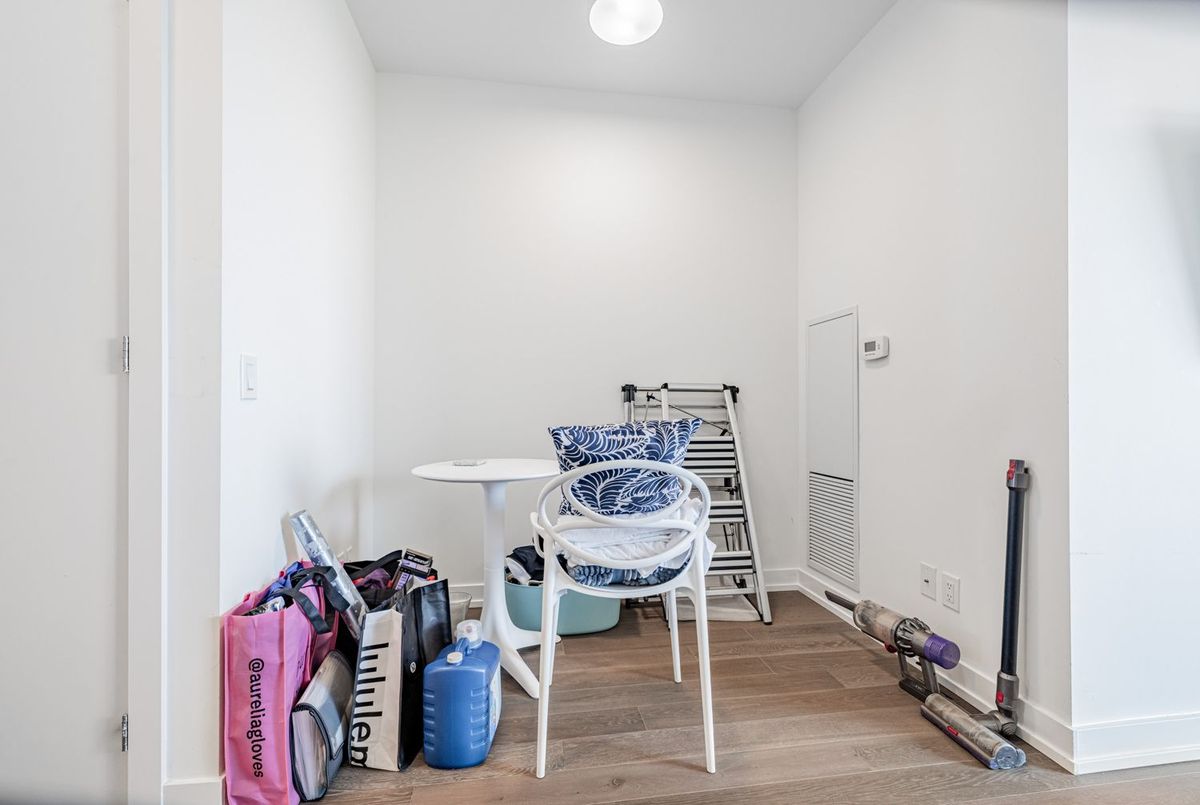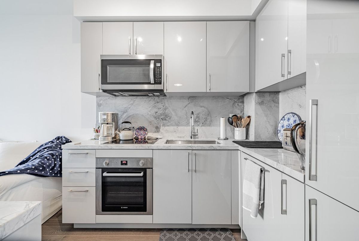 Step into this stunning 1 Bed + Den, 1 Bath condo that perfectly blends style, sophistication, and practicality. Boasting soaring 9-foot smooth ceilings and warm hardwood floors, this bright and inviting residence is filled with natural light from its large east-facing windows and open balcony, offering breathtaking unobstructed sunrise views facing the park! The custom-upgraded kitchen is a standout feature, showcasing sleek cabinetry, stainless steel appliances, granite countertops, and a stylish backsplash, all centered around a functional island ideal for casual meals or entertaining. The spacious den serves perfectly as a home office or dining area. With generous closet space and a thoughtfully designed layout, every detail enhances everyday living. Enjoy premium building amenities including a concierge, fully equipped gym, and a cozy media room. Located just steps to highways, public transit, top-rated schools, shopping, and more!  This condo truly has it all!