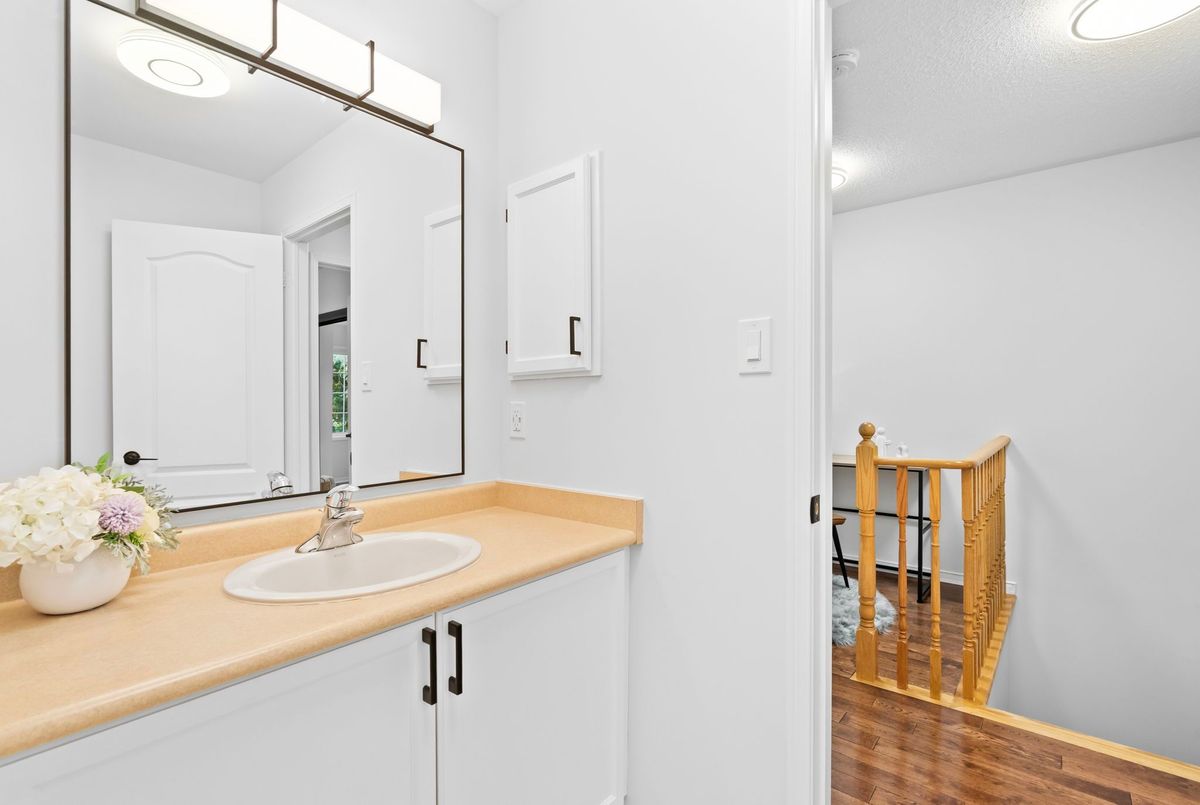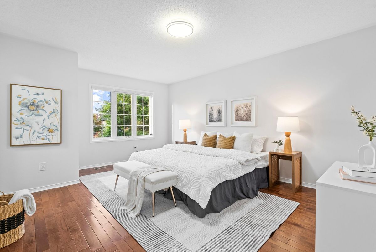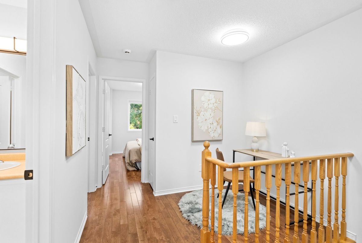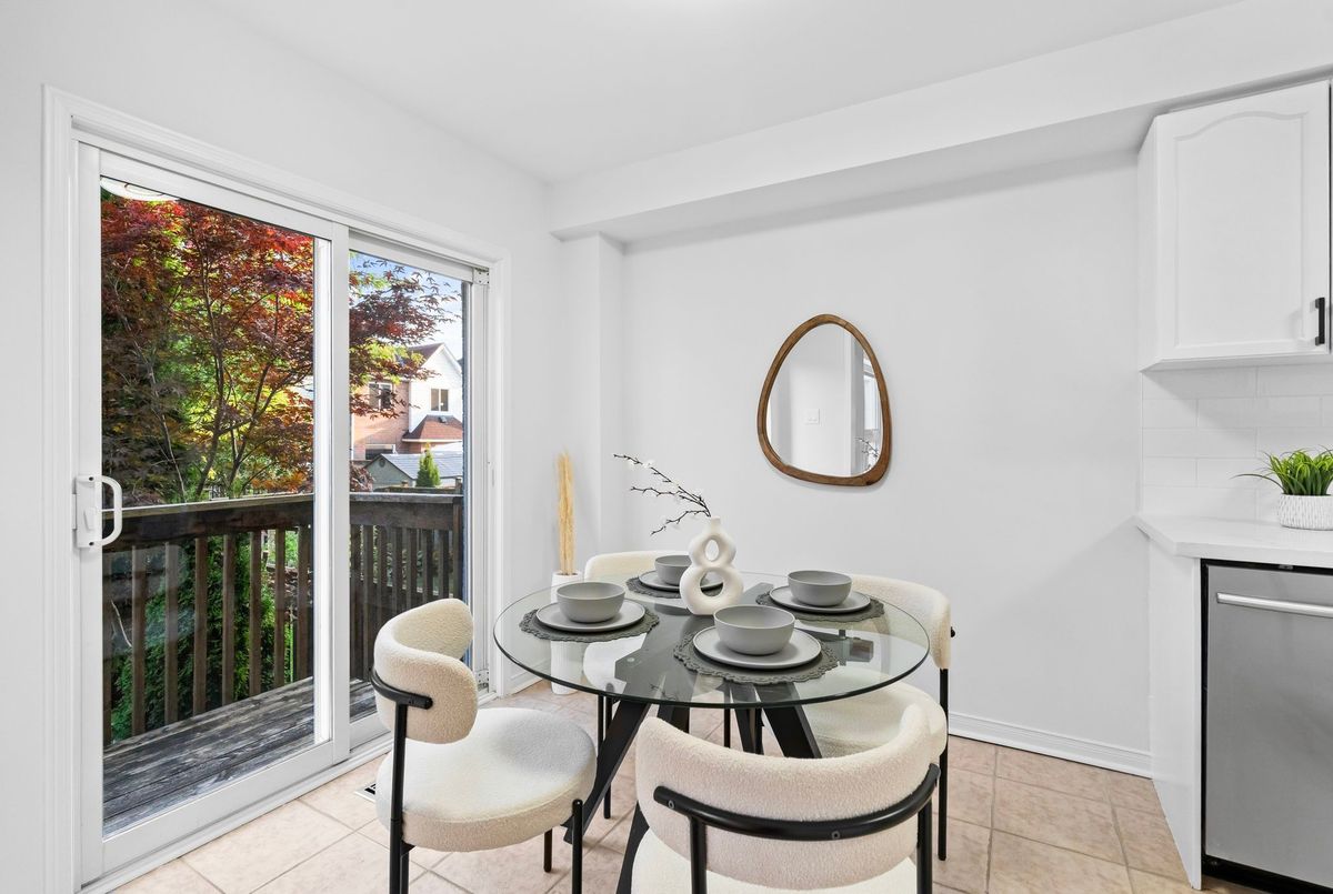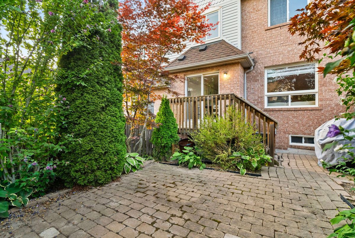 Beautifully Updated 3 Bedroom Freehold Townhome In Highly Desirable Summerhill Estates. This bright and inviting home features an open-concept eat-in kitchen with quartz countertops, a stylish tiled backsplash, stainless steel appliances, and abundant cabinet storage. The interior is finished with hardwood throughout, tall ceilings, a tiled foyer, and convenient direct garage access. Upstairs offers a spacious primary bedroom with a new 3-piece ensuite, two additional bedrooms with large windows and ample closet space, plus a versatile den perfect for a home office, reading nook, or kids study area. Bathrooms have been tastefully upgraded, adding a modern touch. The exterior is newly landscaped with parking for three cars, while the private backyard is interlocked and framed by mature trees, creating a peaceful setting for relaxing or entertaining. Tremendous value in one of York Regions best neighbourhoods, perfect for first-time buyers in a safe and family-friendly community.