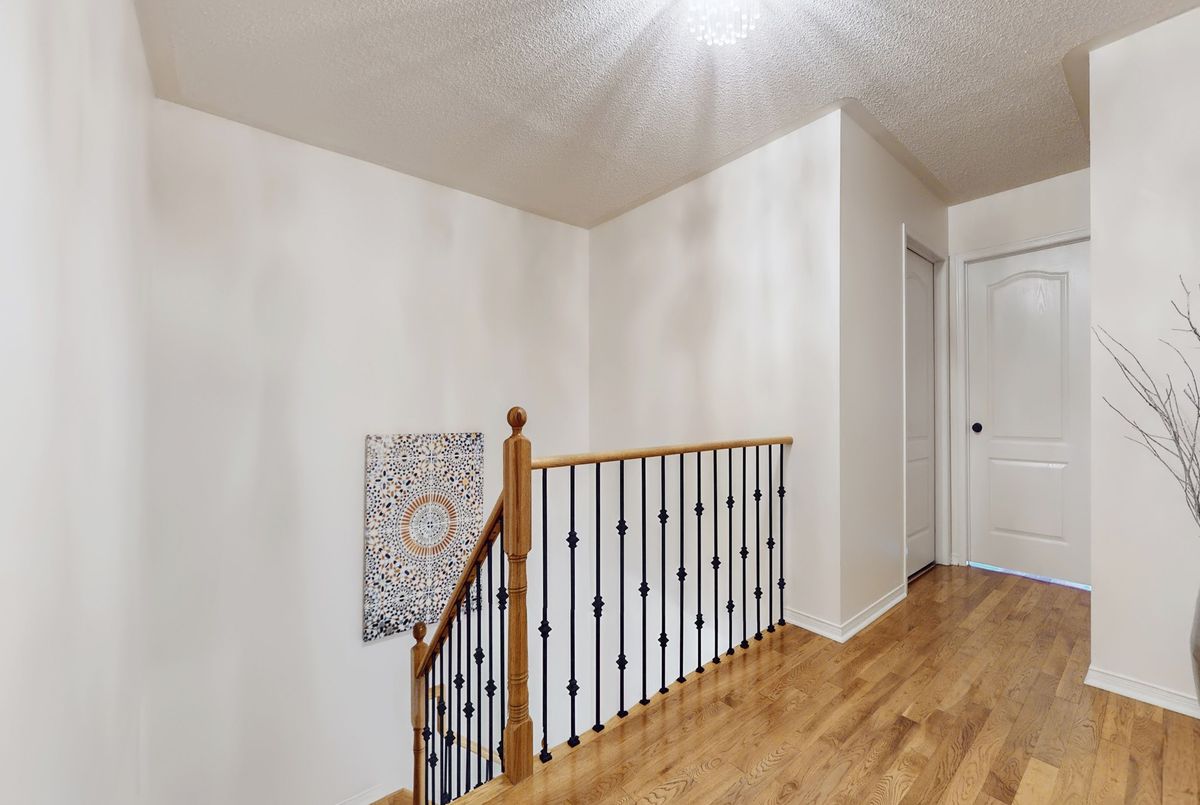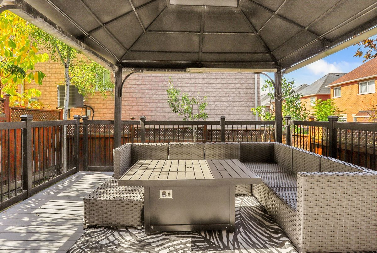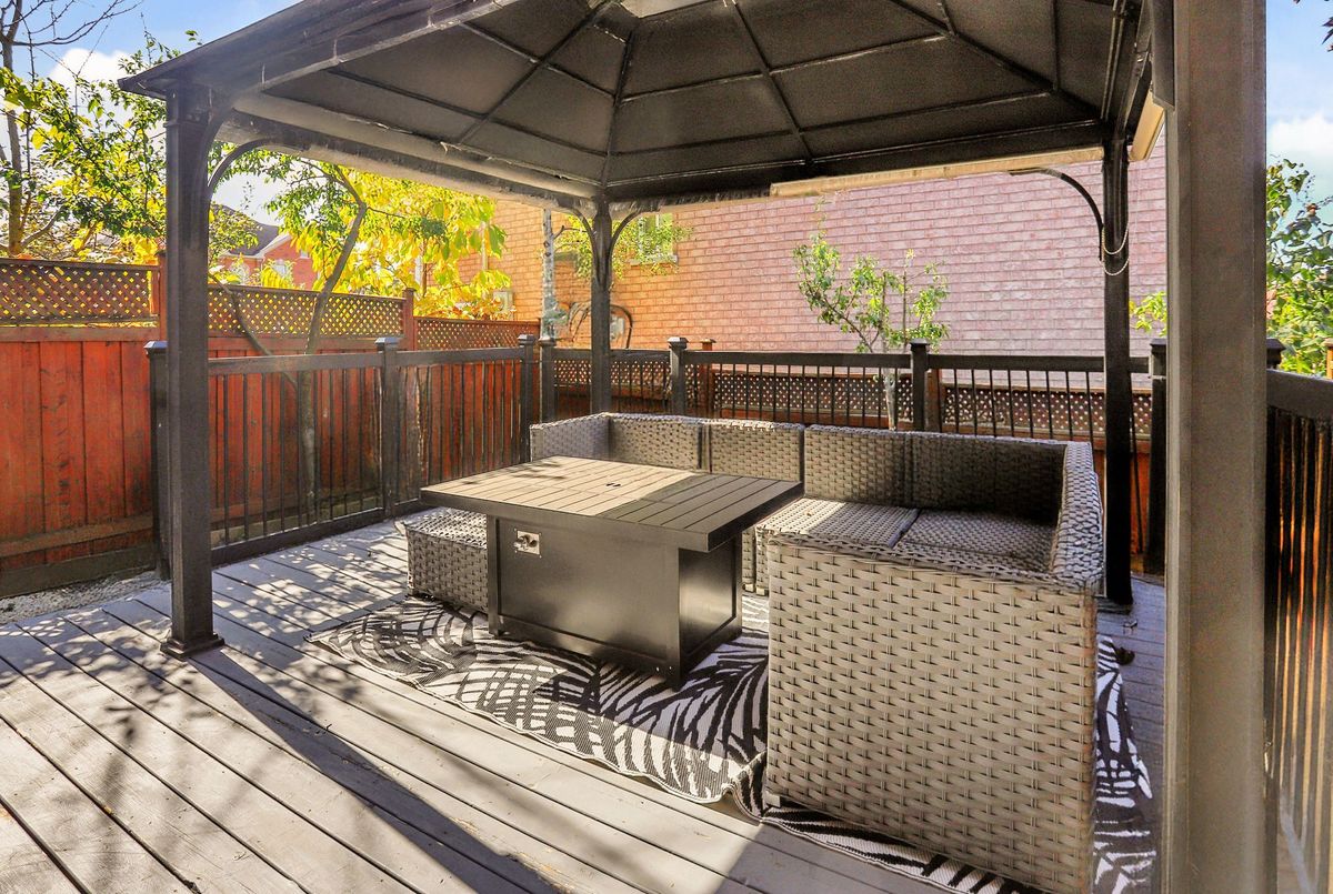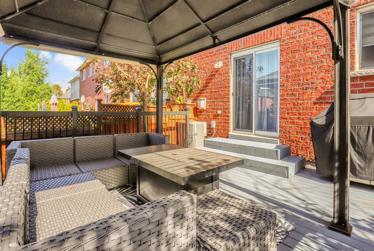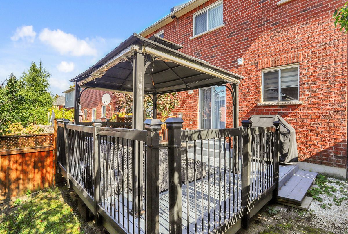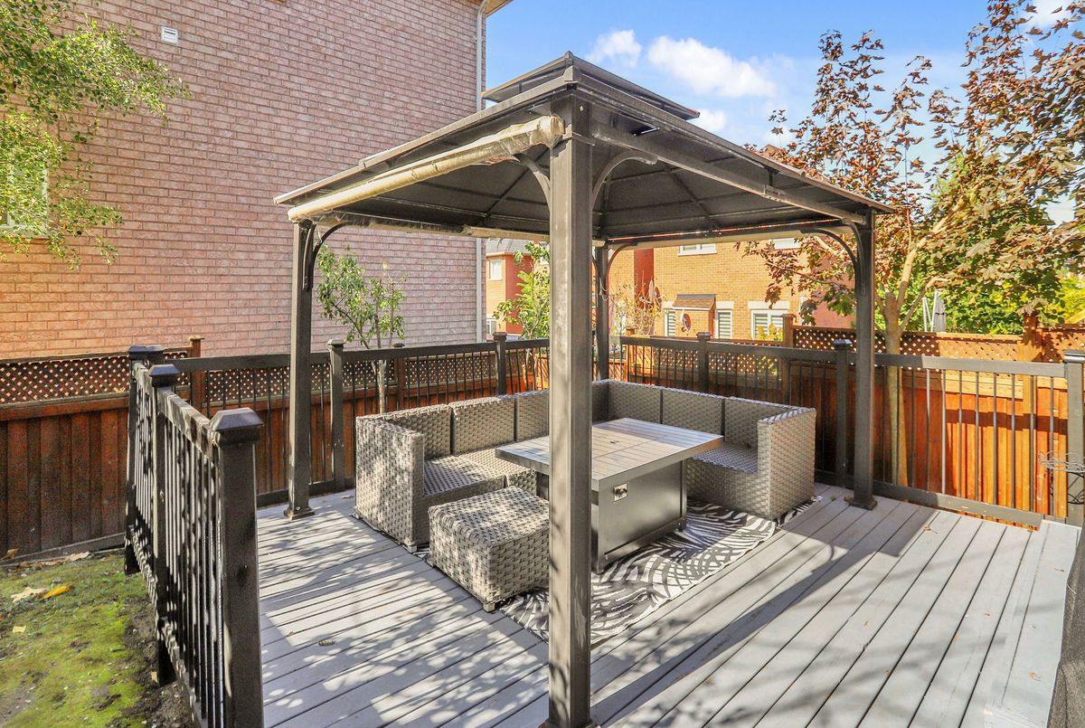Welcome to this exquisite 2 storey freehold townhome situated on a highly desirable street in coveted Bond Lake Village. Boasting over 2,500 sq. ft. of beautifully finished living space, this home combines timeless elegance with modern comfort. Step inside to discover hardwood floors throughout, oak stairs with wrought iron pickets, and a bright, open-concept layout perfect for both everyday living and entertaining. The gourmet kitchen features quartz countertops, custom backsplash, stainless steel appliances, and a cozy breakfast area that seamlessly flows into the family room with gas fireplace and walk-out to a stunning deck with a gazebo, a perfect backyard retreat! Upstairs, the spacious primary bedroom offers a large walk-in closet and luxurious 5-piece ensuite, while 2 additional bedrooms provide generous space and large closets. A fully finished basement includes an expansive recreation room, a dedicated office, pot lights, laminate flooring, and a cold room, creating the ideal space for work or play. Additional highlights include direct garage access, expanded driveway, stone & stucco front exterior, central vacuum, and a fully fenced backyard. Linked only on one side by the garage for extra privacy. Prime location close to Bond Lake, parks, trails, top-rated schools, shops, and public transit.