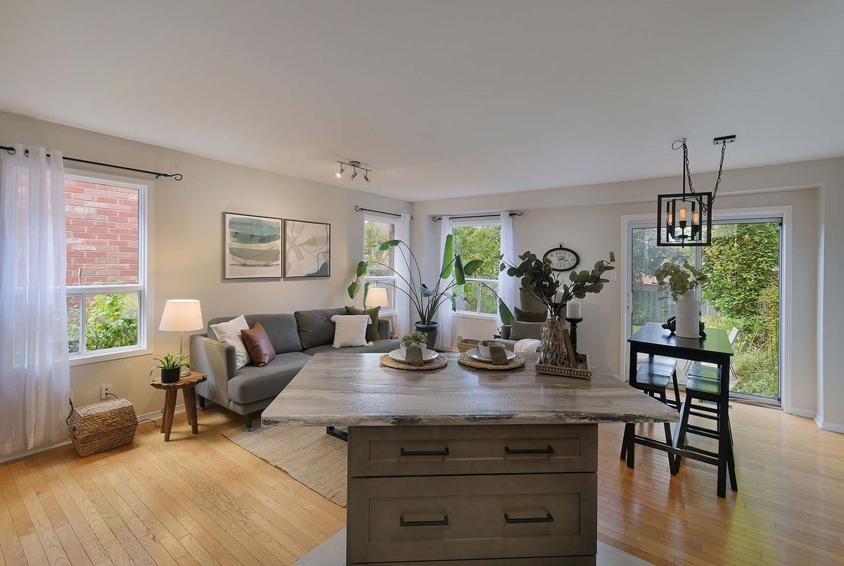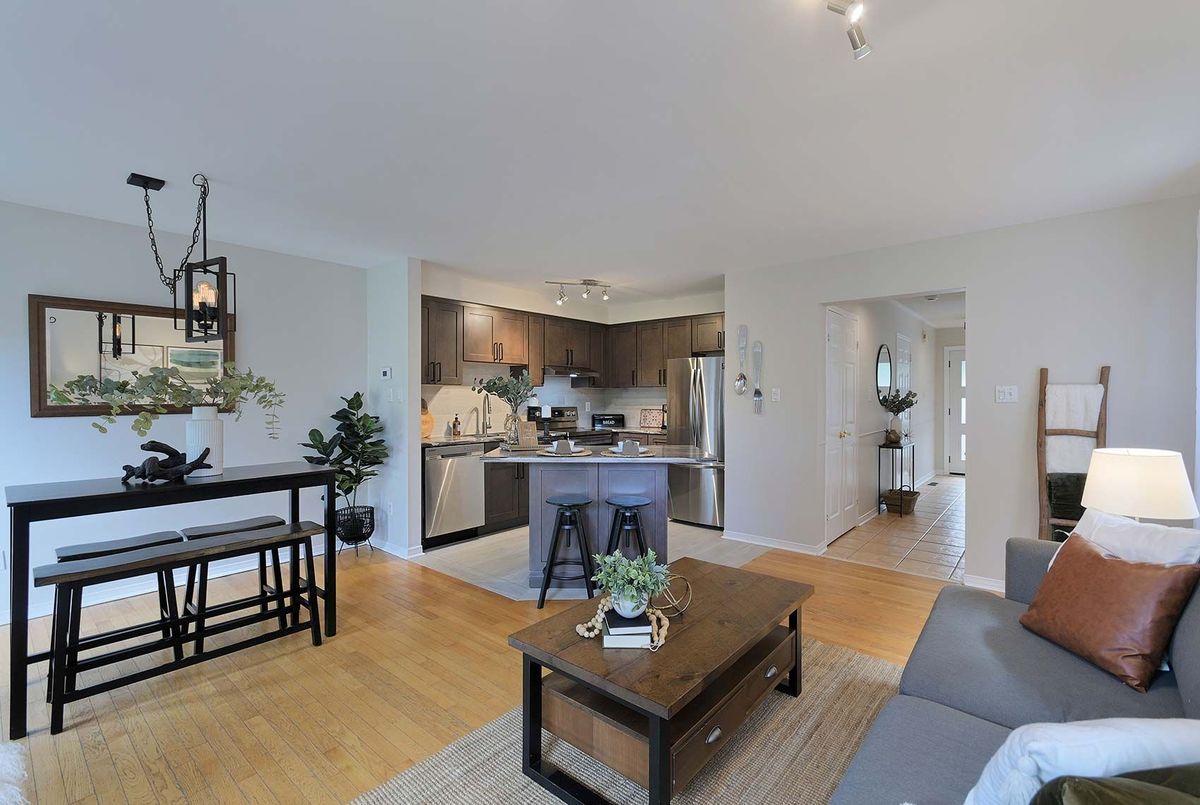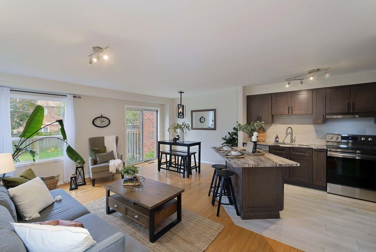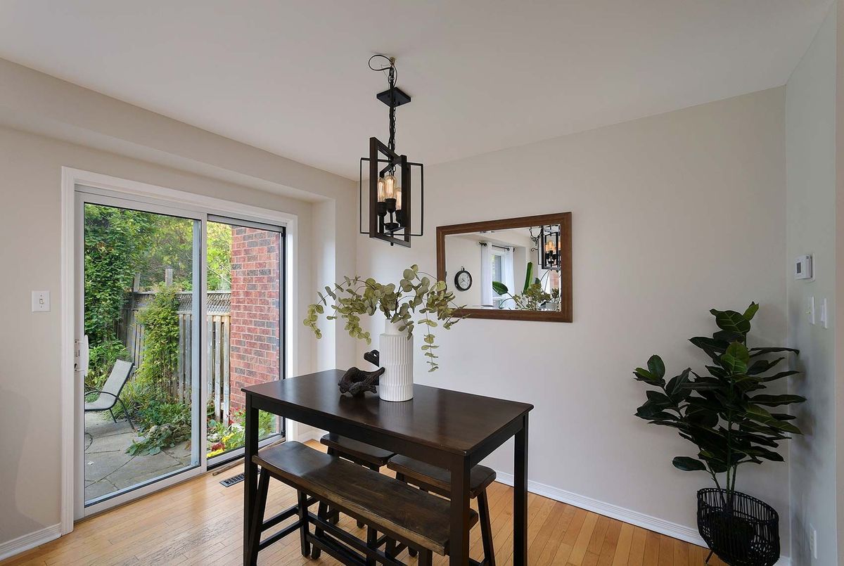 Spacious, end-unit townhouse in desirable neighbourhood. Quiet tree-lined street. Lots of windows bring light into the heart of the home. Freshly painted throughout. Inside access to garage. Open concept main floor has hardwood and ceramic floors. Renovated kitchen with island, new cabinetry, ceramic backsplash and stainless steel appliances. Walk-out to custom paved patio and gorgeous nice-sized back yard. Hardwood stairs. 3 spacious bedrooms. The primary bedroom has large walk-in closet and fantastic renovated ensuite with walk-in shower. The family bathroom is also renovated! The finished basement has large recreation room, finished laundry room, cold cellar and lots of storage. Close to 3 excellent schools, shops and amenities. 5 minutes walk from the Aurora Community Arboretum Path. Enjoy the fields of daffodils in the spring! This is the family home you have been looking for! Furnace and HWT 2018, A/C 2020, Shingles 2013.