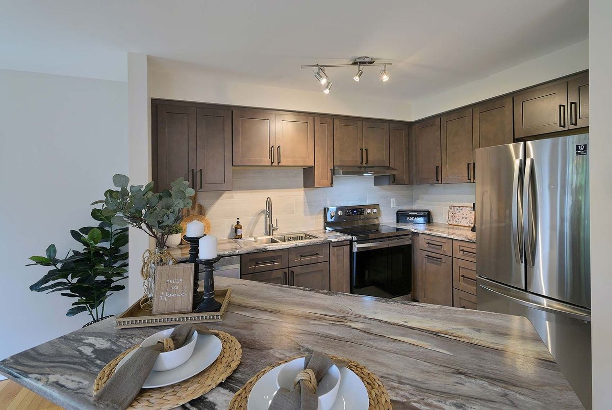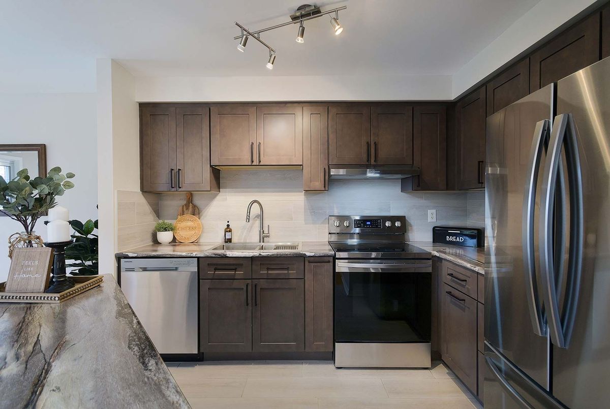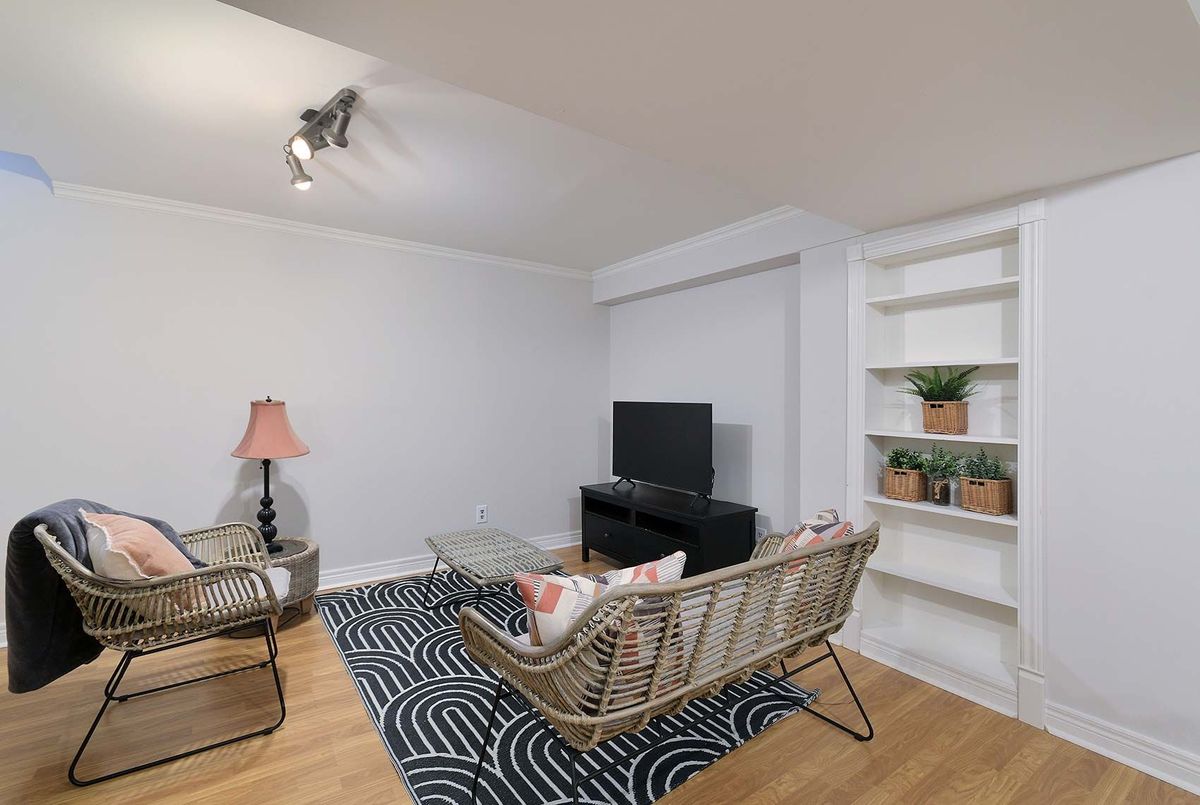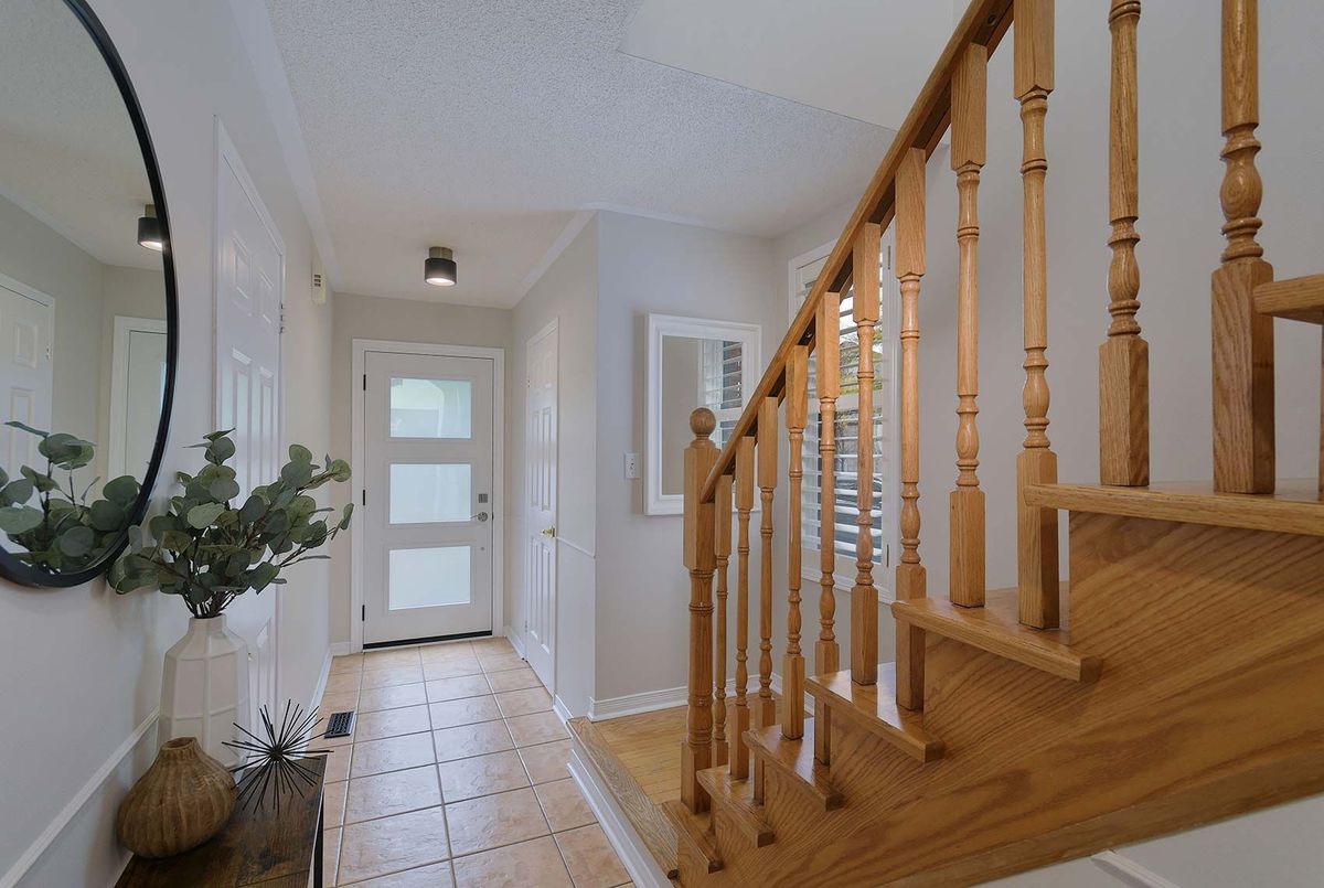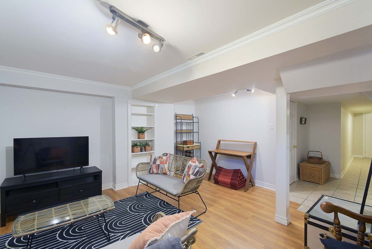Spacious, end-unit townhouse in desirable neighbourhood. Quiet tree-lined street. Lots of windows bring light into the heart of the home. Freshly painted throughout. Inside access to garage. Open concept main floor has hardwood and ceramic floors. Renovated kitchen with island, new cabinetry, ceramic backsplash and stainless steel appliances. Walk-out to custom paved patio and gorgeous nice-sized back yard. Hardwood stairs. 3 spacious bedrooms. The primary bedroom has large walk-in closet and fantastic renovated ensuite with walk-in shower. The family bathroom is also renovated! The finished basement has large recreation room, finished laundry room, cold cellar and lots of storage. Close to 3 excellent schools, shops and amenities. 5 minutes walk from the Aurora Community Arboretum Path. Enjoy the fields of daffodils in the spring! This is the family home you have been looking for! Furnace and HWT 2018, A/C 2020, Shingles 2013.