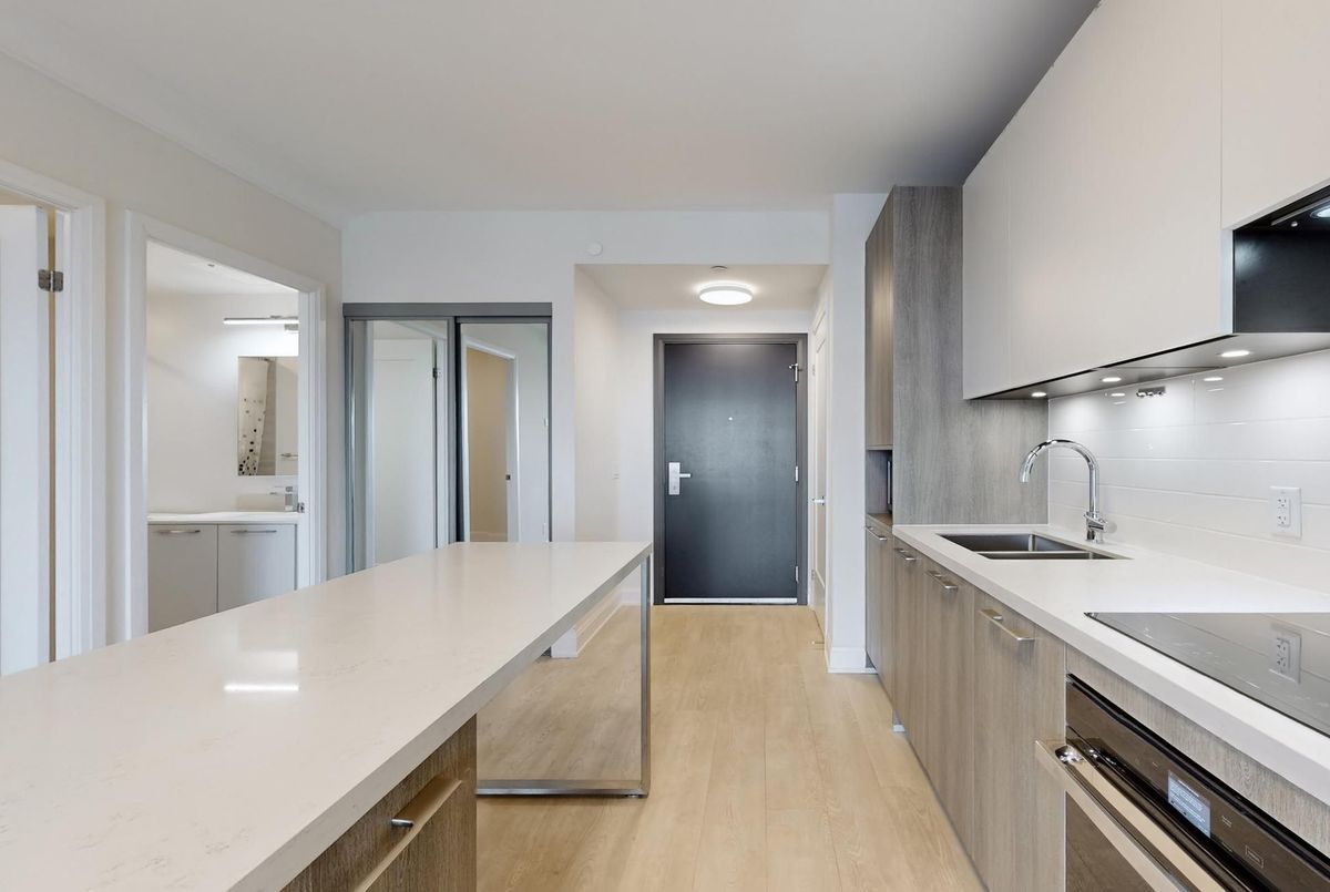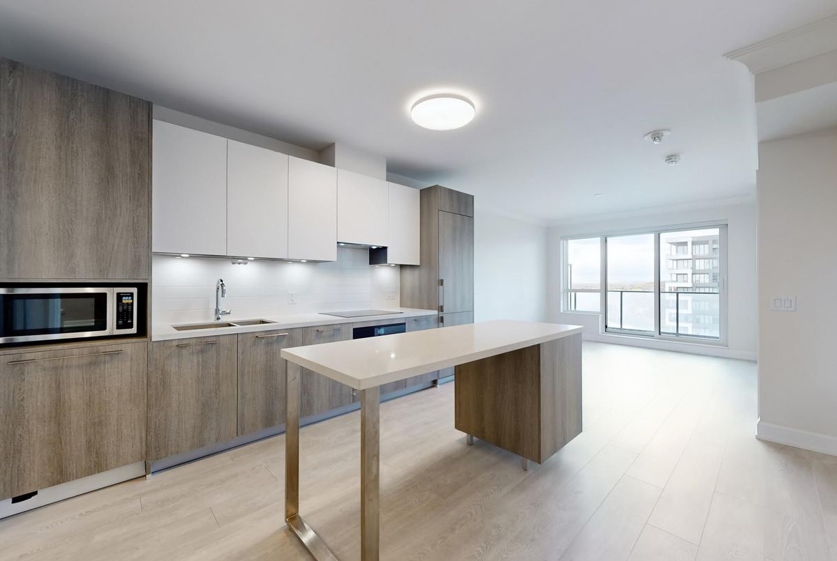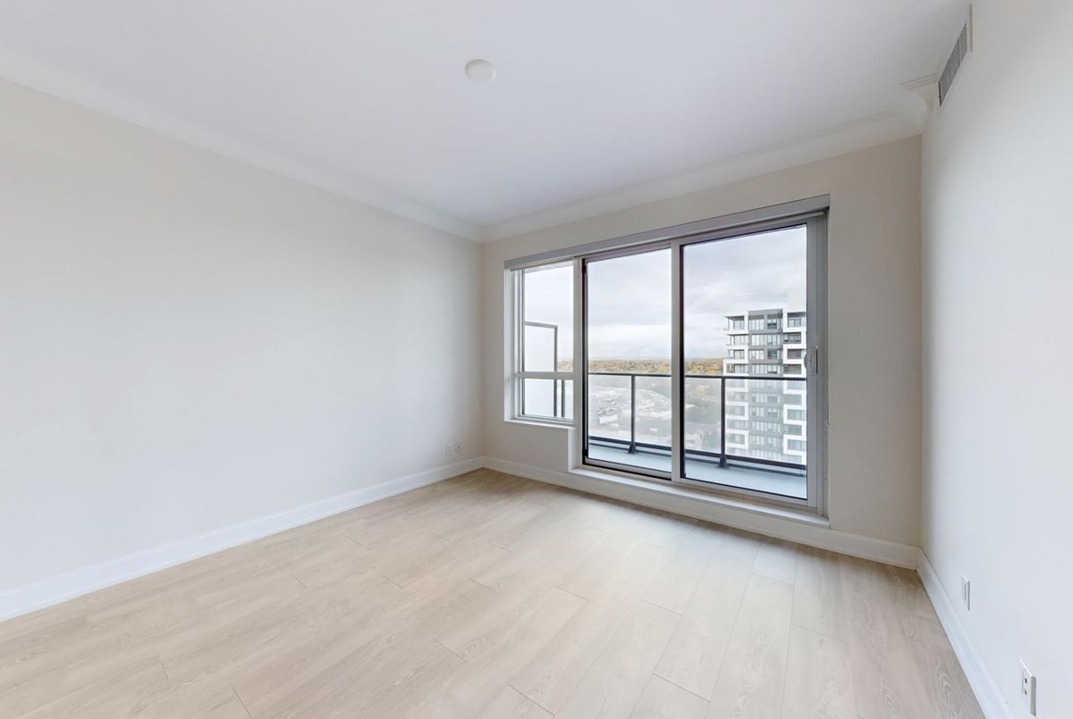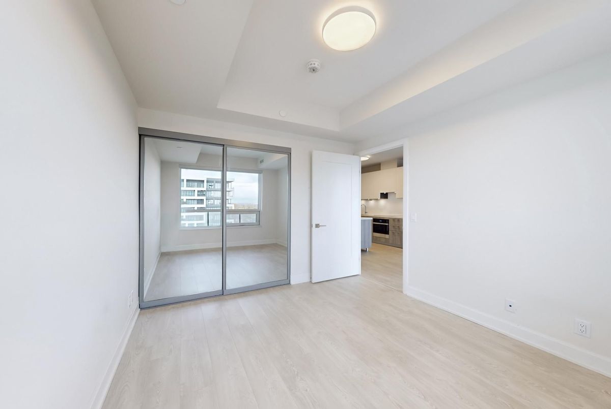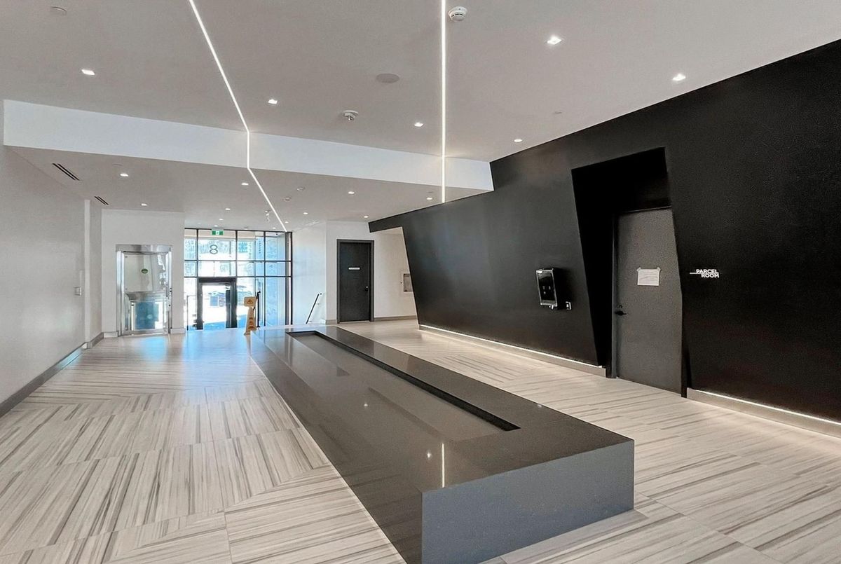 Welcome to 8 Water Walk Drive, Unit 2008 - a stylish 1+1 bedroom condo in the heart of Uptown Markham. This spacious unit features 9-foot ceilings, laminate flooring throughout, and afunctional open layout. The modern kitchen includes upgraded cabinetry, granite countertops, a matching backsplash, and high-end appliances, with a center island that doubles as a breakfast bar or dining table. The bright living room opens onto a full-length balcony, perfect for relaxing or entertaining. The primary bedroom offers large windows and a mirrored double closet, while the enclosed den with French doors can easily serve as a second bedroom, office, or dining area. Located in a landmark building with state-of-the-art amenities, you're steps from No Frills supermarket, LCBO, restaurants, banks, Cineplex VIP, and close to Markham Downtown, York University campus, and historic Unionville. Easy access to GO Transit and Highways 7, 404, and407. Includes 1 parking and 1 locker.