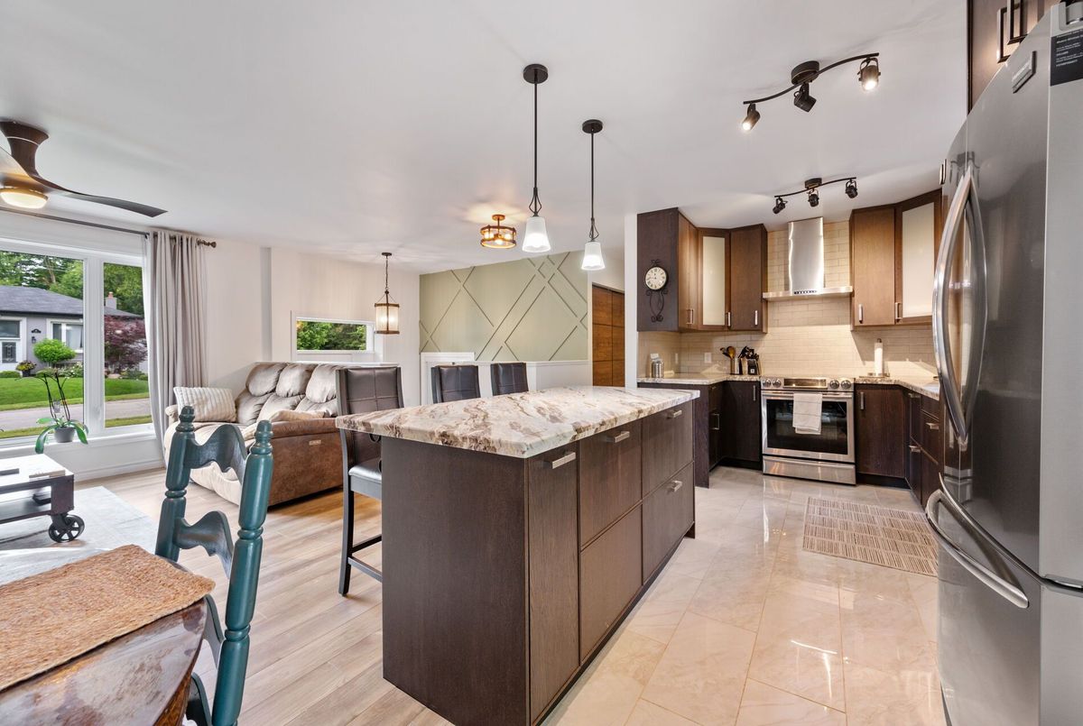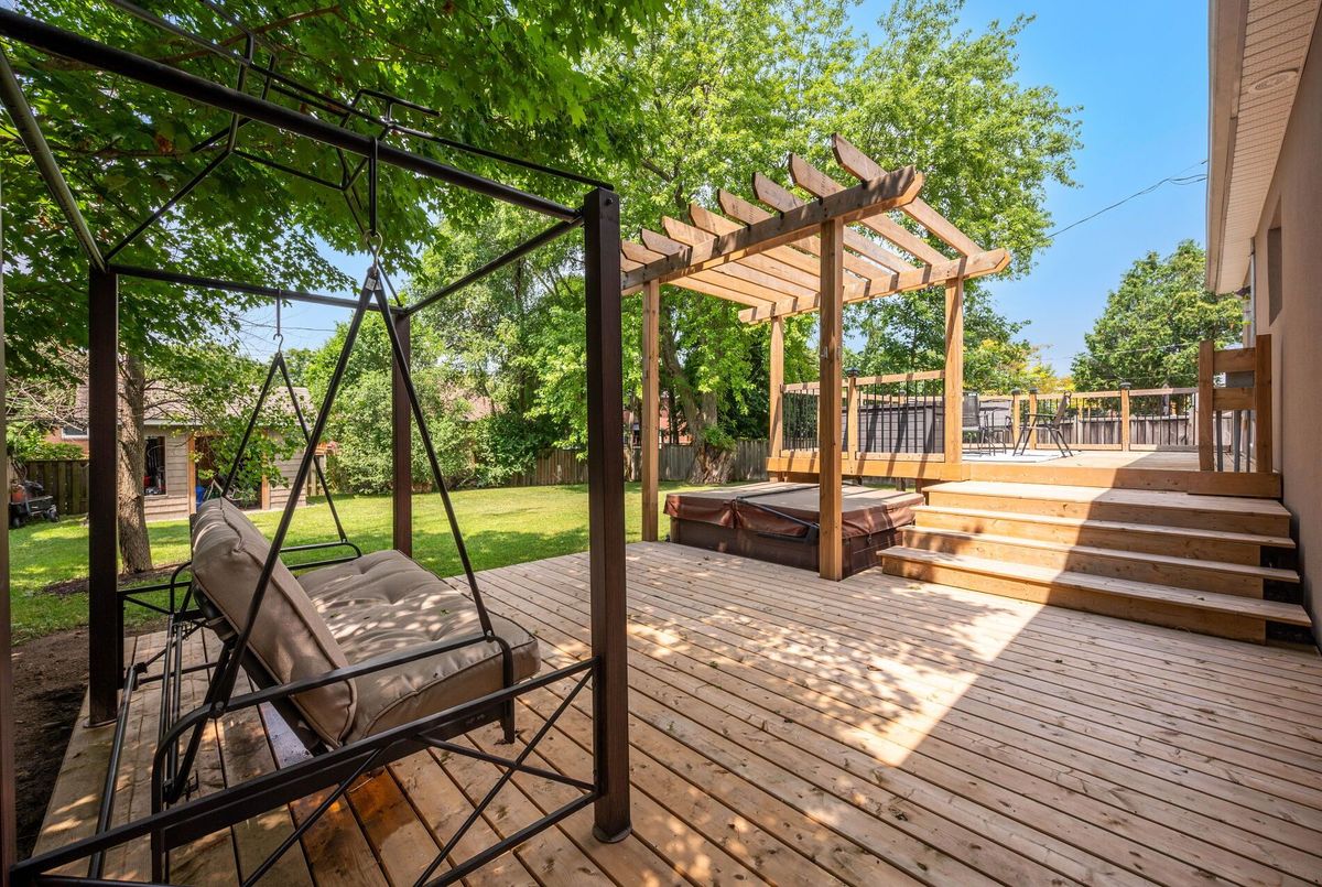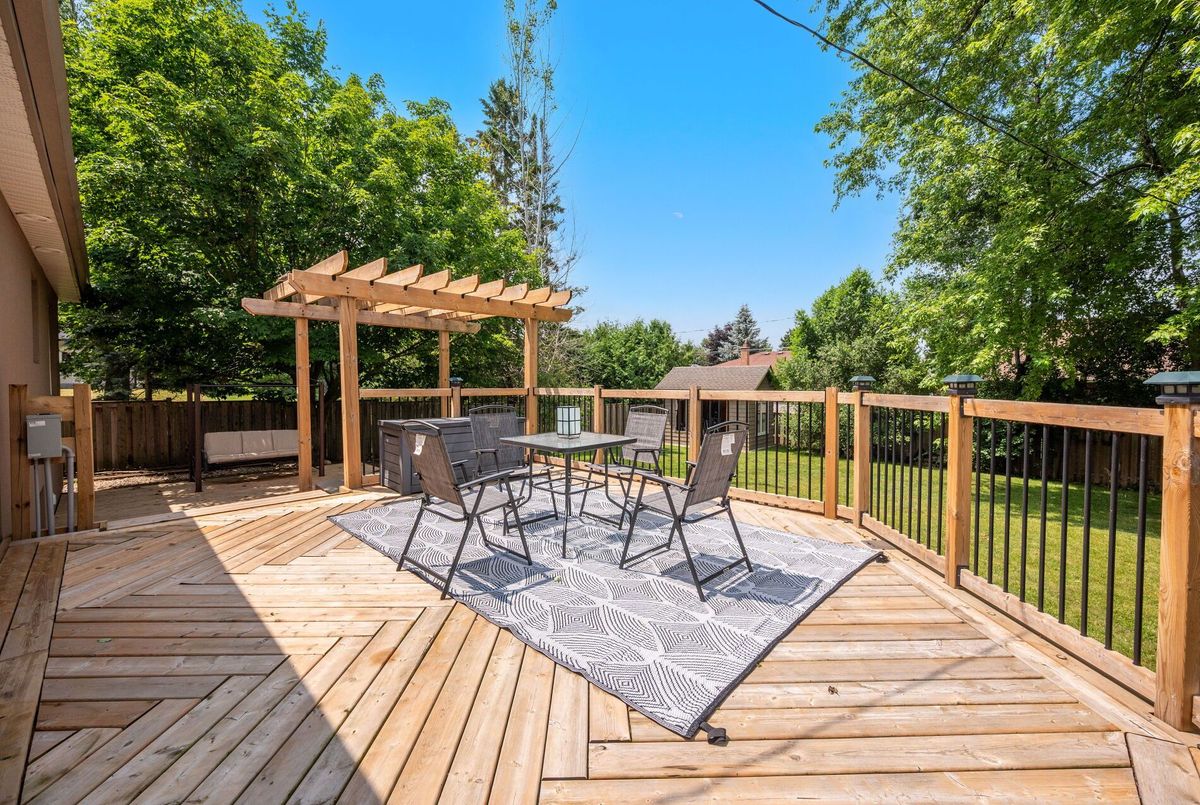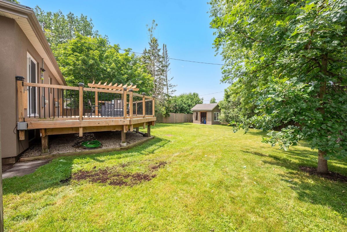 Gorgeous upgrades on this desirable bungalow on a spacious 70ft wide lot! Features include exterior stucco finish & front entry portico, single garage, huge back yard with 2 tier deck & hot tub, storage shed. Inside welcomes you to a carpet free home, granite countertops in this modern kitchen with inviting centre island, huge living room window and walk-out to deck from the dining room. 2 Full baths on the main floor including a primary room ensuite & large linen closet. Downstairs features 2 spacious bedrooms and a rec room with another full bathroom. Fibre internet service to the home as well. This home has been thoughtfully updated and is ready for its next chapter. Steps to transit, schools, parks and all amenities, easy access to Hwy 400. Walk to Park, River and Outdoor Pool!