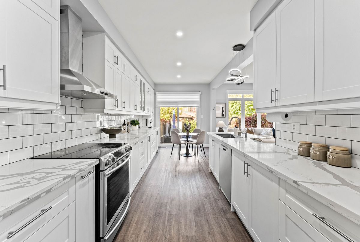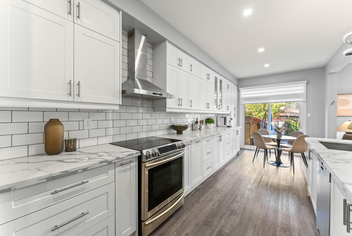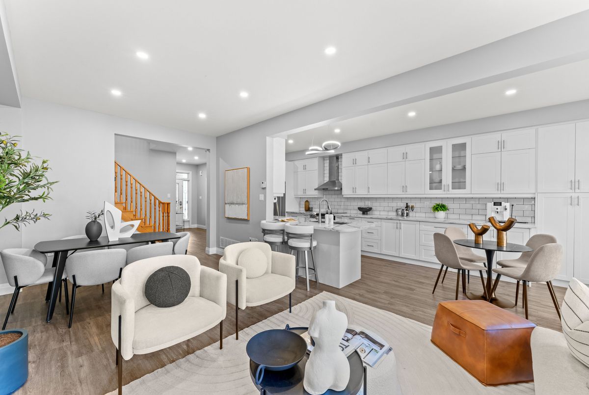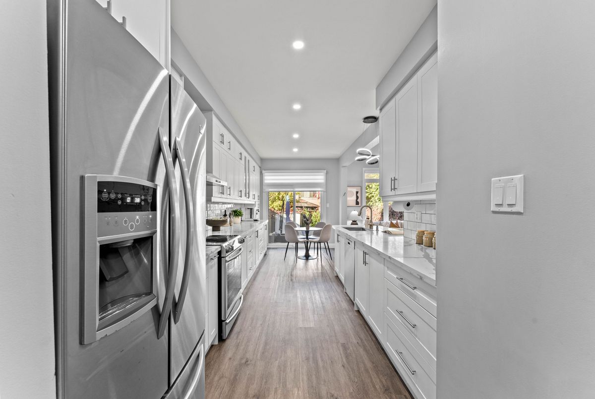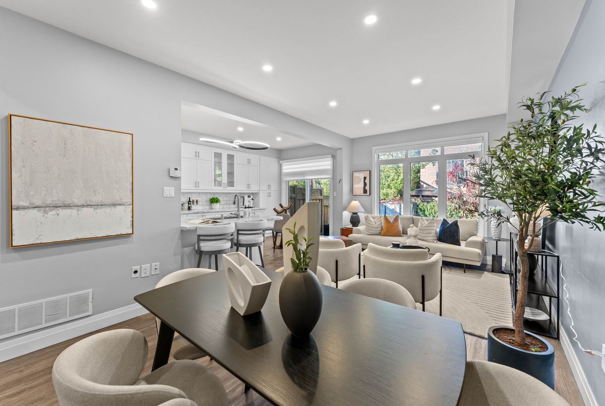 This stunning 3-bedroom, 3-bath townhouse is tucked away on one of the quietest streets in highly sought-after Thornhill Woods. Enjoy 9-foot ceilings on the main floor and a fully renovated kitchen (2022) featuring sleek stainless steel appliances, quartz countertops, a breakfast bar, and an abundance of cabinetry - perfect for storage and style. The inviting eat-in dining area opens to a private backyard, ideal for entertaining or relaxing with family. The open-concept living and dining rooms create a natural flow for gatherings, while the split-level family room, filled with natural light, offers the flexibility to serve as a 4th bedroom, a home office, or a cozy retreat. Upstairs, unwind in the freshly renovated (2025), spa-inspired primary ensuite - your personal sanctuary after a long day. Located close to top-rated schools, parks, community centers, shops, restaurants, and public transit, this home perfectly blends comfort, style, and convenience. A truly must-see property that's dangerously move-in ready - where every detail feels just right.