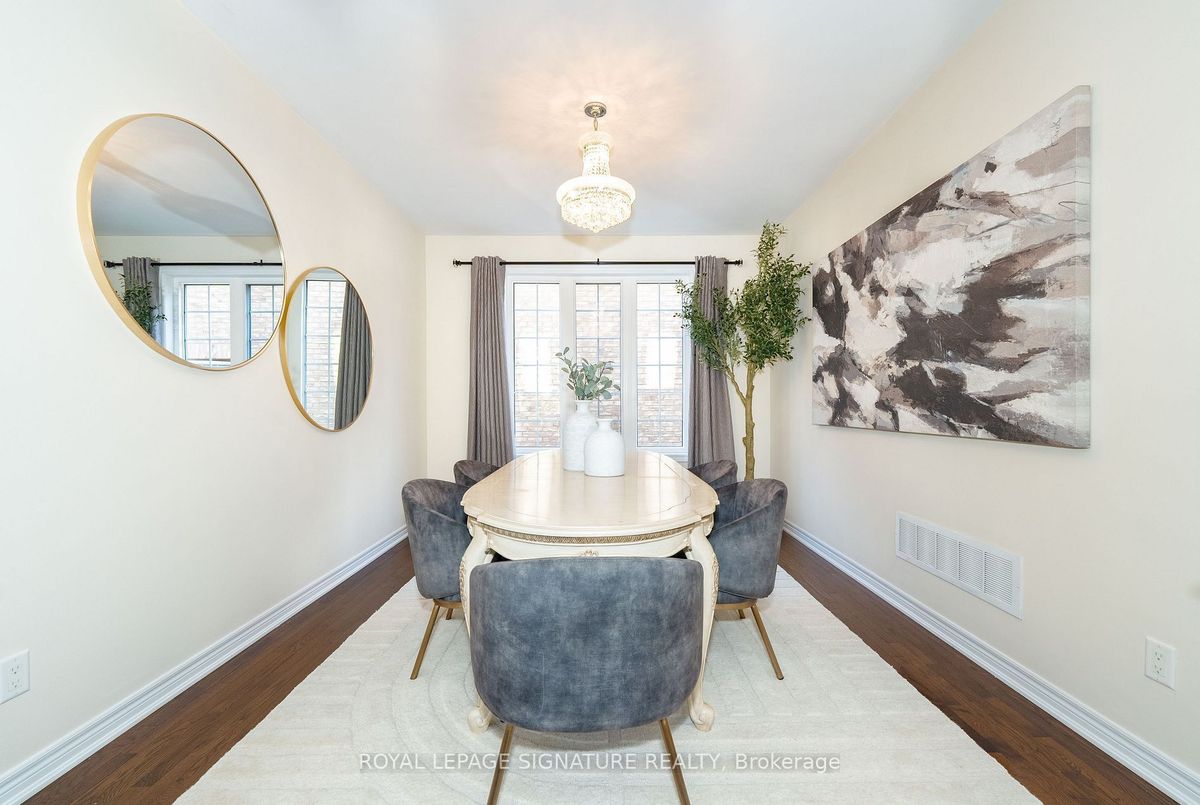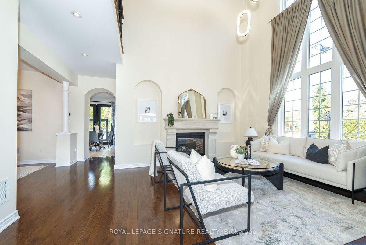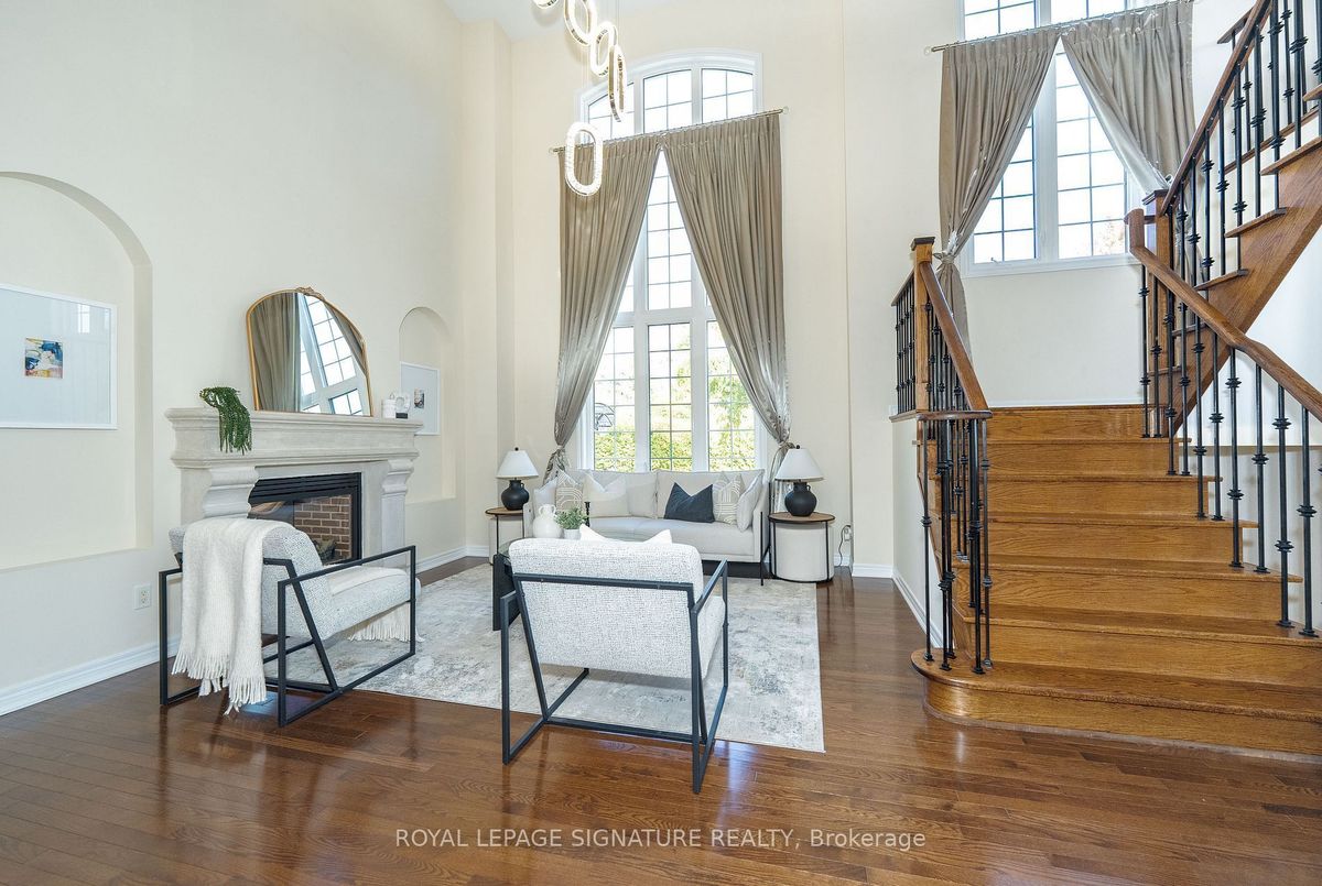 Welcome to 68 Lady Angela Lane, a beautifully designed 4-bedroom home offering nearly 3,000 sq. ft. of elegant living space, backing onto scenic greenspace in one of Vaughan's most sought-after family neighbourhoods. The heart of the home is the impressive Great Room, featuring soaring 20-ft ceilings, floor-to-ceiling windows, and a statement chandelier that fills the space with natural light. Surrounding it are thoughtfully defined rooms, a spacious kitchen with quartz counters and stainless steel appliances, a formal dining area, and a cozy family room with a two-way fireplace, combining modern openness with classic comfort. Upstairs, the primary suite offers a 5-piece ensuite and walk-in closet, while three additional bedrooms and a bright den provide space for the whole family. The den, currently set up as a stylish home office and lounge, offers the perfect spot to work or unwind. The unfinished basement with bath rough-in offers room to grow. Enjoy the quiet of a no-through street, backing onto scenic greenspace and just steps from parks, trails, top-rated schools, and transit. A perfect blend of modern design, family comfort, and everyday convenience, ready to call home.