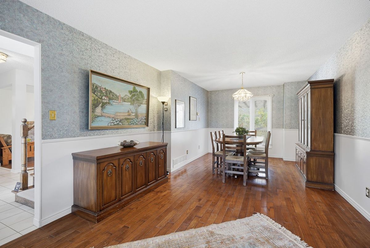 This detached 3+1 bedroom, 4 bathroom home is set on a quiet, beautiful Muskoka-like ravine lot in Richmond Hill. Backing onto greenery and nature, it offers a rare level of privacy and outdoor space, with a huge pool-size yard and a large deck that is perfect for entertaining or relaxing while enjoying the views. Inside, the main floor features hardwood flooring, a combined living and dining room, and a family room with a wood-burning fireplace, and sliding glass doors leading to the deck. The eat-in kitchen also has sliding glass doors opening directly to the deck, creating a seamless flow between indoor and outdoor living. The Laundry room is located on the main floor and it includes a separate side entrance. Upstairs are three bedrooms and two bathrooms, including a three-piece ensuite and walk-in closet in the primary bedroom. The basement is completely above ground at the back, and it features a fourth bedroom, a recreation room with a wood-burning fireplace, sliding glass doors to the backyard, and a full bathroom - ideal for extended family or guests. Parking is generous with a double garage and a driveway that accommodates four additional vehicles. The garage has a large loft area for storage. Located on a quiet court, this home combines privacy with convenience. Schools, parks, trails, shopping, and hospital are all nearby, making this a truly special opportunity.