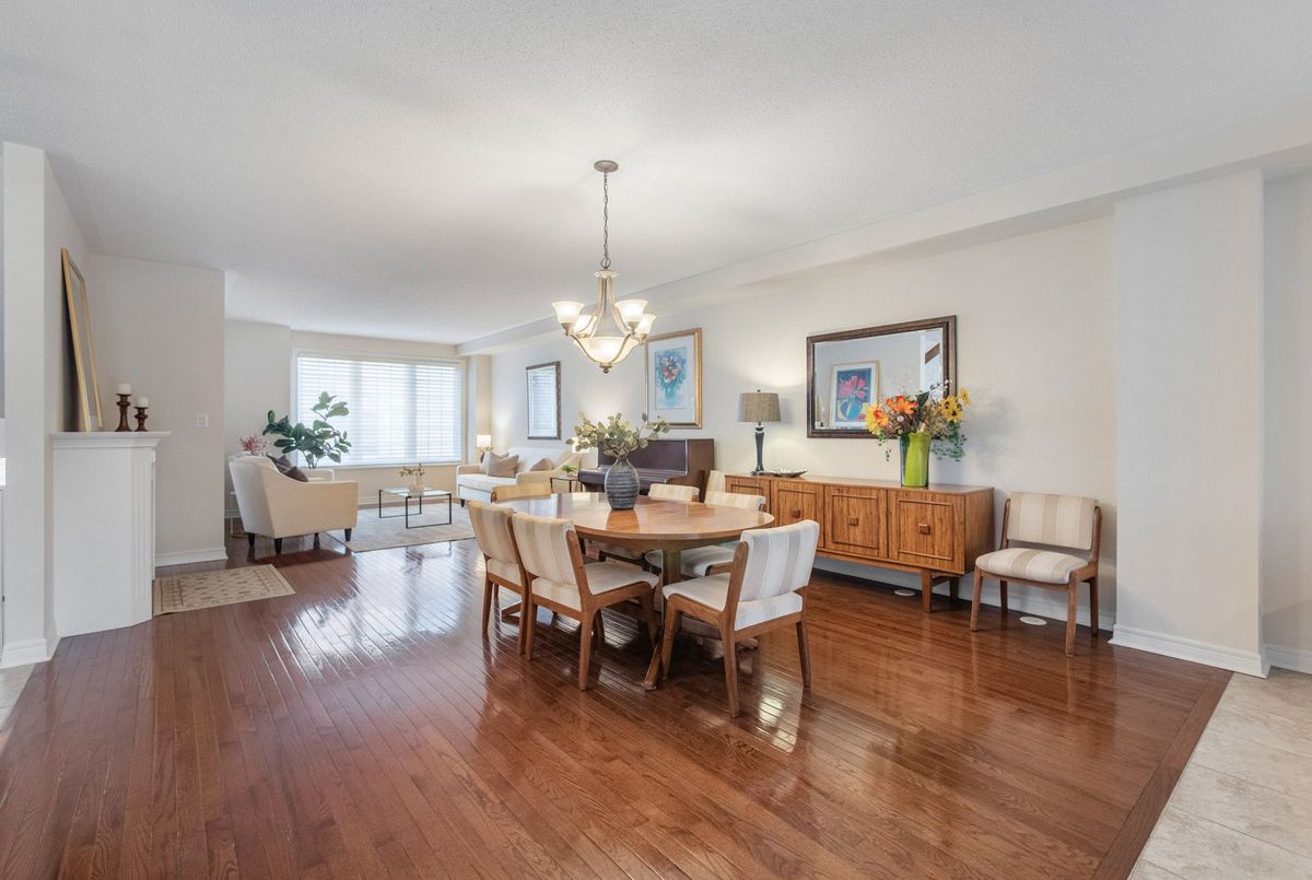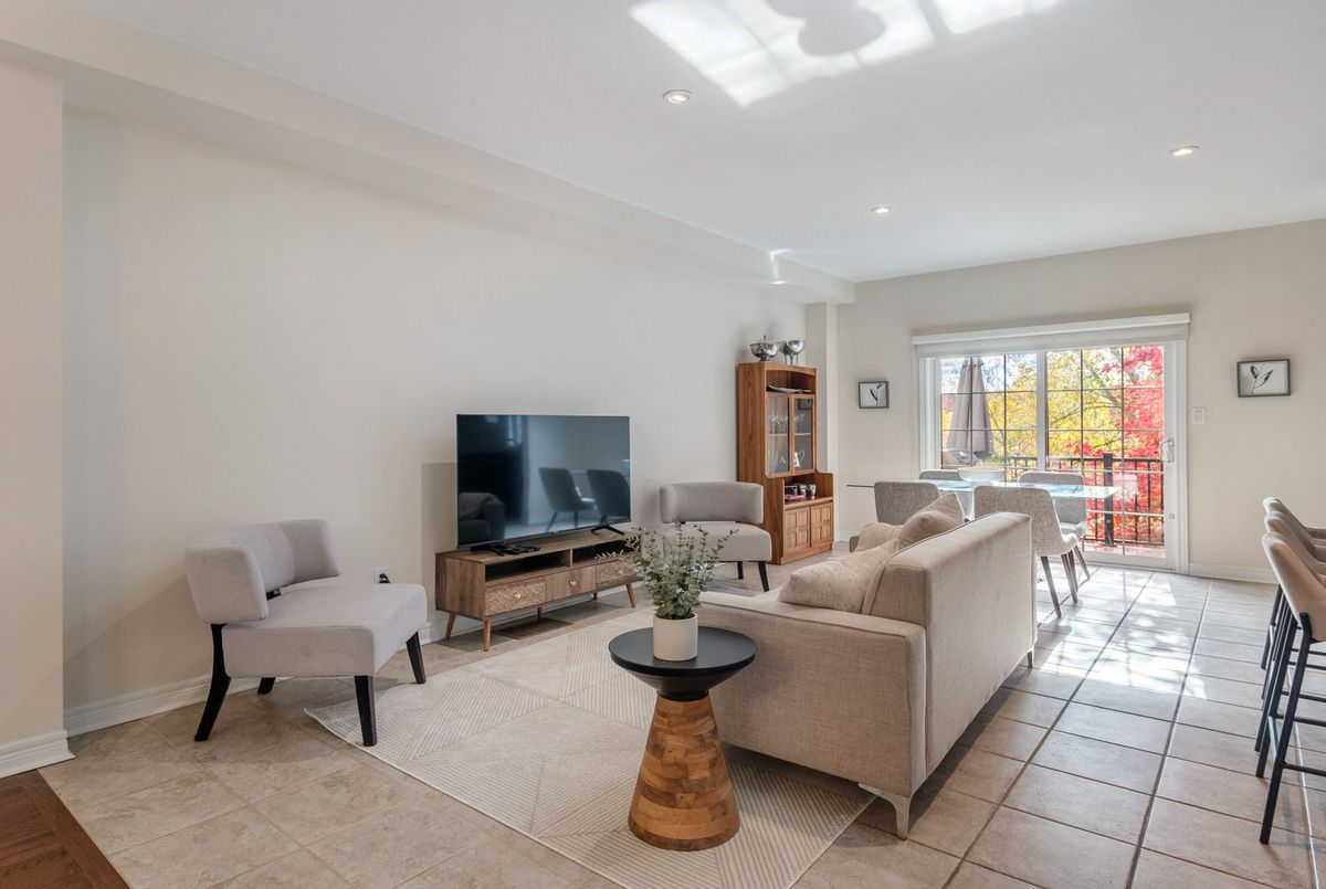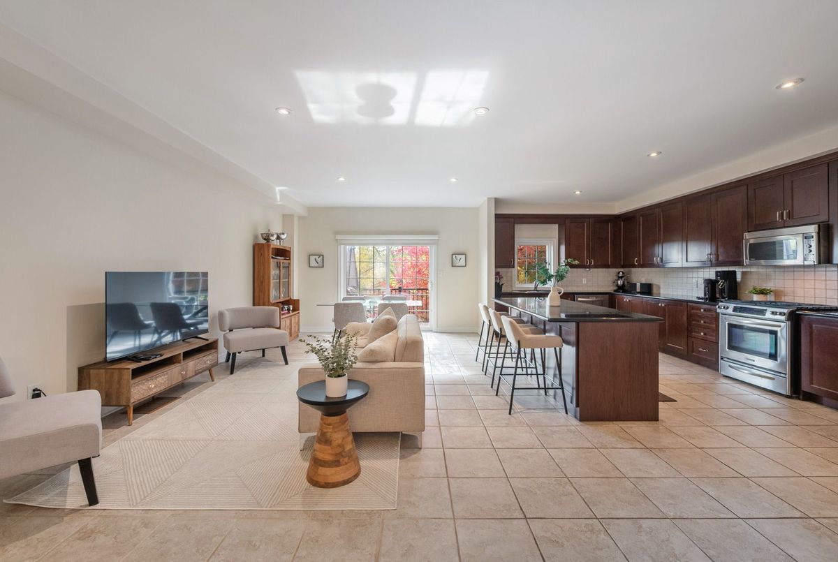 Discover this beautifully updated freehold townhome, tucked away on a quiet, family-friendly court in highly sought-after Thornhill Woods. Backing directly onto a tranquil pond and lush greenery, this rare 3-bedroom, 4-bathroom residence offers over 2,200 sq. ft. of elegant living space. From the moment you step inside, you're welcomed by an airy foyer with soaring cathedral ceilings that set the tone for the rest of the home. The main level features 9-ft smooth ceilings, pot lights, rich hardwood floors, and an open-concept layout designed for versatility, function, and everyday comfort. The spacious dining area flows seamlessly into a chef-inspired kitchen, complete with an oversized granite island, tall upper cabinets, stainless steel appliances, and a family-sized breakfast area with a walk-out to the extended composite deck - the perfect spot to unwind and take in the peaceful pond and treed views. Upstairs, all three bedrooms are generously sized and filled with natural light. The primary suite offers stunning pond views, a walk-in closet, and a spa-like 5-piece ensuite. The recently finished walk-out basement provides a versatile additional living space, a 3-piece bathroom, and direct access to the beautifully landscaped backyard. Additional highlights include direct garage access, ample storage and coat closets, 2 year old roof, and a convenient crawl space for seasonal items. Located in a family-oriented neighbourhood renowned for its excellent schools, vibrant community center, and abundant parks, this home also offers easy access to shops, restaurants, and major highways. Set within an intimate enclave of just 47 executive townhomes - opportunities like this don't come up often!