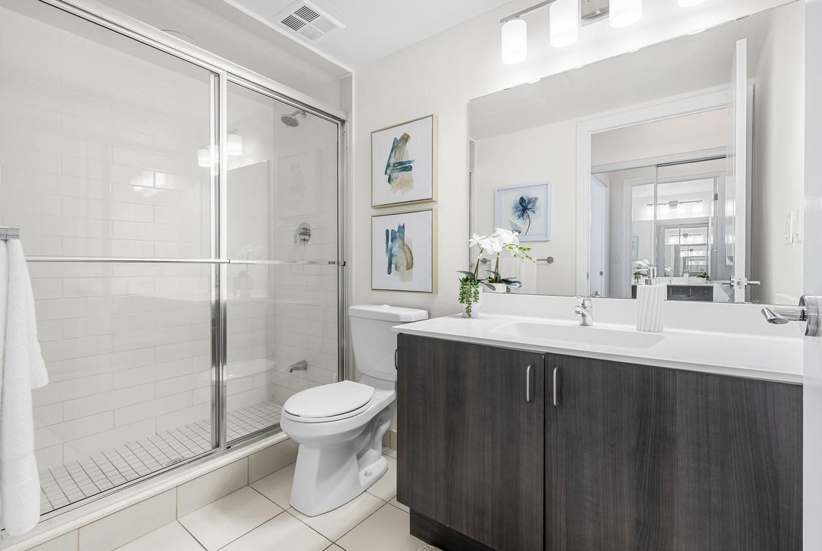 Welcome to exceptional urban living in the heart of Downtown Markham! This bright and spacious 2-bedroom + den condo is a true showstopper - thoughtfully designed with a split-bedroom layout that delivers both privacy and remarkable functionality rarely found in condo living.Floor-to-ceiling windows flood the open-concept living and dining area with natural light, creating an inviting atmosphere perfect for everyday living and entertaining. The stylish modern kitchen features stainless steel appliances, a sleek breakfast bar, and ample cabinetry, seamlessly flowing into the main living area with a walk-out to an oversized private terrace - a rare urban luxury and an entertainer's dream.The split layout places the primary bedroom on one side of the unit, offering a true retreat complete with two closets and a spa-inspired 4-piece ensuite featuring a walk-in shower. The generously sized second bedroom sits on the opposite end, offering guests or family members their own private space, serviced by an additional 3-piece bathroom - also with a walk-in shower. The versatile den rounds out this intelligent floorplan, functioning beautifully as a home office or easily converted into a third bedroom.For those looking to downsize without compromise, this is the upgrade you've been waiting for - all the space, luxury, and style of a premium home, wrapped in the ease and convenience of condo living.Residents enjoy access to world-class amenities including 24-hour concierge, party room, indoor pool, sauna, media room, and a rooftop terrace. Unbeatable location just minutes to Highways 404 & 407, steps to VIVA transit and GO Train access, and walking distance to York University - surrounded by CF Markville, dining, medical facilities, the YMCA, and everyday conveniences.A perfect opportunity for end-users and investors alike - modern living, exceptional outdoor space, and a prime location all in one. ...