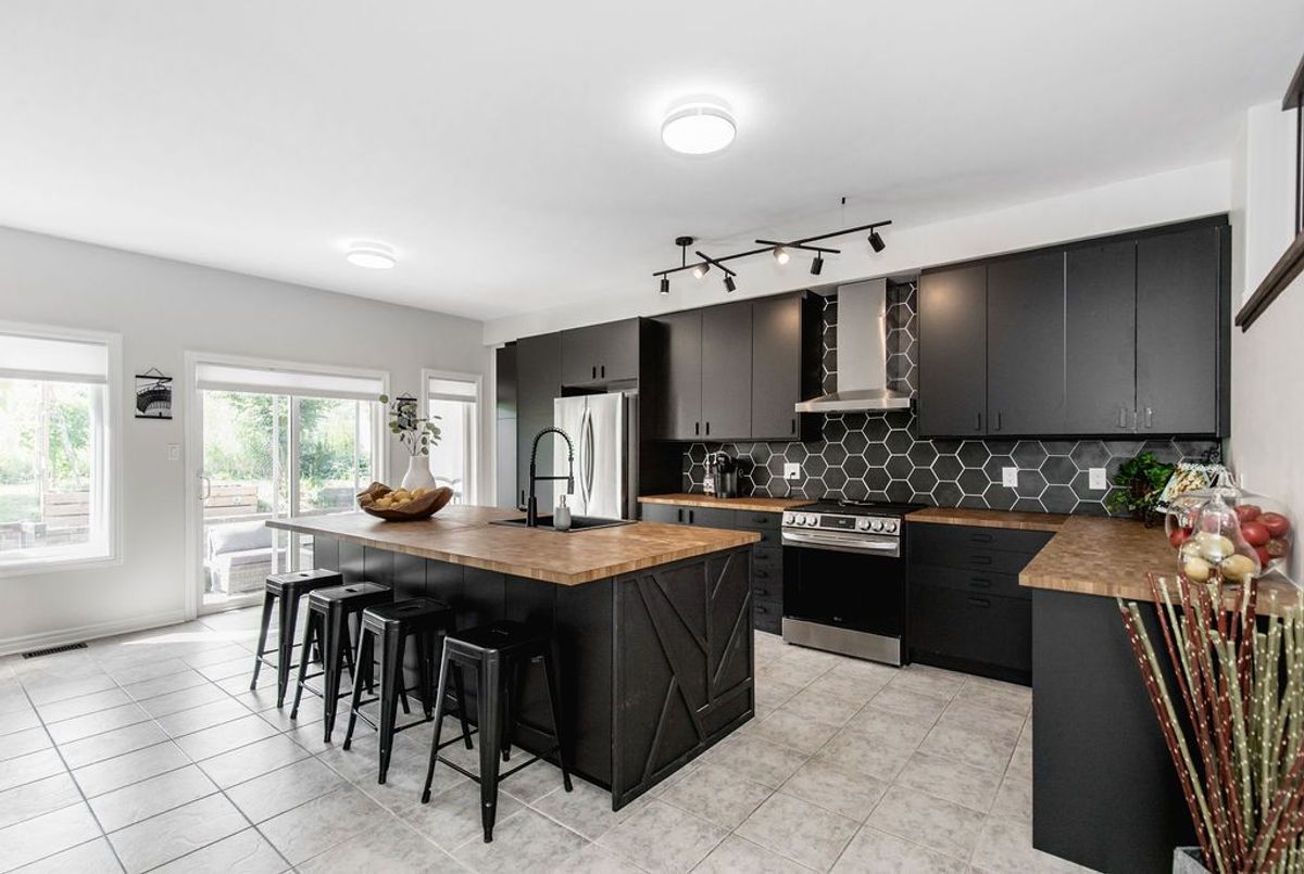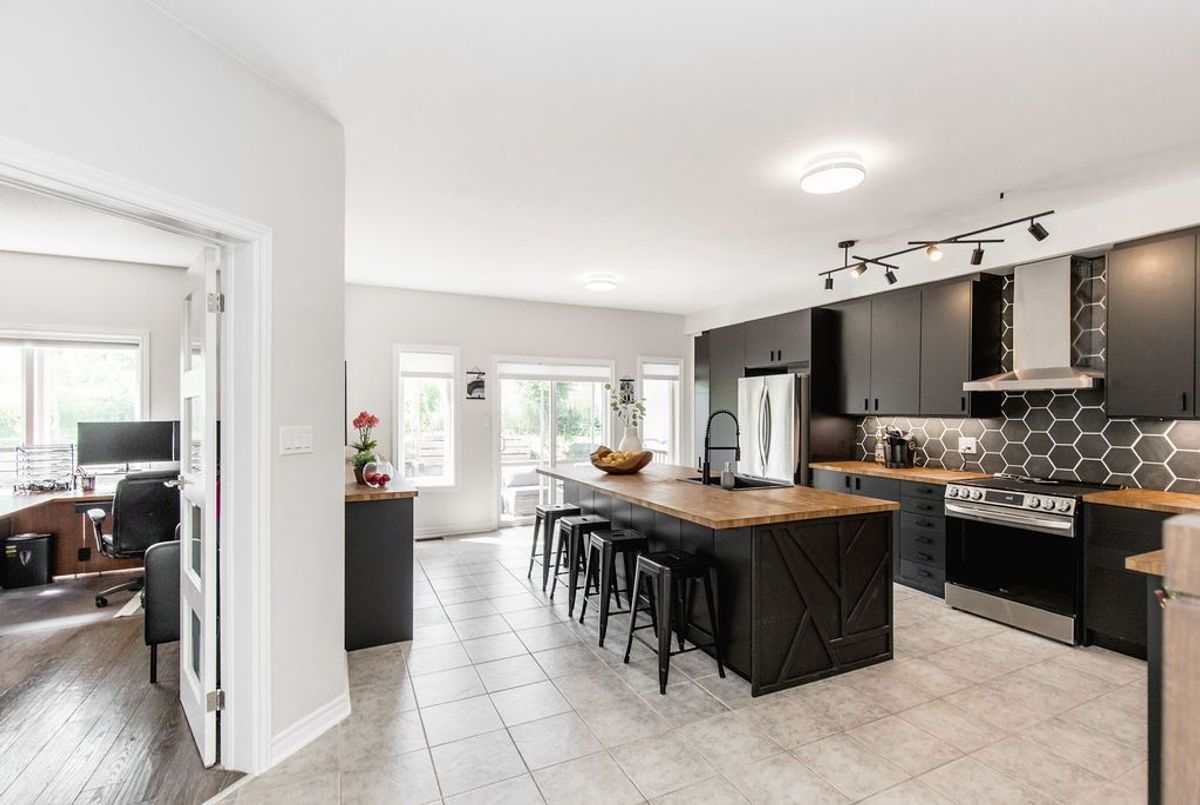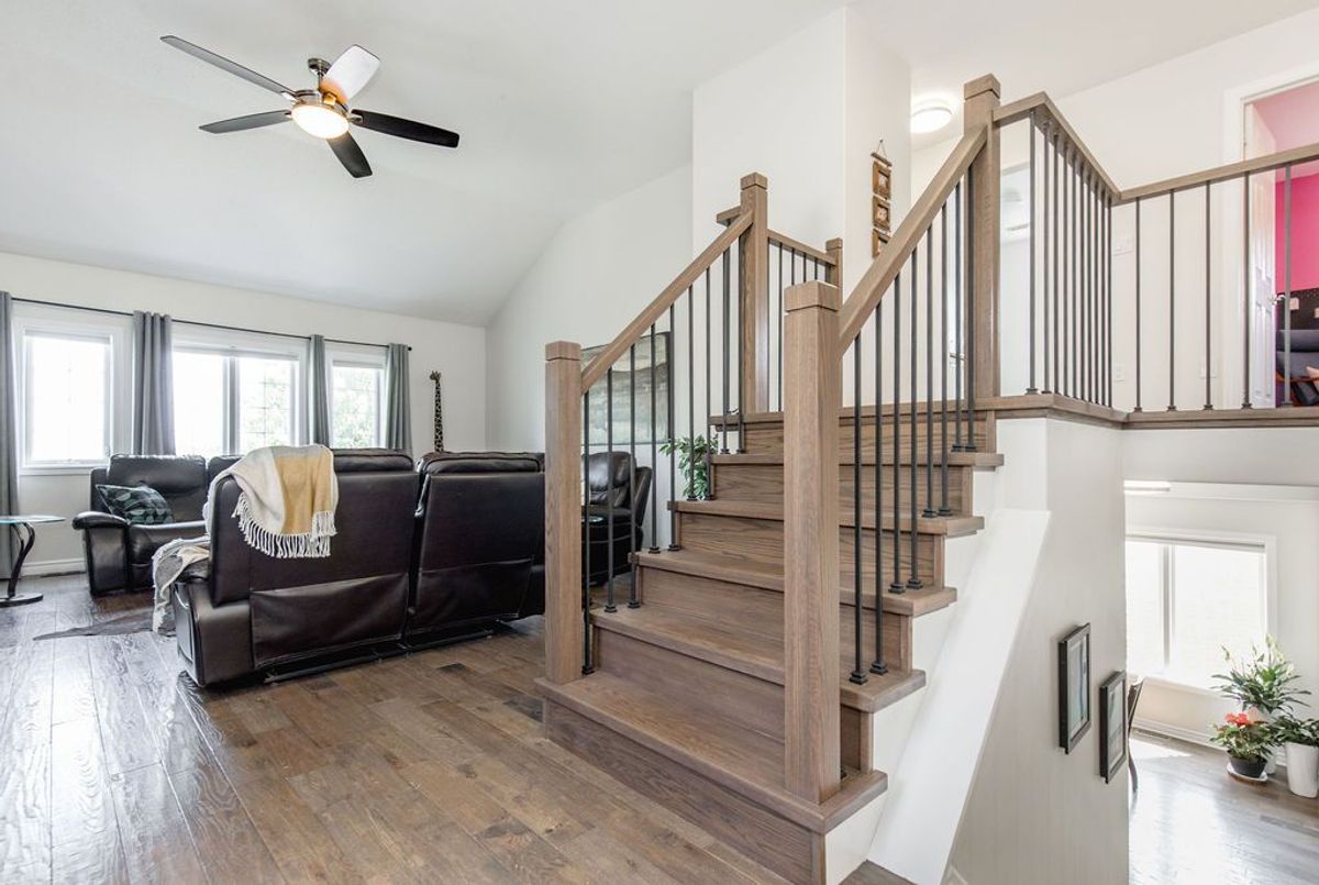 With approx. 2,600 sq. ft. above grade, this home offers incredible flexibility for multi-generational living, thanks to a thoughtfully designed in-law setup featuring a second kitchen, separate side entrance, and an enclosed shared landing off the garage. And here's a rare bonus: solar panels on the home that provide a net profit on your monthly electricity bill (based on past performance).That's right - clean energy that pays you back! The basement, completed in 2018, also includes two bedrooms, multiple egress windows, and its own gas fireplace. Another bonus: the home has separate electrical meters for the basement and upper levels. Upstairs, you'll fall in love with the grand family room landing, with soaring ceilings and large windows that fill the home with natural light. The stylish and renovated kitchen (new 2025) is a true showstopper, complete with an enormous island perfect for entertaining, meal prep, or morning coffee with the family. Hardwood floors were added to the main level in 2017, tying together the modern updates. The spacious primary suite is a retreat in itself, complete with a luxurious 5-piece ensuite (freshly renovated). Three more bedrooms (one on the main level currently used as an office) provide plenty of room for family. Outdoors, enjoy multiple decks (side and back, installed 2019/2020), offering private areas to unwind, entertain, or dine alfresco. All this, located on a quiet dead-end court, just steps from access to km's of trails in Barrie's beautiful Ardagh Bluffs. Location is also just minutes from great schools, a fantastic rec centre, and all the amenities you need. Whether youre upsizing, bringing family under one roof, or looking for smart long-term value, this home is one to see.