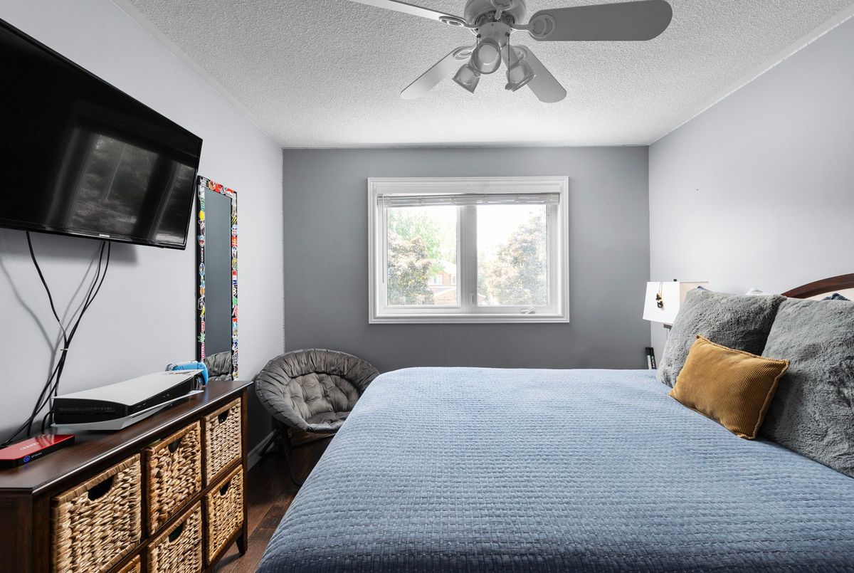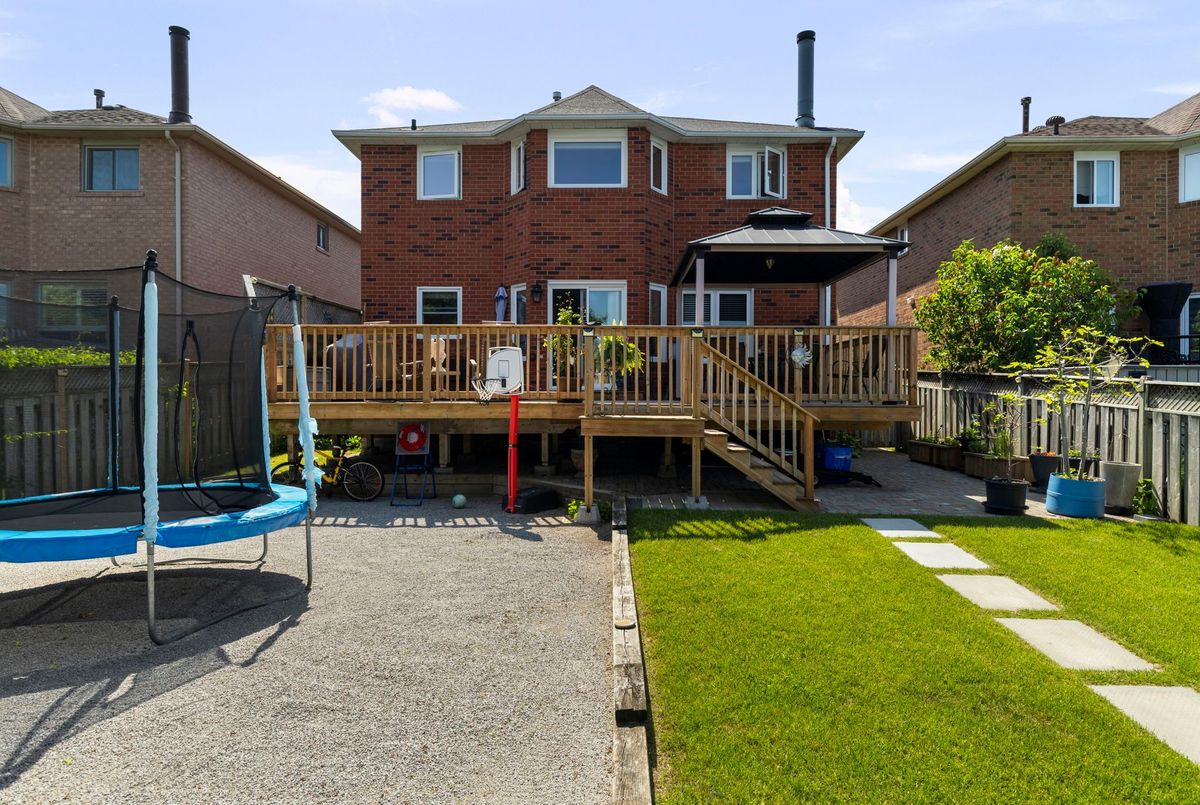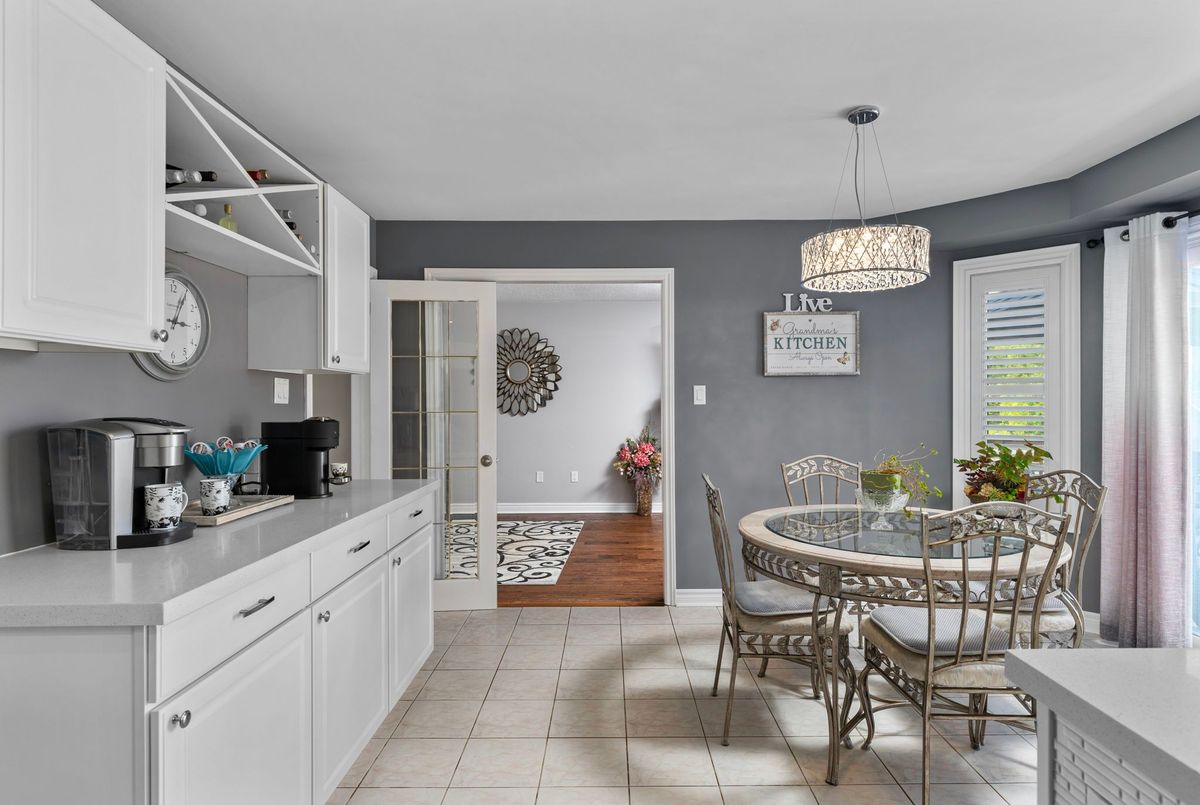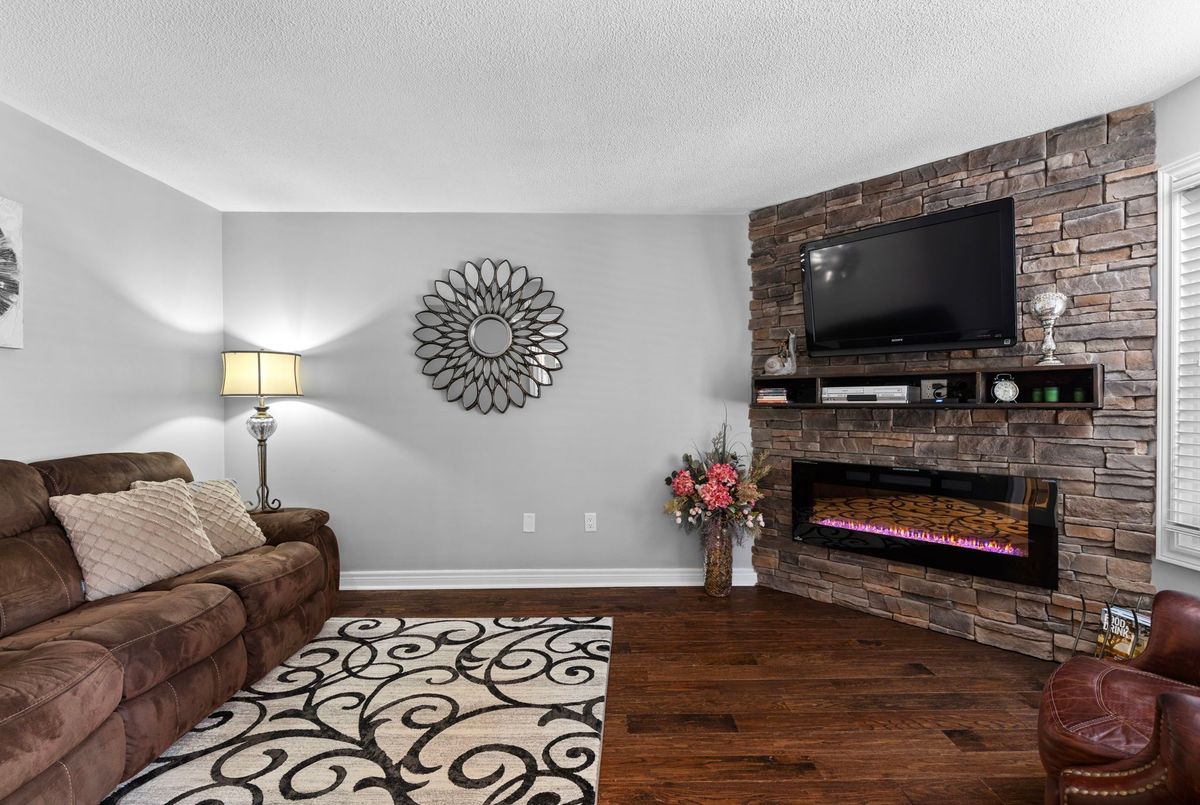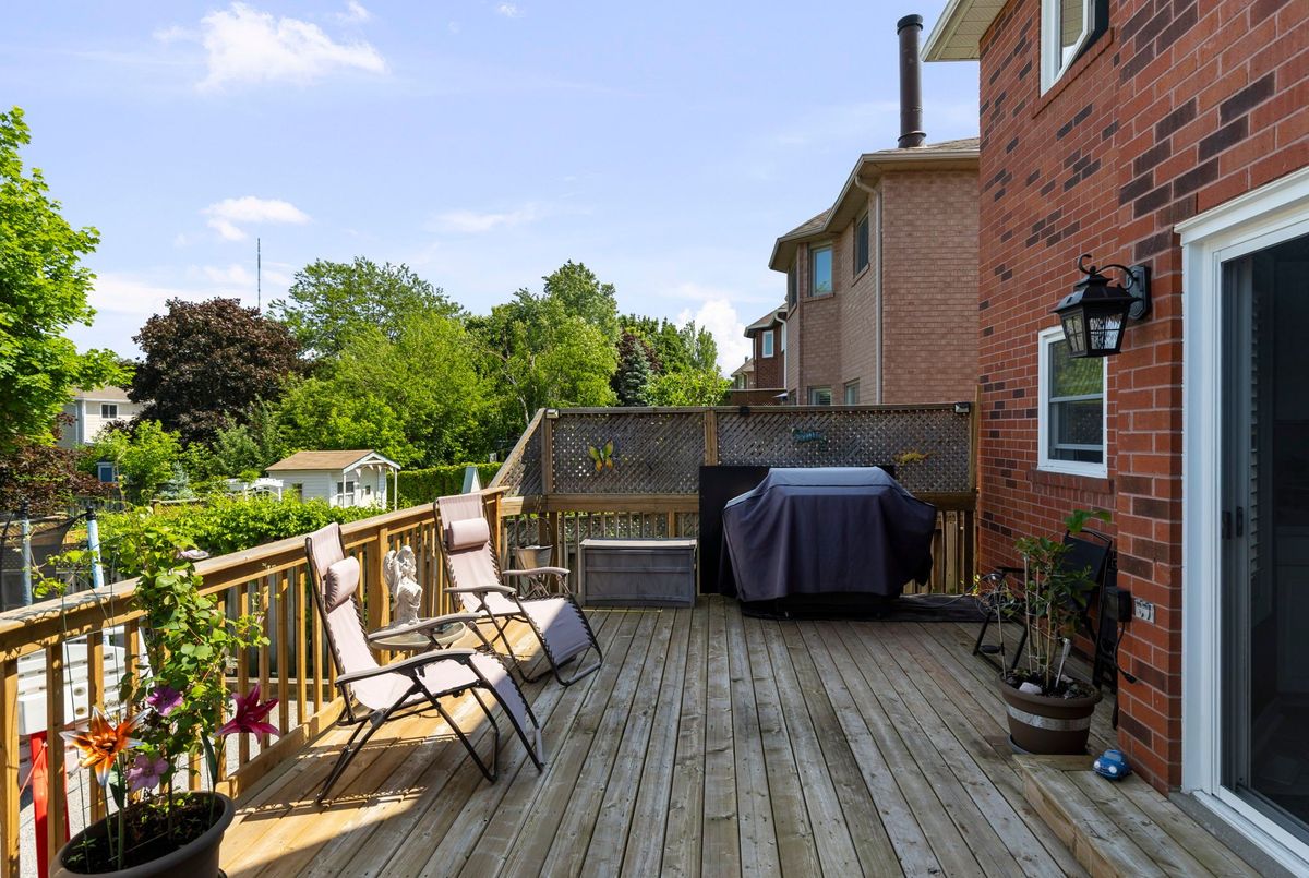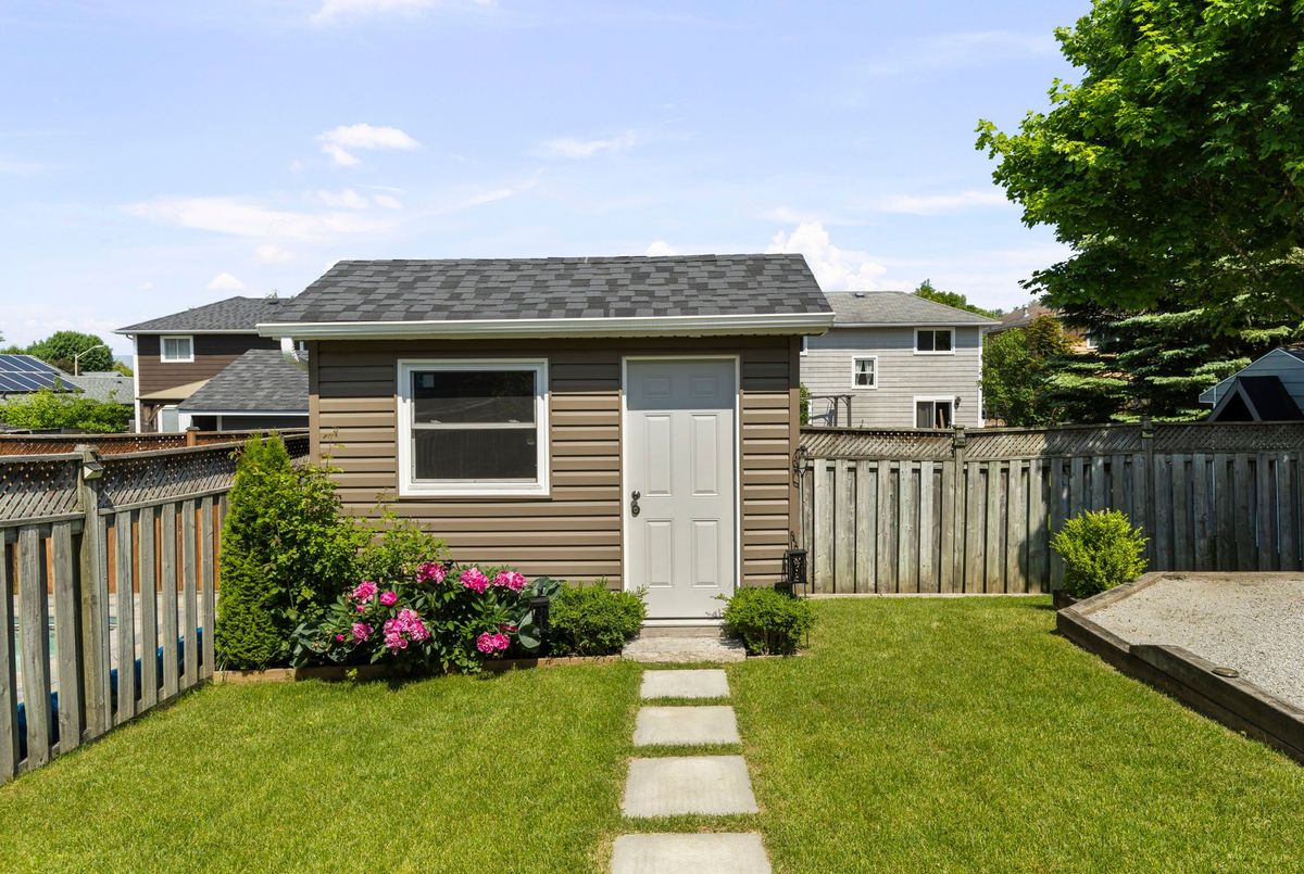 This freshly painted, move-in ready home in Ardagh Bluffs offers a functional layout, quality updates, and space for families to grow. Set on a quiet, tree-lined street in a walkable, family-friendly neighbourhood, it combines comfort, style, and convenience. The main level includes a front living room with a large picture window and an adjoining formal dining area. The updated kitchen features quartz countertops, stainless-steel appliances, subway tile backsplash, and a breakfast area with a sliding walkout to the deck. The nearby family room includes an electric fireplace with a stone surround and backyard views. Upstairs, the primary bedroom offers a walk-in closet, ceiling fan, and 5-piece ensuite with dual sinks, soaker tub, and glass shower. Three additional bedrooms include ceiling fans, closet space, and dark-stained flooring. A 5-piece bathroom with dual sinks and a combined tub/shower completes this level. The finished basement adds value with a full kitchen, in-suite laundry, two bedrooms, full bath with built-ins, and a separate entrance for in-law or income potential. Exterior updates include a stone porch (2024), a deck (2023), an interlock walkway, and a fully fenced yard with eastern exposure, shed with hydro, gas BBQ hook-up, and reinforced pad for a pool or patio. A double garage with inside entry and a two-car driveway round out the home. Walkable to schools, parks, restaurants, and trails, and just minutes to the Barrie waterfront and Hwy 400, this home delivers everyday comfort in an unbeatable location.