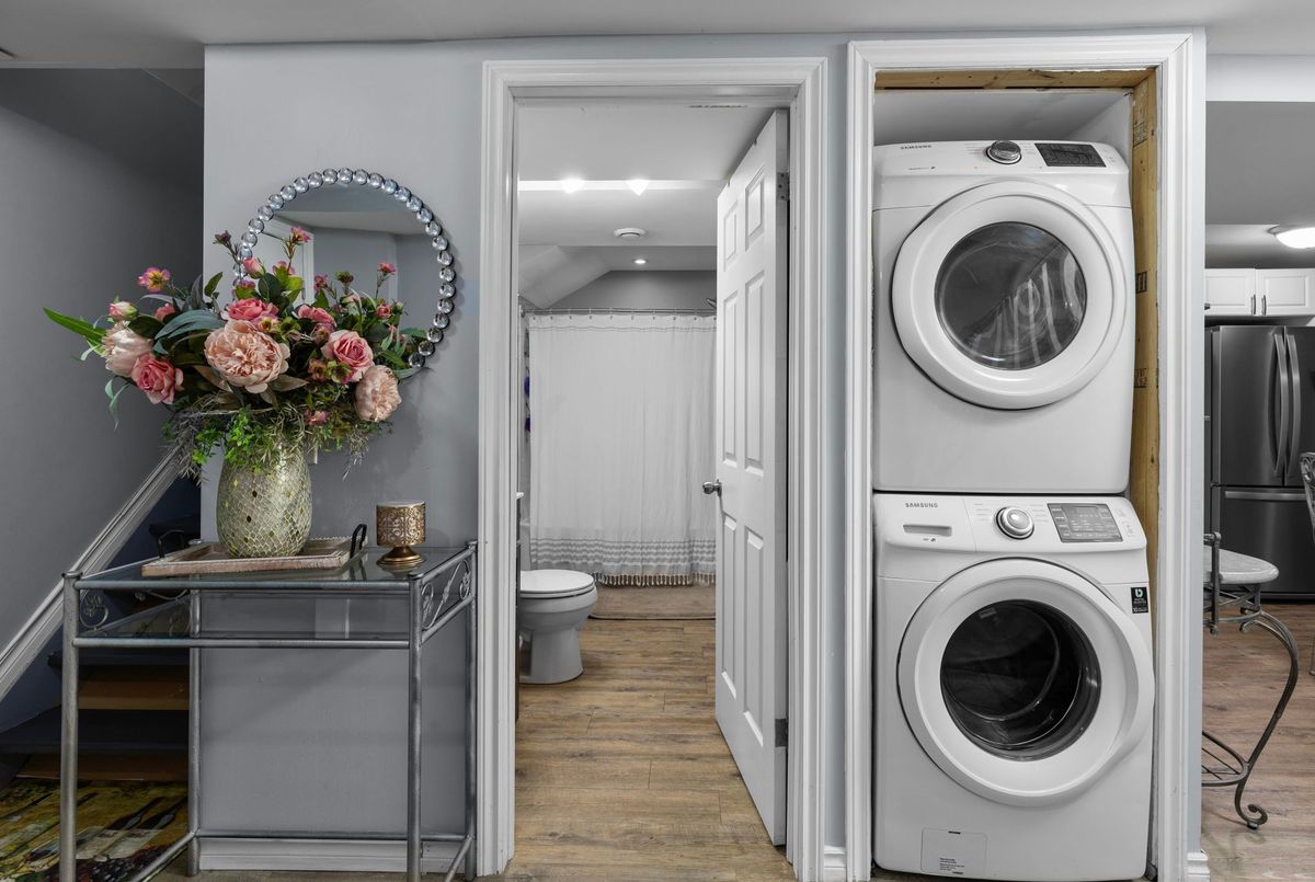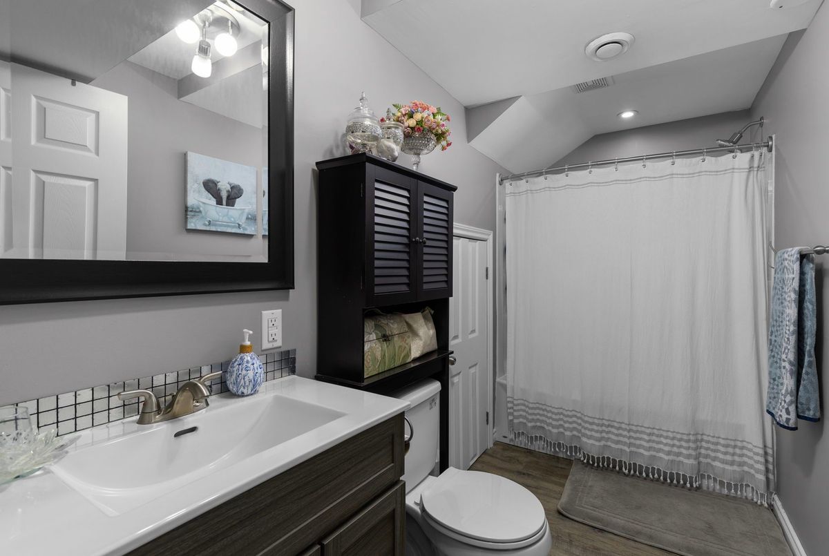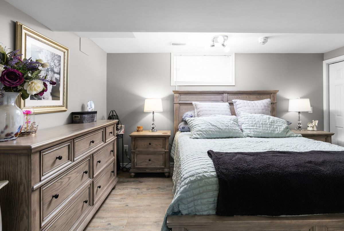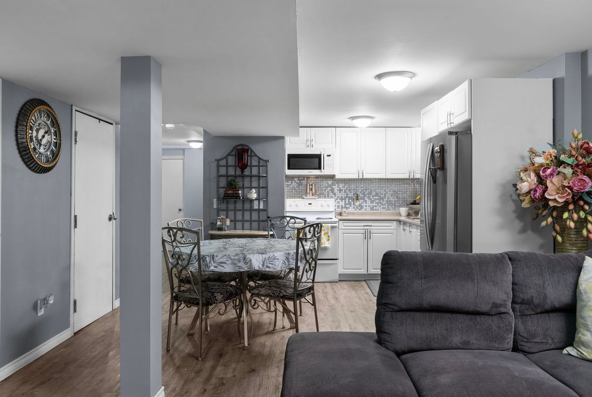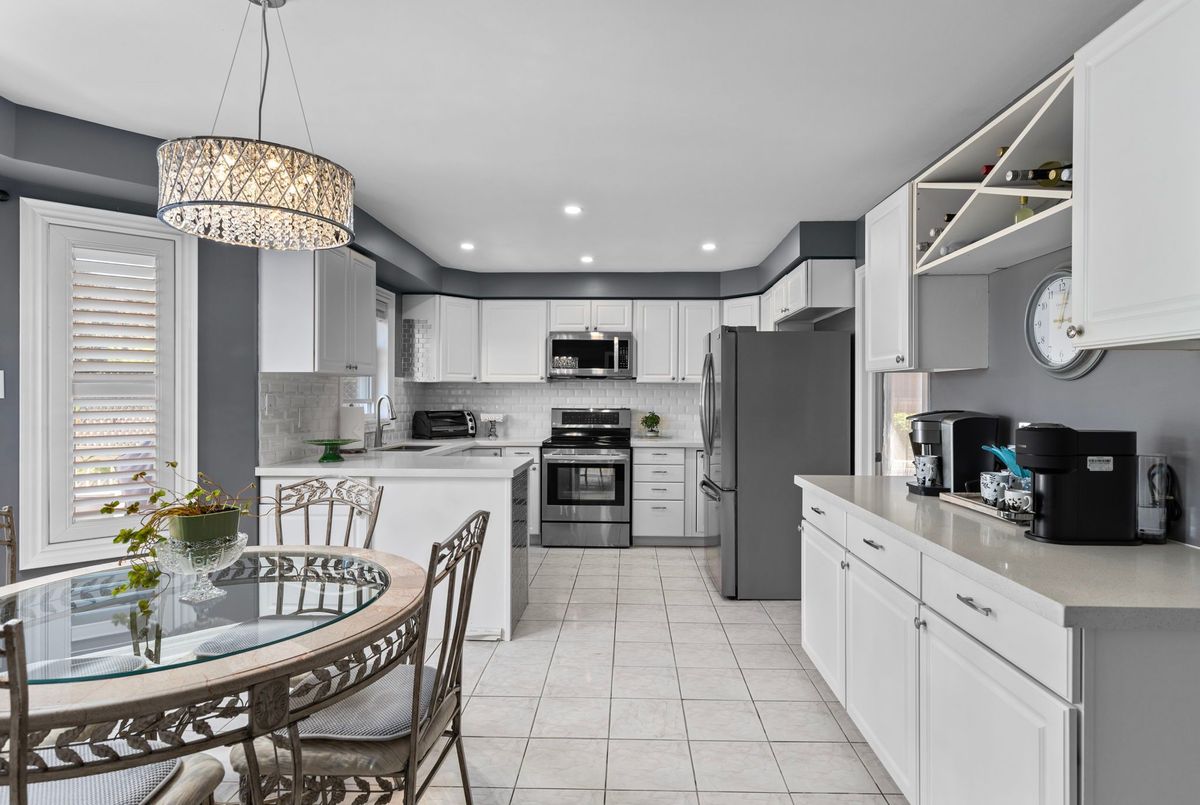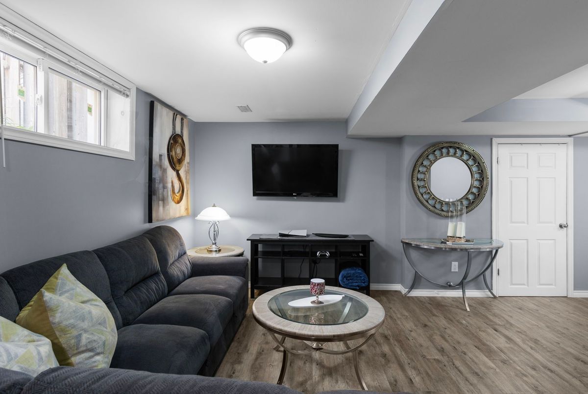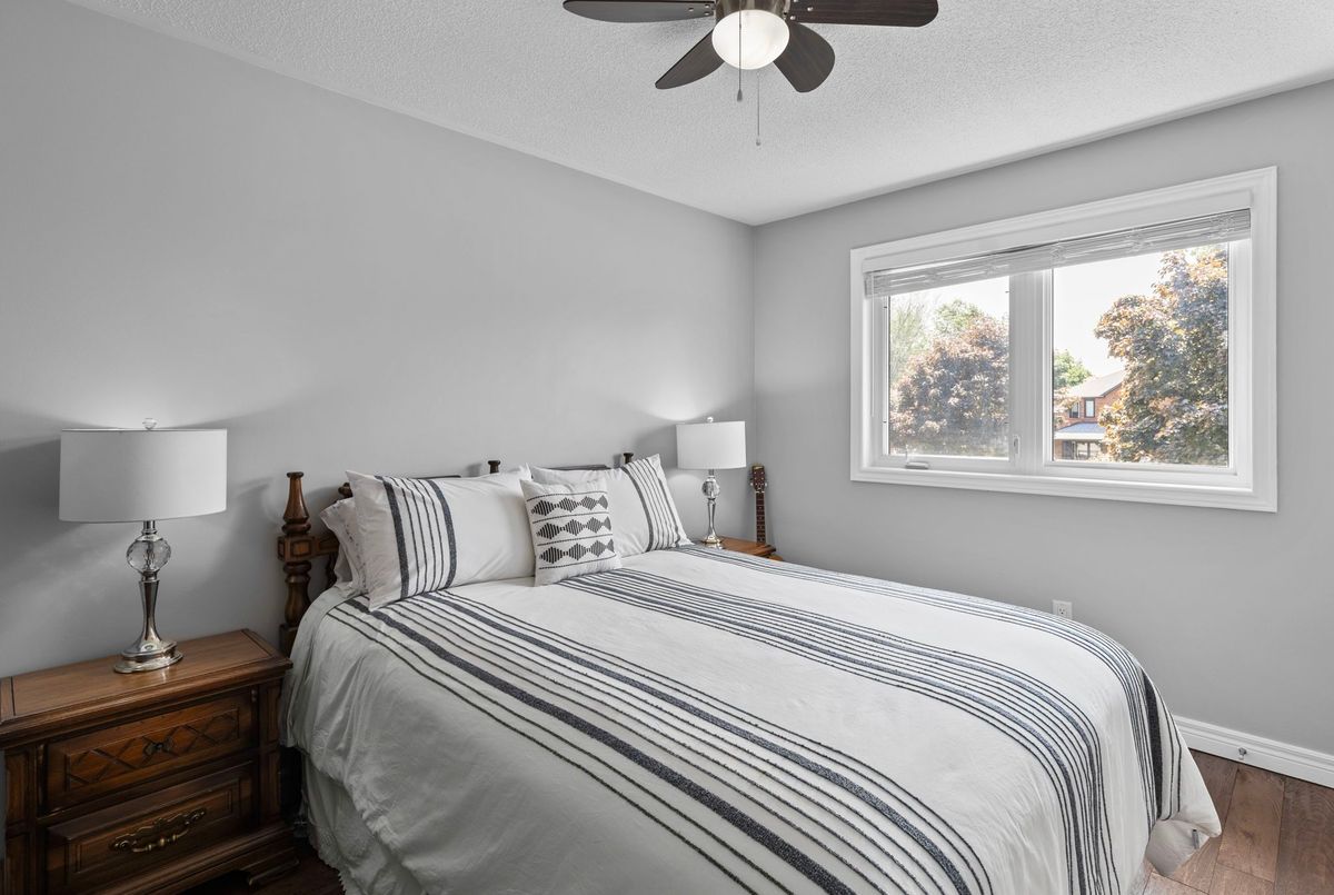 This freshly painted, move-in ready home in Ardagh Bluffs offers a functional layout, quality updates, and space for families to grow. Set on a quiet, tree-lined street in a walkable, family-friendly neighbourhood, it combines comfort, style, and convenience. The main level includes a front living room with a large picture window and an adjoining formal dining area. The updated kitchen features quartz countertops, stainless-steel appliances, subway tile backsplash, and a breakfast area with a sliding walkout to the deck. The nearby family room includes an electric fireplace with a stone surround and backyard views. Upstairs, the primary bedroom offers a walk-in closet, ceiling fan, and 5-piece ensuite with dual sinks, soaker tub, and glass shower. Three additional bedrooms include ceiling fans, closet space, and dark-stained flooring. A 5-piece bathroom with dual sinks and a combined tub/shower completes this level. The finished basement adds value with a full kitchen, in-suite laundry, two bedrooms, full bath with built-ins, and a separate entrance for in-law or income potential. Exterior updates include a stone porch (2024), a deck (2023), an interlock walkway, and a fully fenced yard with eastern exposure, shed with hydro, gas BBQ hook-up, and reinforced pad for a pool or patio. A double garage with inside entry and a two-car driveway round out the home. Walkable to schools, parks, restaurants, and trails, and just minutes to the Barrie waterfront and Hwy 400, this home delivers everyday comfort in an unbeatable location.