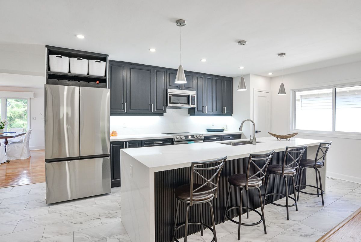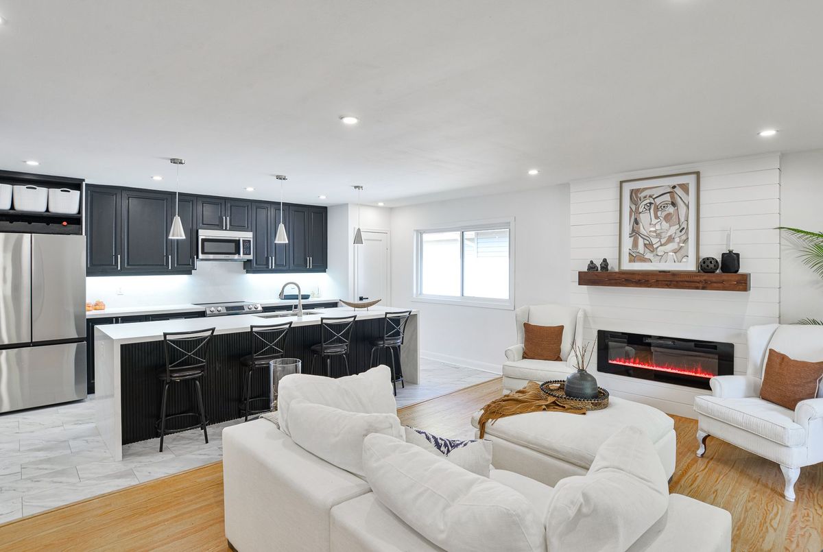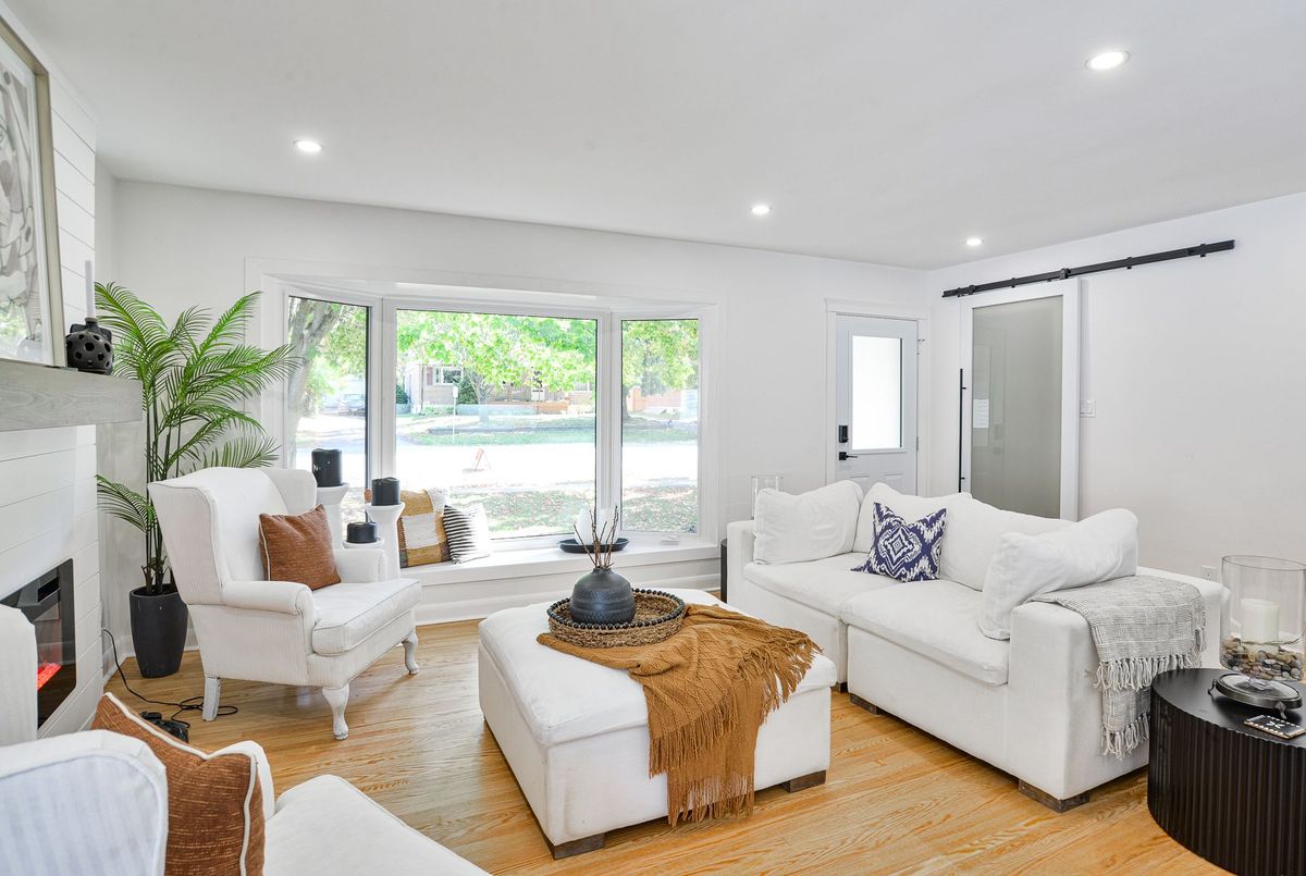 Modern Upgrades & Timeless Charm This beautifully renovated home blends contemporary style with thoughtful craftsmanship. Larger than it appears from the street- with the addition and the finished basement you have 2349 sq ft of finished living space. Located in a quiet, desirable neighborhood in North West Orillia. Walk to your choice of schools, close to all amenities. It is move-in ready with premium finishes throughout. Main Floor Improvements- New windows and doors on original part of house, Refinished hardwood floors , Huge Master closet suite with direct bathroom access - Updated wall textures, mirror flooring, and vanity upgrades - Two electric fireplaces for cozy ambiance - Upgraded electrical system (ESA certified) with new lighting - Soffit lighting for exterior elegance - New hot water tank - New interior doors and handles --- Basement Renovations- New flooring, trim, doors, and handles - Spray foam insulation for energy efficiency - New plumbing throughout - Upgraded bathroom with modern fixtures --- Interior Highlights- Open-concept kitchen and living space with sleek black cabinetry and stainless steel appliances - Elegant white shiplap paneling and recessed lighting - Cozy bedrooms with artistic touches and built-in electric fireplace - Bright living/dining area with large windows and serene views --- Exterior Features- Well-maintained front yard with landscaped flower beds - Spacious backyard with mature trees, seating areas, and utility structures - Nighttime curb appeal with warm exterior lighting and decorative planters. A great flexible layout that accommodates extended family living -(potential for an inlaw apartment or duplex) and offers one level living on the main floor .