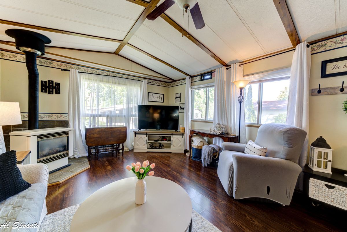 Welcome to 76 Georgian Glen Drive, a bright and comfortable 2-bedroom plus den modular home located in the desirable Georgian Glen Estates community. This home is situated on leased land and offers a functional layout ideal for year-round living. Enjoy the convenience of being within walking distance to Stonebridge Town Centre, offering easy access to shopping, dining, banking and amenities. Inside, you'll find an open-concept living area with a gas fireplace , a spacious kitchen, two well-sized bedrooms, and a versatile den that could serve as a home office, hobby room, or guest space. The home also features a full bath, in-unit laundry, and a private driveway. Nestled in a friendly and peaceful neighbourhood with mature trees and a welcoming atmosphere, this property is ideal for downsizers, retirees, or anyone looking for affordable, living in the heart of Wasaga Beach. Monthly Rent for new owners: $700 Structure Tax: $29.21 Lot Tax: $22.74 Total Monthly: $751.94