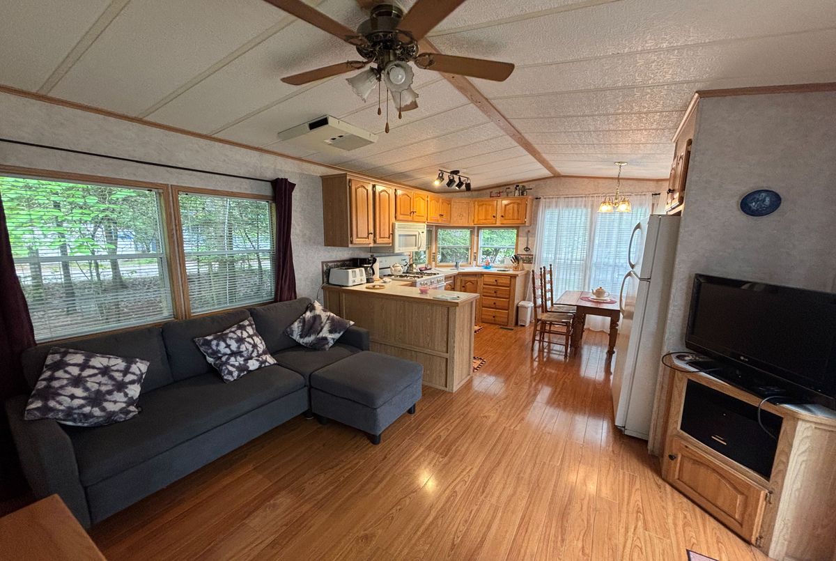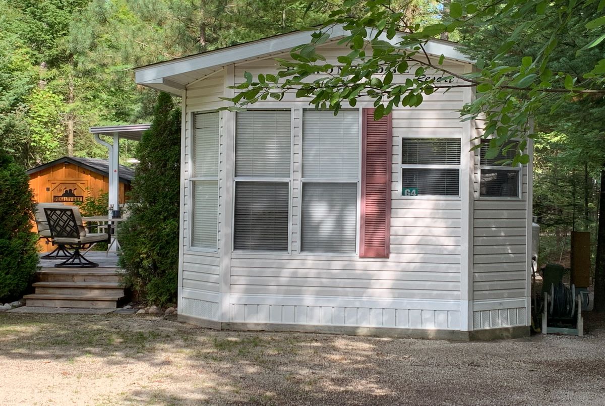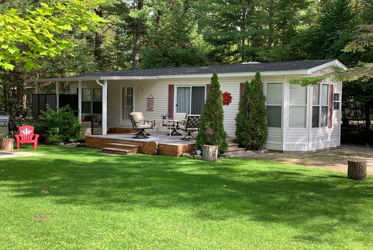 Nestled in a secluded haven within the beloved Countrylife Resort, this Huron Ridge Resort Cottage (2001) invites you into a world where summer dreams unfold effortlessly. Open for seven blissful months (May 1st-November 16th), this 2-bedroom, front-kitchen model with dishwasher gleams brighter than the day it first rolled off the factory floor. Step outside and discover a outdoor sanctuary 15x10 ft. hard-roofed haven and an expansive 317 sq. ft. deck designed for long afternoons of laughter and twilight gatherings under the stars. Perched on one of the most coveted lots, this gem is just a short, carefree stroll to the sandy shoreline. With parking for two cars and ample space for a golf cart and bicycles, convenience is at your fingertips. The low-maintenance exterior, complemented by a new roof (2019), ensures worry-free relaxation. Mostly furnished and impeccably maintained, this Cottage is ready for your family to create endless summer memories. Beyond your private escape, the gated resort offers a storybook of amenities, 5 sparkling pools, a splash pad, a vibrant clubhouse, tennis courts, playgrounds, mini-golf, and of course, private gated beach access. The 2026 seasonal site fees are $6,090.00 + HST, covering the use of all amenities and secure access by both car and beach entrance. A true pleasure to show, this magical retreat awaits its next chapter, will it be yours?