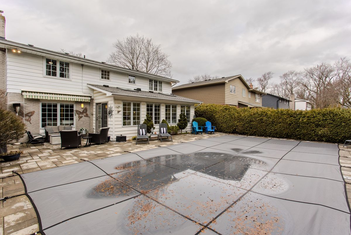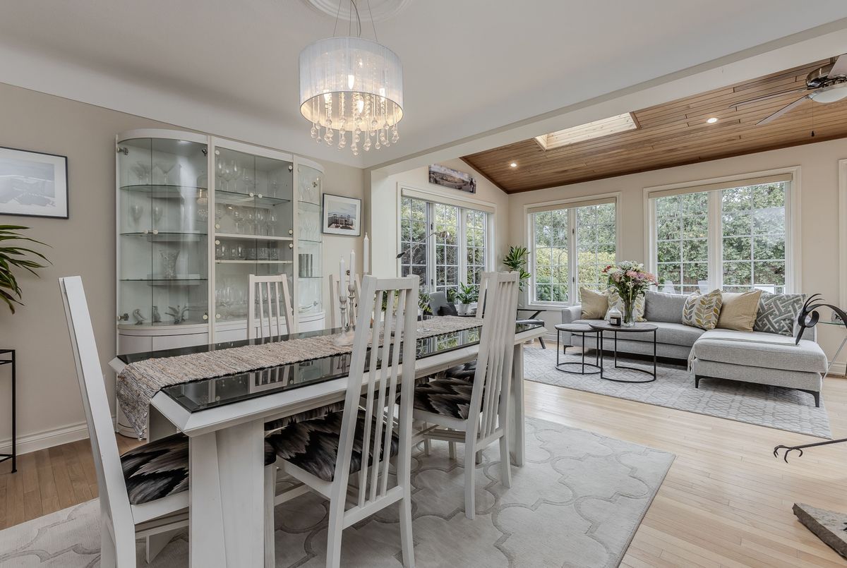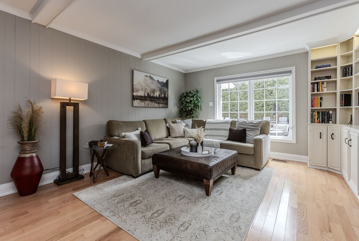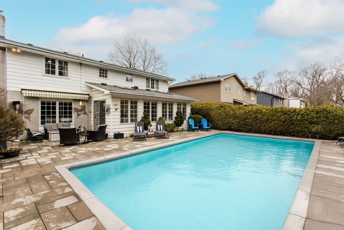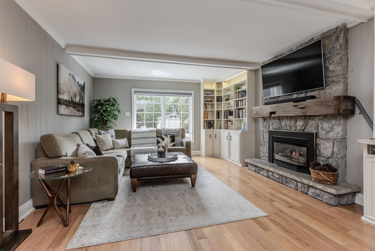Welcome to your modern farmhouse dream home in Burlington's sought-after Shoreacres community just steps from the waterfront, scenic parks, and trails. With easy access to highways and the GO station, this home offers 3,346 sq ft of total living space exuding charm, comfort, and convenience. Enjoy incredible curb appeal with a striking stone and siding exterior, interlock walkway, and a welcoming front porch with a sitting area surrounded by a perennial garden. Inside, hardwood floors flow through the main level, where an open-concept layout creates a seamless living experience. The living room boasts a floor-to-ceiling window, while the elegant dining room with French doors opens into a grand sun room featuring a soaring wood-panel slope ceiling, 2 skylights with motorized solar blinds, and access to the breakfast nook and backyard. The kitchen features stainless steel appliances, peninsula w/ breakfast bar, stone counters and backsplash (2024), custom appliance hideaway, and farmhouse-style range hood. The family room is a true haven with beamed ceiling, stone surround gas fireplace w/ rustic wood mantle, bookshelf built-ins, and panelled walls. Upstairs, the spacious primary suite offers dual closets and a renovated 3pc ensuite with walk-in glass shower and gold hardware finishes. Three additional large bedrooms, a home office area, and a modern renovated 4pc main bath complete the level. The fully finished lower level offers even more living space with a large rec room with luxury vinyl flooring perfect for entertaining. Outside, enjoy a private, fully fenced yard with a heated saltwater pool (2023 liner), upgraded stone patio (2022), pool shed, and cedar hedges for wind protection. A power awning provides shade over the seating area, ideal for relaxing around the fire table. A rare opportunity to own a beautifully upgraded home in one of Burlington's most desirable neighbourhoods. This is more than a home its a lifestyle. ...