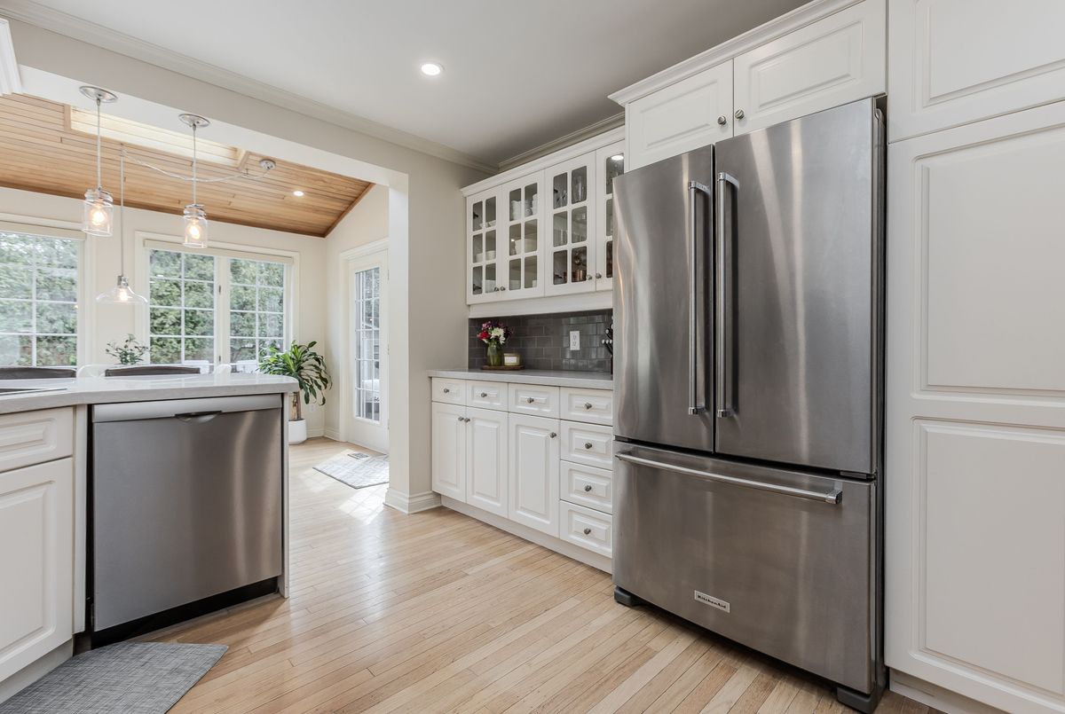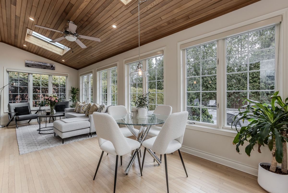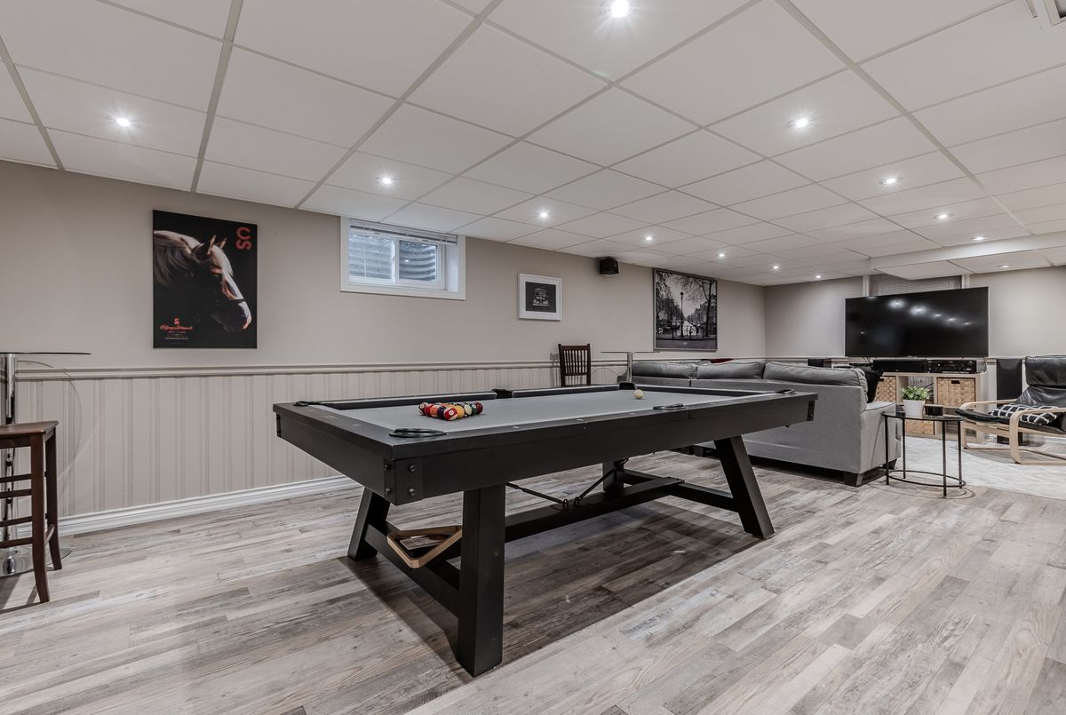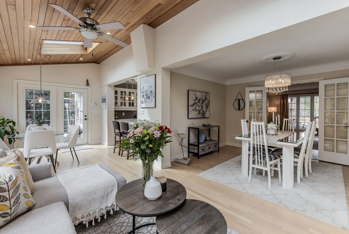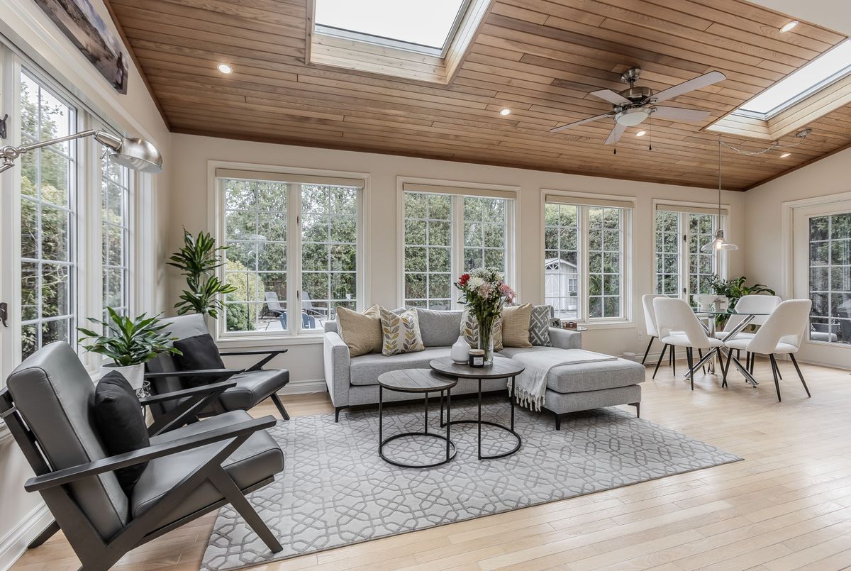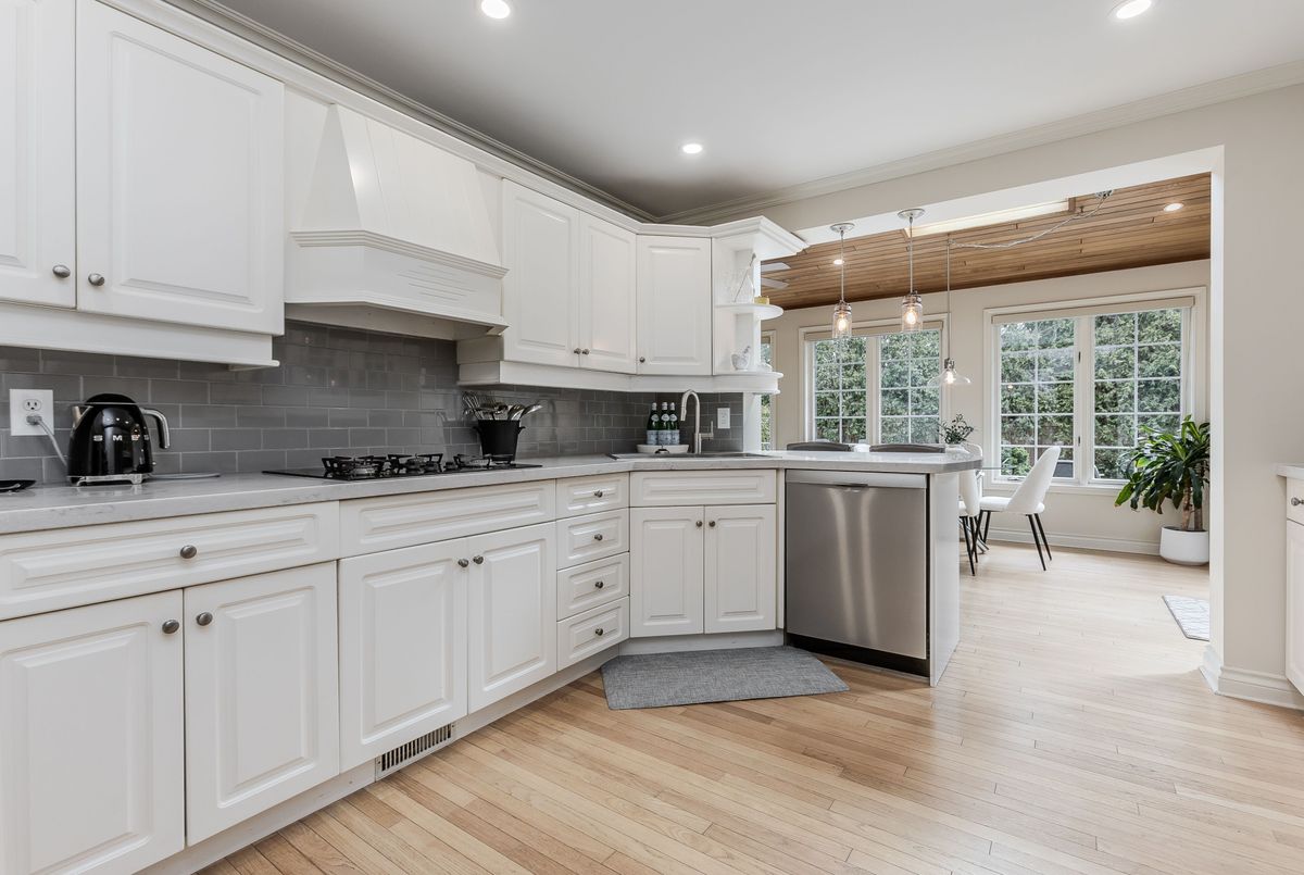 Welcome to your modern farmhouse dream home in Burlington's sought-after Shoreacres community just steps from the waterfront, scenic parks, and trails. With easy access to highways and the GO station, this home offers 3,346 sq ft of total living space exuding charm, comfort, and convenience. Enjoy incredible curb appeal with a striking stone and siding exterior, interlock walkway, and a welcoming front porch with a sitting area surrounded by a perennial garden. Inside, hardwood floors flow through the main level, where an open-concept layout creates a seamless living experience. The living room boasts a floor-to-ceiling window, while the elegant dining room with French doors opens into a grand sun room featuring a soaring wood-panel slope ceiling, 2 skylights with motorized solar blinds, and access to the breakfast nook and backyard. The kitchen features stainless steel appliances, peninsula w/ breakfast bar, stone counters and backsplash (2024), custom appliance hideaway, and farmhouse-style range hood. The family room is a true haven with beamed ceiling, stone surround gas fireplace w/ rustic wood mantle, bookshelf built-ins, and panelled walls. Upstairs, the spacious primary suite offers dual closets and a renovated 3pc ensuite with walk-in glass shower and gold hardware finishes. Three additional large bedrooms, a home office area, and a modern renovated 4pc main bath complete the level. The fully finished lower level offers even more living space with a large rec room with luxury vinyl flooring perfect for entertaining. Outside, enjoy a private, fully fenced yard with a heated saltwater pool (2023 liner), upgraded stone patio (2022), pool shed, and cedar hedges for wind protection. A power awning provides shade over the seating area, ideal for relaxing around the fire table. A rare opportunity to own a beautifully upgraded home in one of Burlington's most desirable neighbourhoods. This is more than a home its a lifestyle. ...