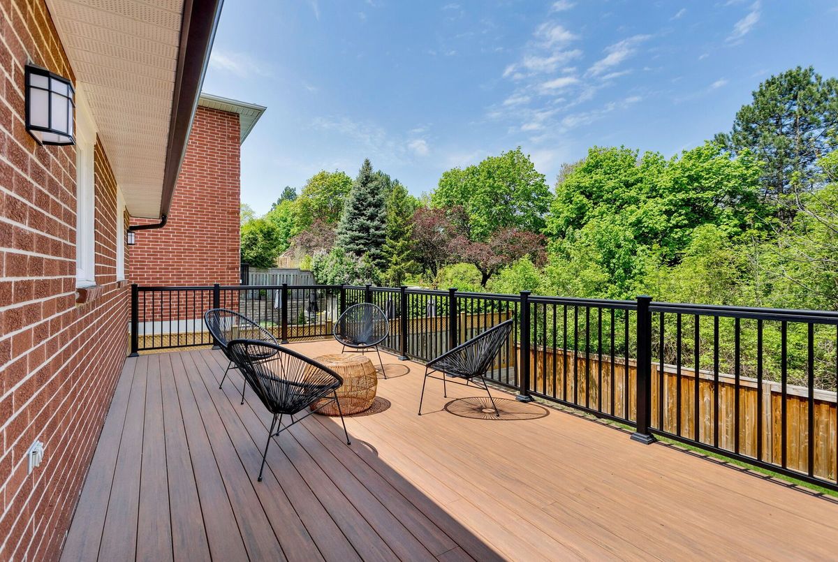 A rare turnkey gem in the heart of Etobicoke, 5 Aderno Court is a move-in-ready raised 2-storey home on the only cul-de-sac in the exclusive Greens of St. Georges community, offering unmatched privacy and minimal traffic. Set on an expansive lot backing onto green space, this 4-bedroom, 3-bath home is perfect for families. The heart of the home is a stunning, fully renovated chefs kitchen showcasing designer finishes ideal for entertaining. Step out from the kitchen to a spacious new composite deck overlooking a private backyard. All three renovated bathrooms feature luxury finishes, including a spa-like primary ensuite with an oversized walk-in shower.The fully repainted home includes a modernized laundry room with new garage access, an enhanced security front door, upgraded light fixtures throughout, and a brand-new driveway. With all new energy-efficient windows, this sun-filled home is nestled on a quiet family-friendly court, within walking distance to parks, schools, transit, and shopping.