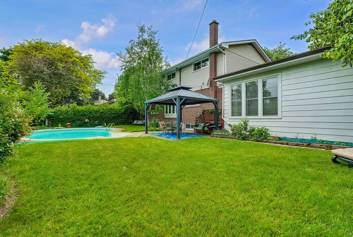 Introducing this attractive and charming home, which sits on a spacious 80 x 100 lot in the heart of Burlington. The neighborhood is serene, peaceful and offers nearby conveniences such as Go Station services, Bus stations, the Burlington mall, and schools. As you walk the front entrance, notice the generous porch overlooking the tastefully landscaped lawn featuring a colorful magnolia tree and a colossal pine tree. The main floor offers a spacious family room that is bright and inviting, perfect for unwinding after a long day. The living room features a fireplace and flows seamlessly into the dining room, making entertaining family and friends a breeze. Enjoy the spacious office, with its large windows which can easily be converted into a comfortable bedroom. The second-floor features four bedrooms, including master suite which boasts his and her closets and its own private ensuite. Venture downstairs into the basement where you'll find a fully furnished apartment offering a full kitchen, a living/dining room with a cozy fireplace, a tasteful bathroom, an additional bedroom, laundry facilities and a walk-out to the backyard! Bask in your private backyard complete with a stylish gazebo for shade and an inviting inground pool perfect for cooling off on warm days. Recent upgrades include: Recently replaced furnace and AC (Oct 2024), recently replaced windows and shingles (2018). RSA.