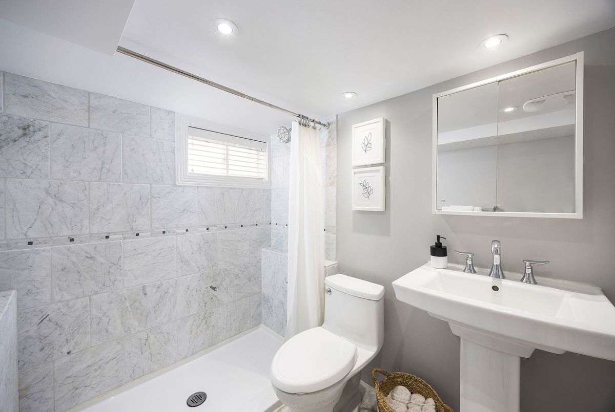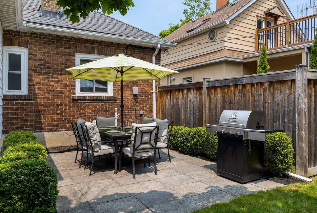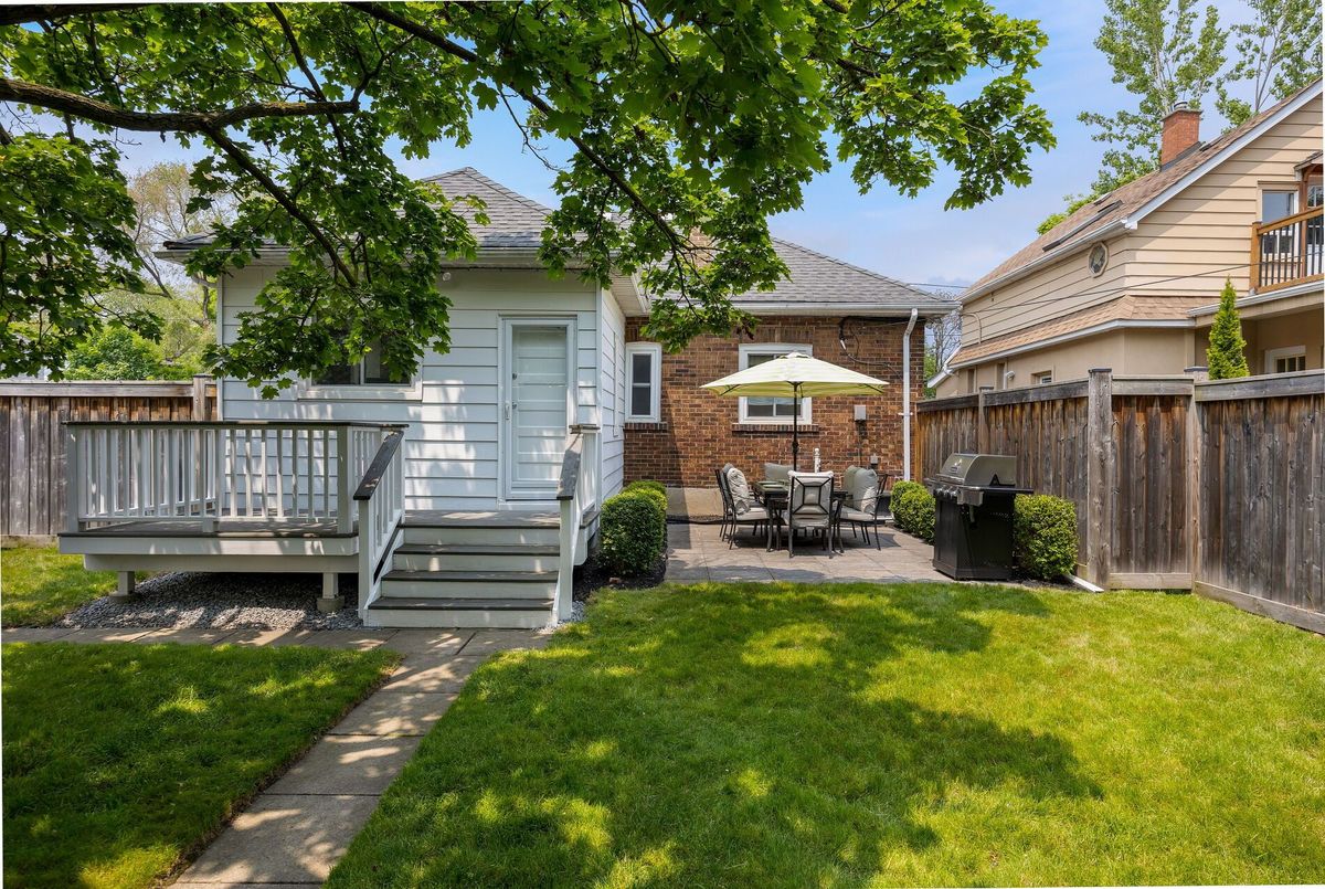 Looking for your first home, wanting to downsize or tired of condo dwelling? This fully renovated bungalow in a family-friendly neighbourhood is waiting for you to simply turn the key and move right in. The enclosed porch-turned-mudroom provides the perfect place to store your outerwear before entering the seamlessly flowing living space that's spread over more than 1,500 sq.ft. Bright and airy, the living room spills into the dining room, which opens up into a classic galley kitchen that's both practical and stylish with its ergonomic layout, white shaker cabinets, quartz countertops and marble backsplash. Separated from the main living space are the primary and second bedrooms, providing privacy and peacefulness at night. The tranquil spa-like bathroom combines marble countertops with matching marble floors, elevating bath time to an indulgent experience. The entire main floor is the ultimate blend of character and modern updates. Crown moulding brings a sense of grandeur and premium maple hardwood floors add elegance. In the fully finished basement, a generously sized rec room offers the optimal place to cozy up on the couch for movie viewing, with space to spare for kids' play area or spot for personal exercise. A designated office with built-in desk and cabinets makes working from home desirable. The bedroom with adjacent bathroom blends comfort with functionality, great for a child, big or small, or as a guest suite. Brand-new AC system. Upgraded insulation and electrical panel. Furnace maintained yearly. Walk-out from kitchen to deck that overlooks fully fenced-in yard and spacious stone patio that's ideal for relaxing or entertaining. 12-ft by 8-ft custom-built garden shed provides ample year-round storage for all your outdoor essentials. Private driveway with parking for 2 cars. School catchment for top-rated St. Louis, Norseman, Bishop Allen and ECI. Steps to Jeff Healey Park, TTC, shops and restaurants. Minutes to GO station. Easy access to Gardiner/QEW.