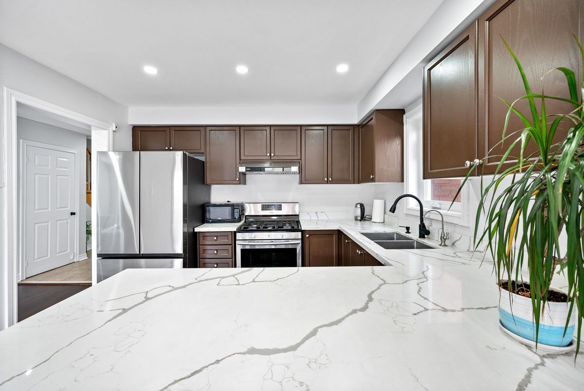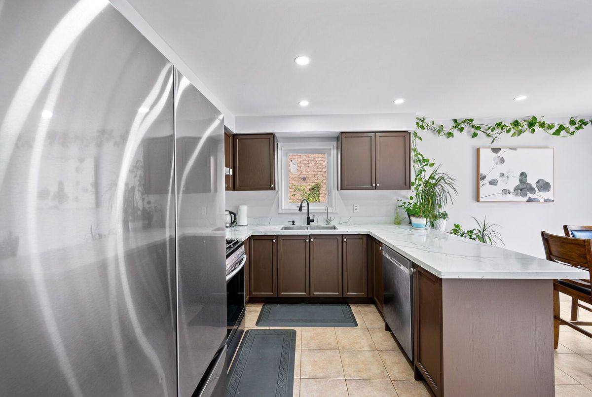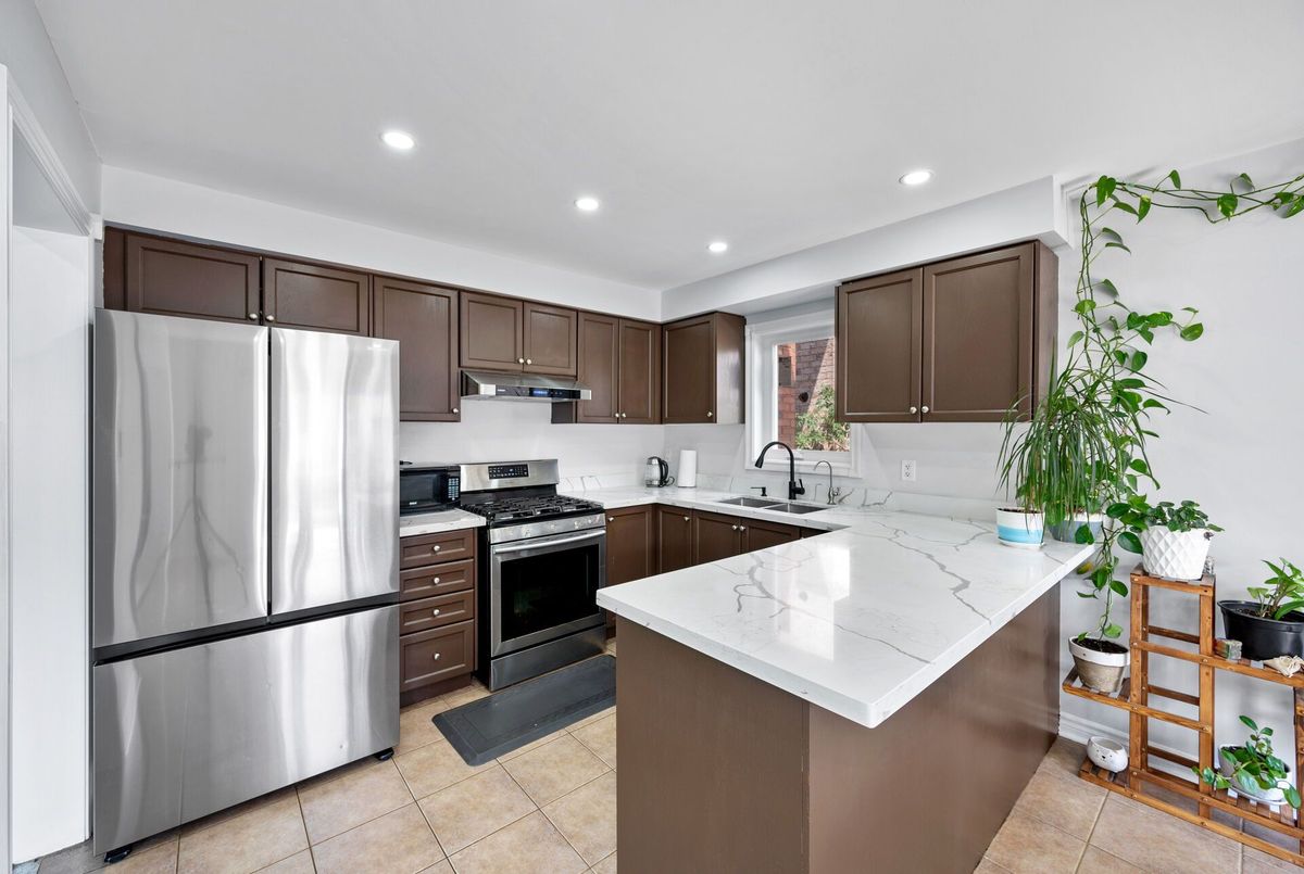 Come check out this stunning 4-bedroom full-brick detached home, situated on a quiet street. The main floor features an open-concept layout highlighted by laminate flooring and pot lights. The updated kitchen includes newer appliances and quartz countertops. Enjoy your indoor-outdoor living with a walk-out from the breakfast area to a newly constructed large deck. . Upstairs, you'll find 4 generously sized bedrooms with newly installed laminate flooring, perfect for accommodating a large family. Carpet Free home no side wa