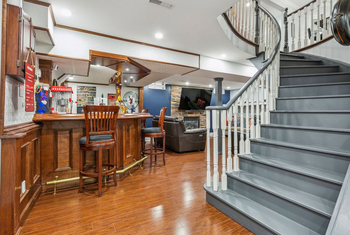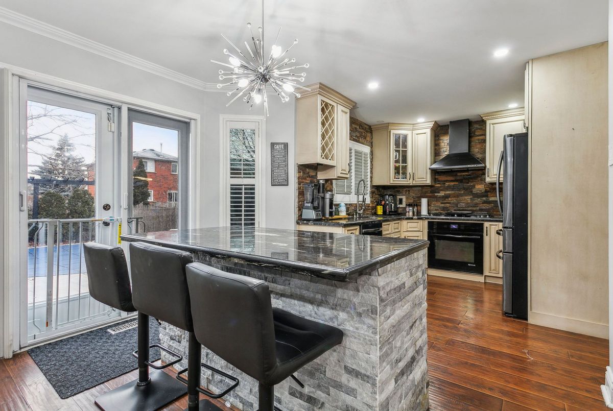 Welcome to this warm and inviting family home, perfectly situated in a highly sought-after East Burlington neighbourhood. Extensively renovated throughout with over $250,000 in upgrades, this home truly stands out. Updates include a beautifully modernized kitchen, custom barn-style doors, pot lights, upgraded lighting throughout, and two stunning custom fireplaces in the main and basement levels. The basement also features a custom bar with a mini fridge and ice maker. Automated home offers advanced features: 'Ring' alarm system, Google video surveillance, fully automated plugs, lighting, door locks, smoke detectors integrated with the Nest app, and an automated sprinkler system. Completing the upgrades are renovated washrooms, including heated floors and a heated shower floor on the second level.Private backyard perfect for entertaining, featuring a large in-ground pool with updated equipment: New liner, heater, pump, and Hayward salt automation system. Upgraded interlock patio with outdoor speakers, a TV bracket and connection, and newly updated fences. Garage features a brand-new door, custom cabinets for storage, an extra fridge, and a heated space. Front yard impresses with an enlarged driveway accommodating five cars, exterior pot lights, new eavestroughs and downspouts with leaf guards, and modern curb appeal. Additional upgrades include a tankless water heater (rental) and much more. Meticulously updated property that offers exceptional value.