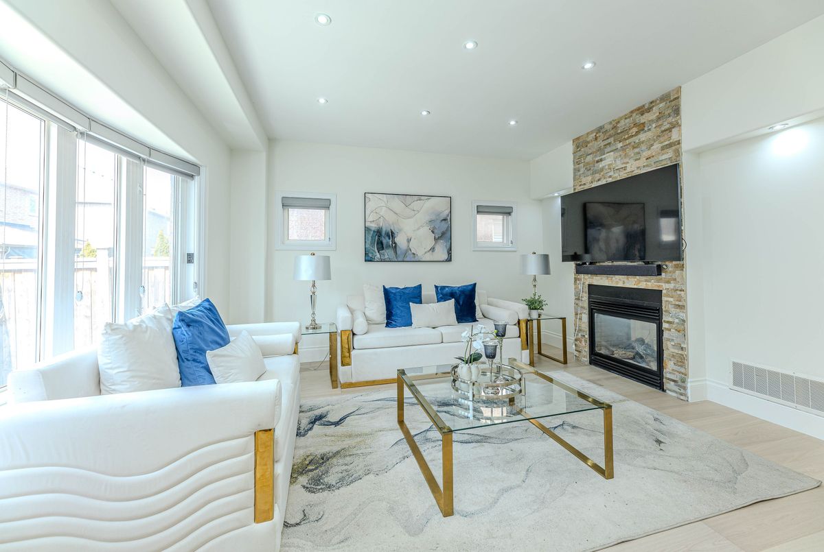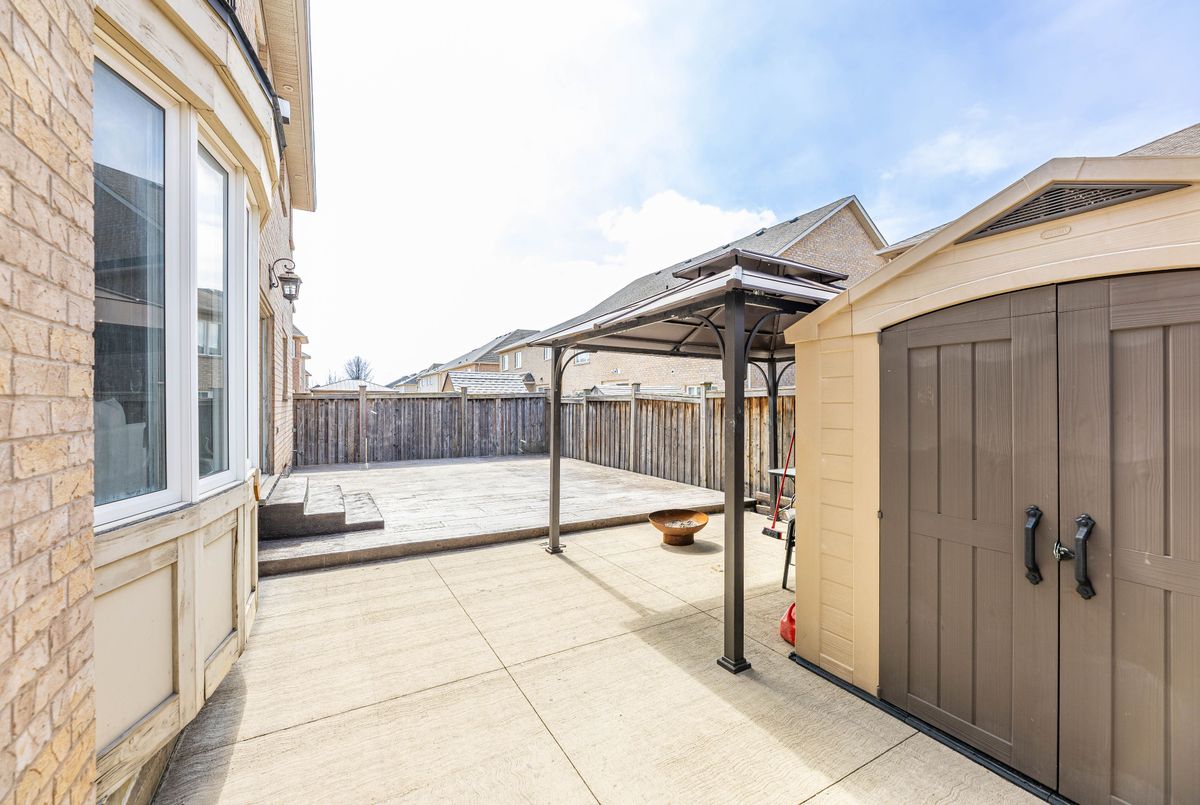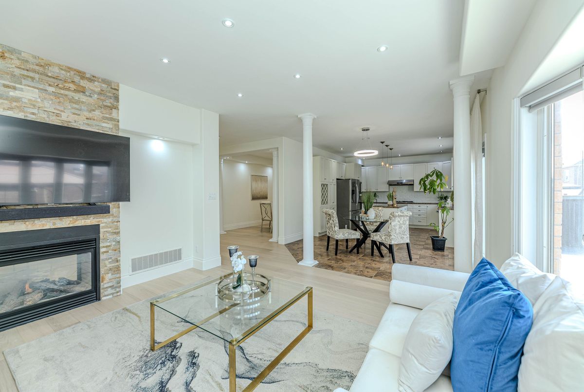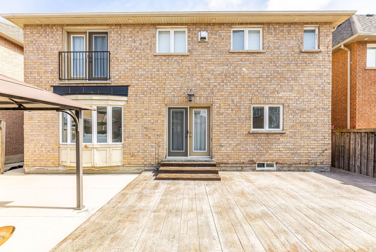 This rare executive residence in the prestigious Vales of Castlemore offers over 3,300 sq. ft with 4 spacious bedrooms and 3 full bathrooms on the second level. Nestled on a quiet, upscale street, the home features a grand main floor with 9-ft ceilings, gleaming hardwood floors, and a seamless open-concept layout perfect for entertaining. The den includes custom built book shelves and a stunning two-sided gas fireplace shared with the family room. The chef-inspired kitchen is equipped with high-end stainless steel appliances, gas stove, built-in oven/microwave, a high-efficiency chimney, custom cabinetry with a wine rack, and pantry for extra storage. The luxurious primary suite boasts a 5-piece spa-like ensuite with a two-sided fireplace and sitting area .A second bedroom has access to its own 4-piece bath, while the remaining bedrooms share another well-appointed Jack and Jill bathroom. Enjoy serene outdoor views, a wooden deck with gazebo, and an aggregated/exposed concrete driveway with 4-car parking. Additional features include a double door entry, iron picket staircase, and proximity to top-rated schools, parks, shopping, and all amenities. Live in one of Brampton's most sought-after family-friendly communities!