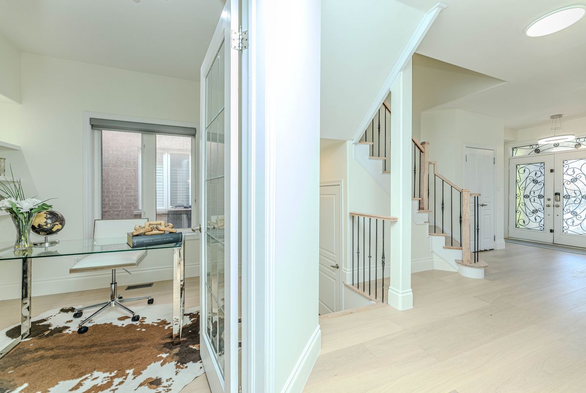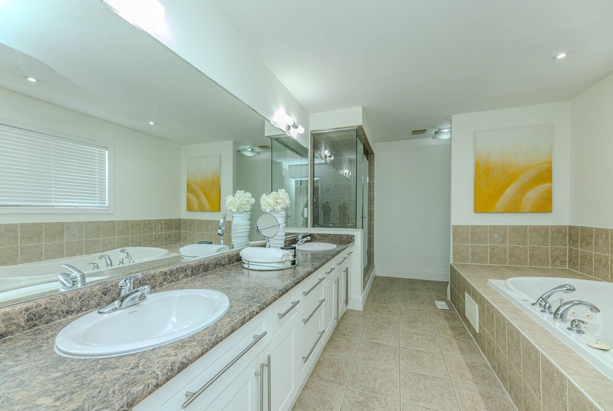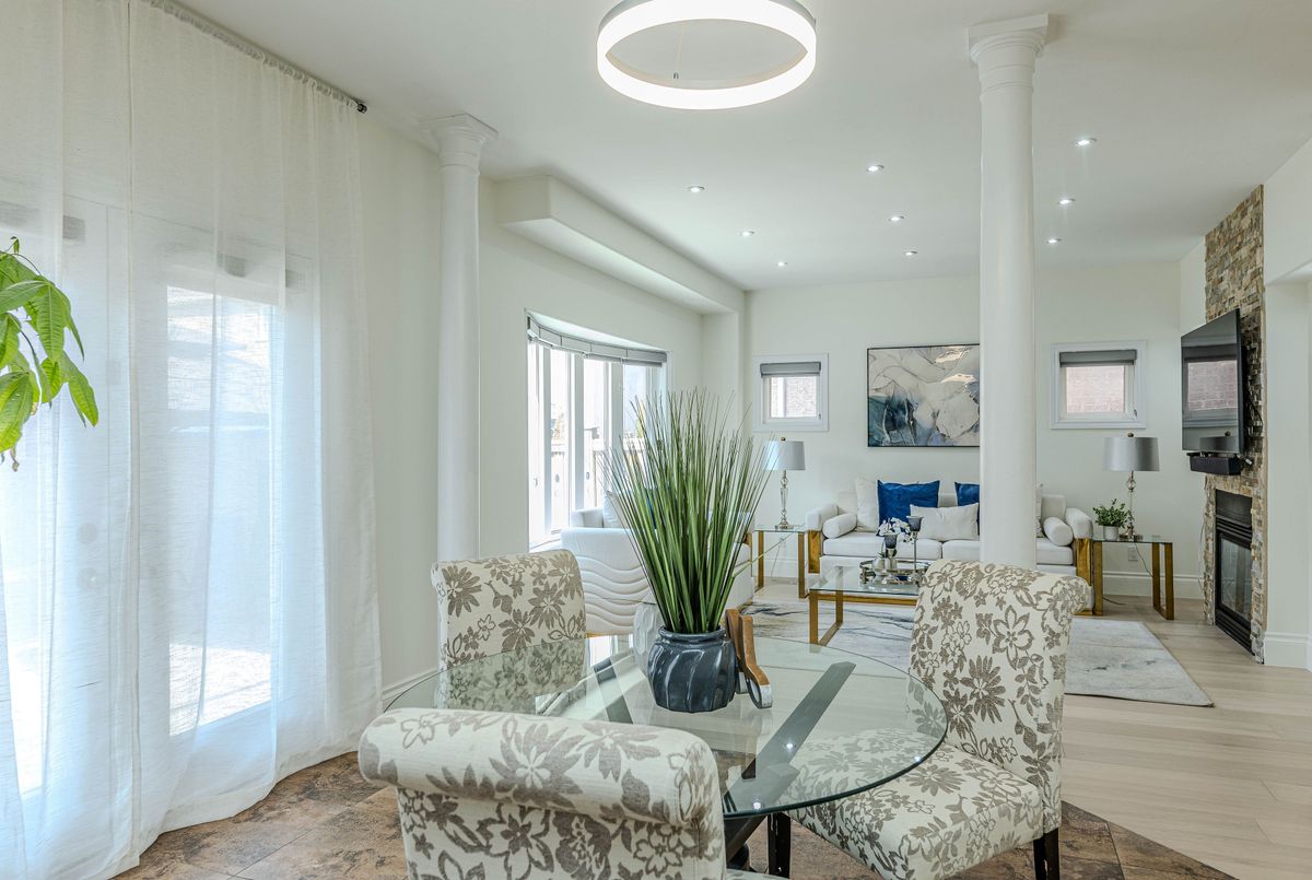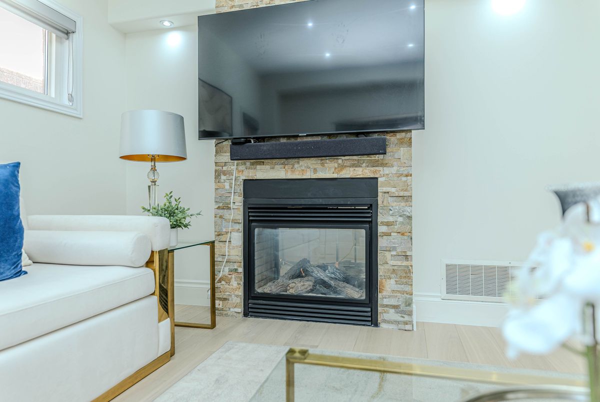 This rare executive residence in the prestigious Vales of Castlemore offers over 3,300 sq. ft with 4 spacious bedrooms and 3 full bathrooms on the second level. Nestled on a quiet, upscale street, the home features a grand main floor with 9-ft ceilings, gleaming hardwood floors, and a seamless open-concept layout perfect for entertaining. The den includes custom built book shelves and a stunning two-sided gas fireplace shared with the family room. The chef-inspired kitchen is equipped with high-end stainless steel appliances, gas stove, built-in oven/microwave, a high-efficiency chimney, custom cabinetry with a wine rack, and pantry for extra storage. The luxurious primary suite boasts a 5-piece spa-like ensuite with a two-sided fireplace and sitting area .A second bedroom has access to its own 4-piece bath, while the remaining bedrooms share another well-appointed Jack and Jill bathroom. Enjoy serene outdoor views, a wooden deck with gazebo, and an aggregated/exposed concrete driveway with 4-car parking. Additional features include a double door entry, iron picket staircase, and proximity to top-rated schools, parks, shopping, and all amenities. Live in one of Brampton's most sought-after family-friendly communities!