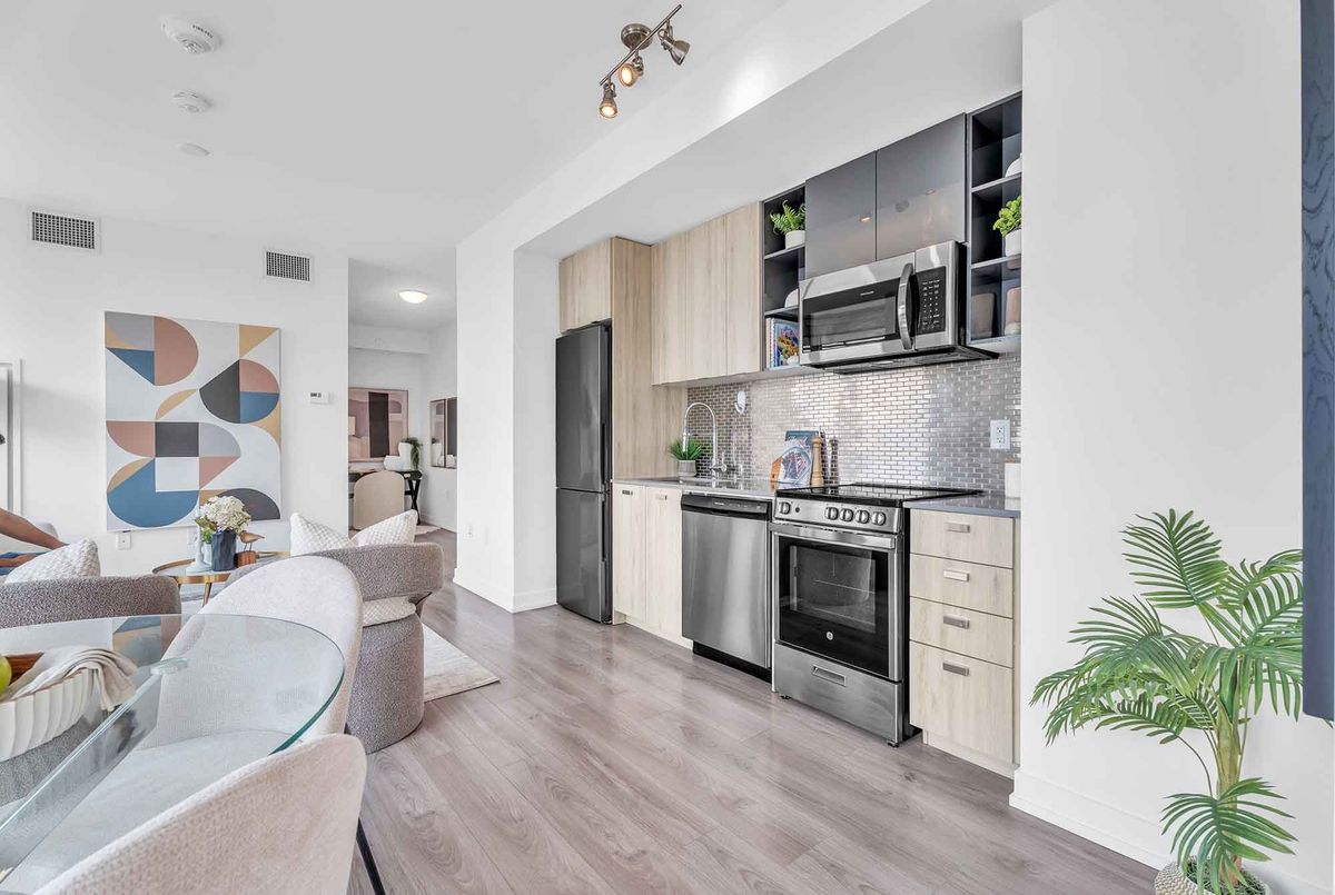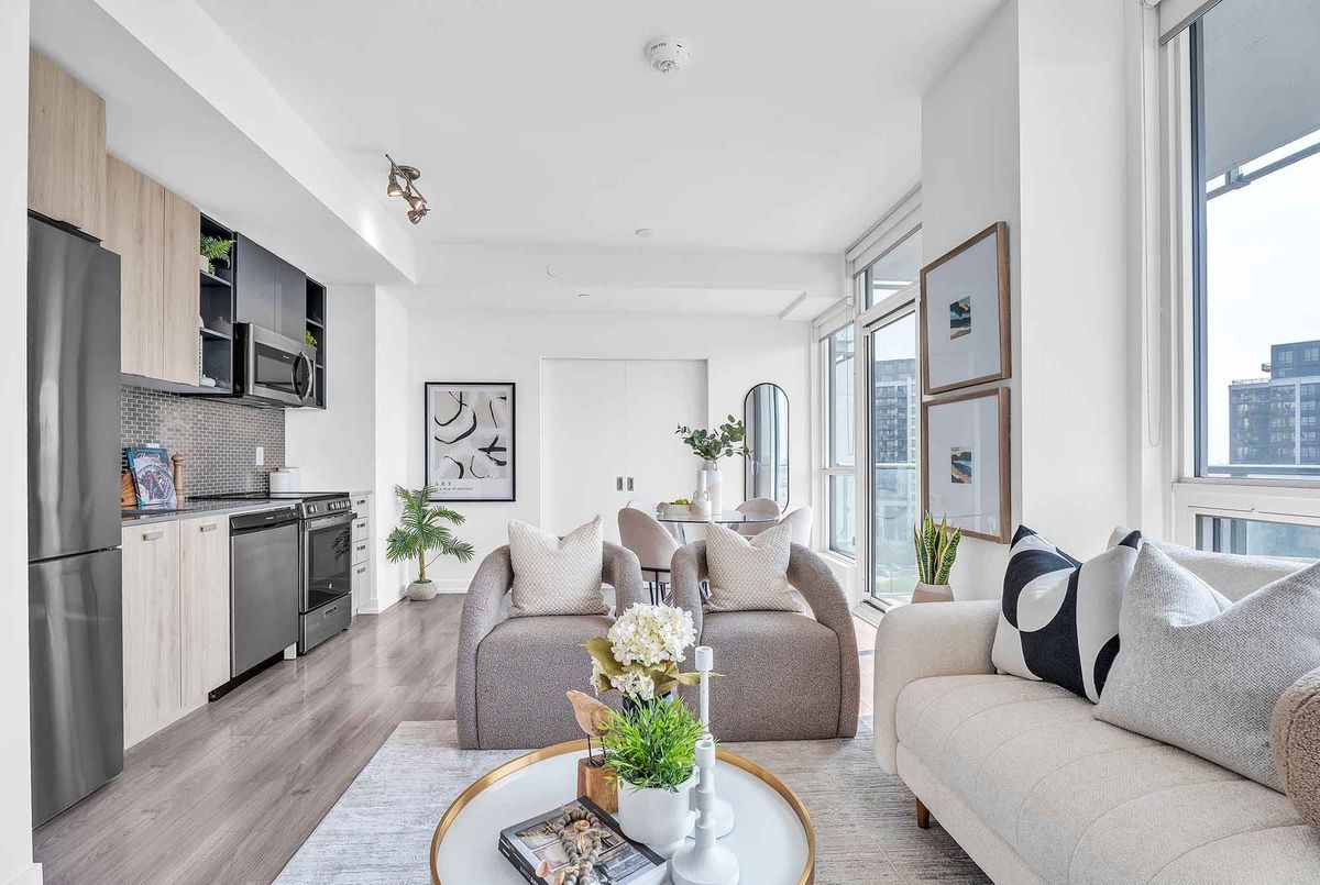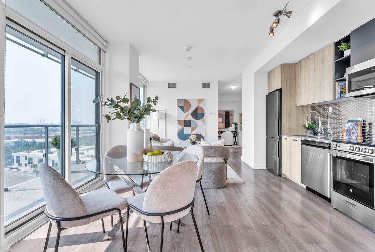 Bright & Spacious 2+1 Unit Located In The Modern Avro Condos, Right In The Heart Of North York! Sheppard West Subway Station Is Just Across The Street, 500m Away! 4 Yr New, Functional Layout Featuring 853 Sq. Ft. Of Interior Space Plus A 104 Sq. Ft. Balcony. The Primary Suite Offers A Large Walk-In Closet, A 4-Piece Ensuite, And Expansive Windows. Master Bedroom And Secondary Room Are Fully Separated For Complete Privacy. Den Is Perfect For A Home Office! Featuring 9Ft Ceilings, Floor-To-Ceiling Windows, Gourmet Kitchen With High-End Stainless Steel Appliances, Quartz Countertops, Tile Backsplash, Ensuite Laundry, And Combined Dining & Living Area. Top-Of-The-Line Building Amenities Include BBQ Stations, Outdoor Dining, Concierge, Fitness Centre, Rooftop Lounge, Indoor Lounge, Dog Wash Stations & Party Room. 1.5Km To Downsview TTC Subway Station & Downsview GO Station, 6 Mins Drive To Yorkdale Mall, 9 Mins Drive To York University! Enjoy Easy Access To Hwy 401/407/400/427. Steps To Coffee Shops, Restaurants, Costco, Fitness Clubs & More! Includes 1 Parking & 1 Locker. Don't Miss This Great Opportunity!
