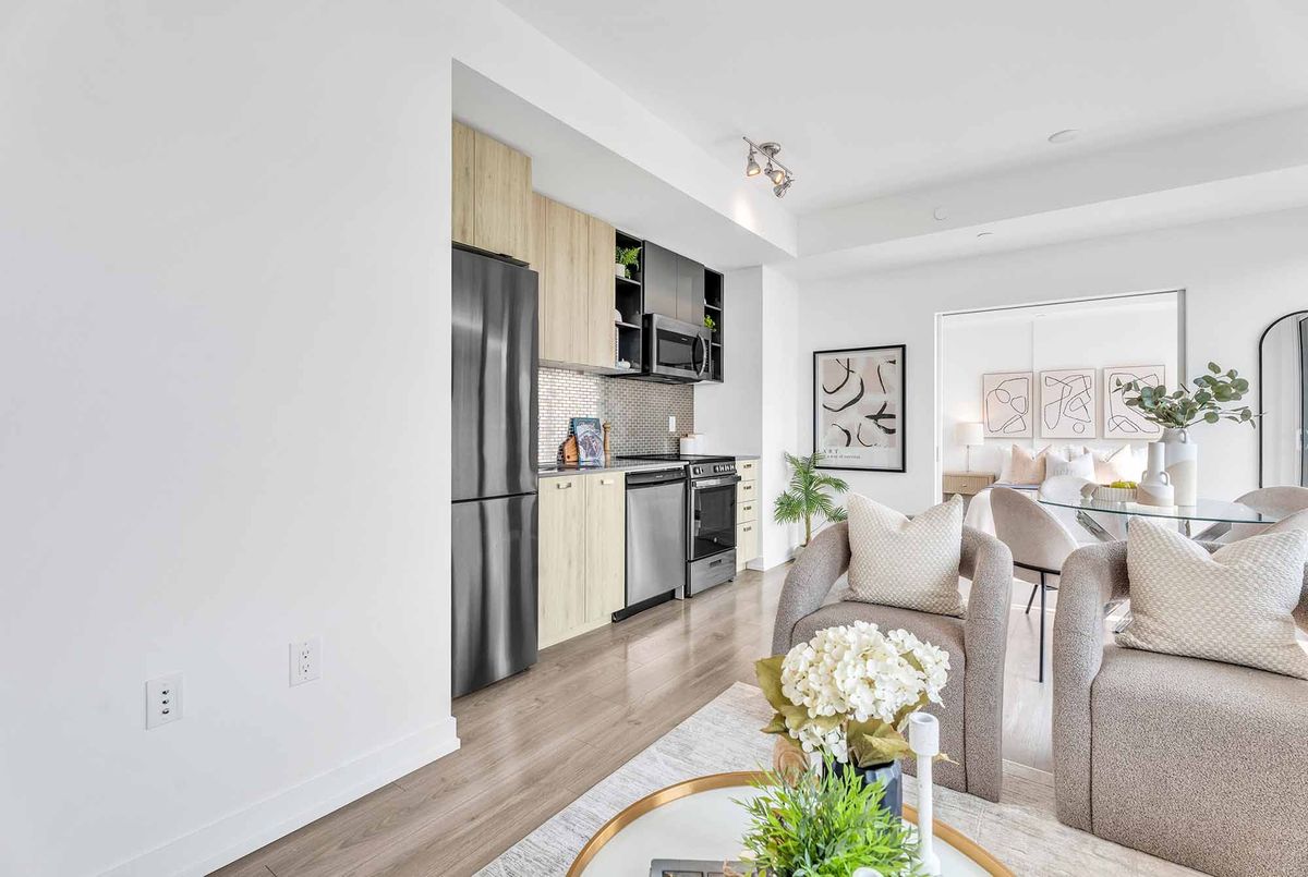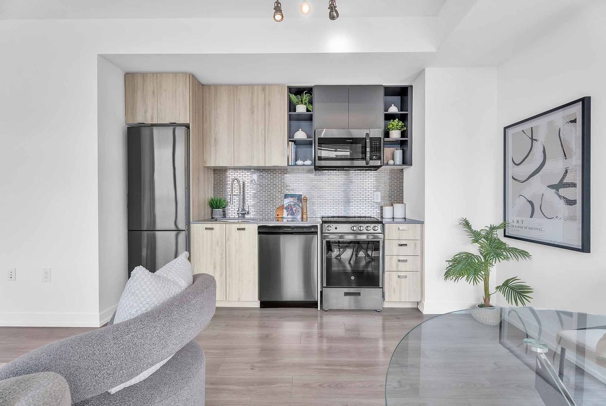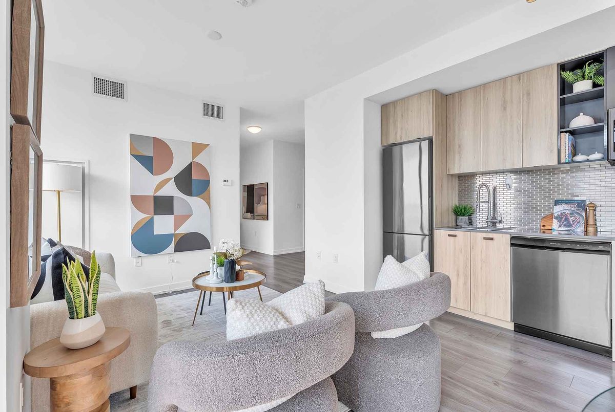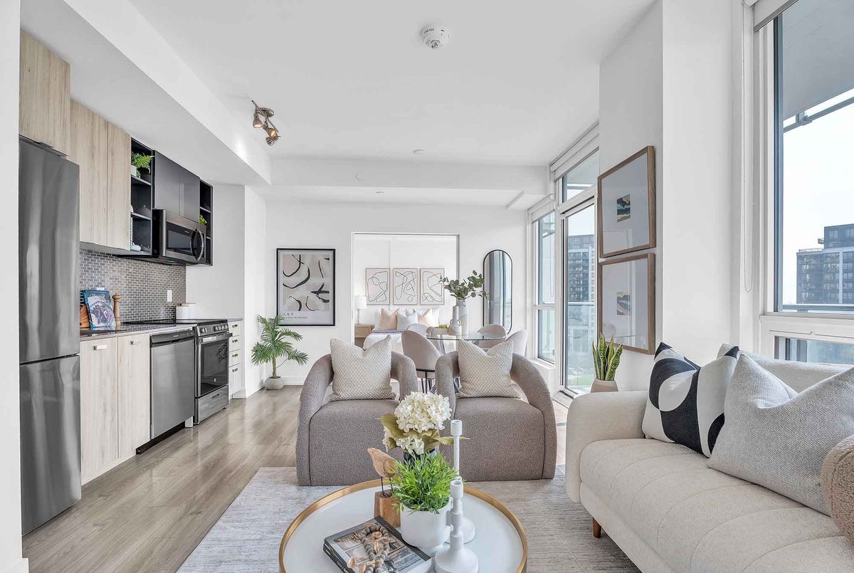 Bright & Spacious 2+1 Unit Located In The Modern Avro Condos, Right In The Heart Of North York! Sheppard West Subway Station Is Just Across The Street, 500m Away! 4 Yr New, Functional Layout Featuring 853 Sq. Ft. Of Interior Space Plus A 104 Sq. Ft. Balcony. The Primary Suite Offers A Large Walk-In Closet, A 4-Piece Ensuite, And Expansive Windows. Master Bedroom And Secondary Room Are Fully Separated For Complete Privacy. Den Is Perfect For A Home Office! Featuring 9Ft Ceilings, Floor-To-Ceiling Windows, Gourmet Kitchen With High-End Stainless Steel Appliances, Quartz Countertops, Tile Backsplash, Ensuite Laundry, And Combined Dining & Living Area. Top-Of-The-Line Building Amenities Include BBQ Stations, Outdoor Dining, Concierge, Fitness Centre, Rooftop Lounge, Indoor Lounge, Dog Wash Stations & Party Room. 1.5Km To Downsview TTC Subway Station & Downsview GO Station, 6 Mins Drive To Yorkdale Mall, 9 Mins Drive To York University! Enjoy Easy Access To Hwy 401/407/400/427. Steps To Coffee Shops, Restaurants, Costco, Fitness Clubs & More! Includes 1 Parking & 1 Locker. Don't Miss This Great Opportunity!