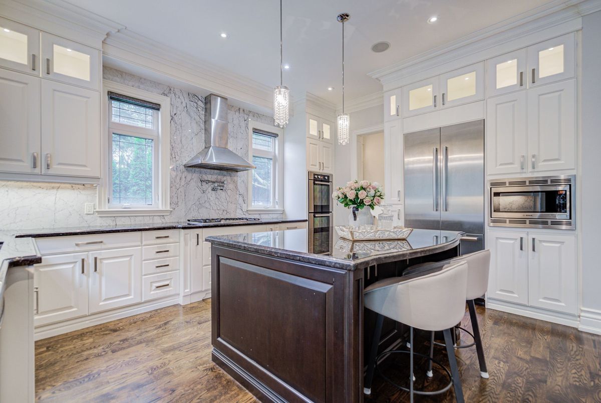 Stunning custom-built residence in prestigious Mineola East offering nearly 4,900 sq. ft. of finished living space with top-quality craftsmanship throughout. This elegant home features 10-ft ceilings, solid wood doors, wainscoting, smart-controlled lighting, surround sound, and security system. The gourmet kitchen boasts a large island, pantry, stainless steel appliances, granite countertops, pot filler, and marble backsplash, opening to a spacious family room ideal for entertaining. The fully finished lower level provides additional living space, while the fully fenced, pool-sized lot is enhanced by a newly installed lawn sprinkler system for easy maintenance and year-round curb appeal. Nestled in one of Mississauga's most sought-after communities, close to the lake, top-rated schools, parks, and public transit, home offers the perfect blend of luxury, comfort, and convenience.
