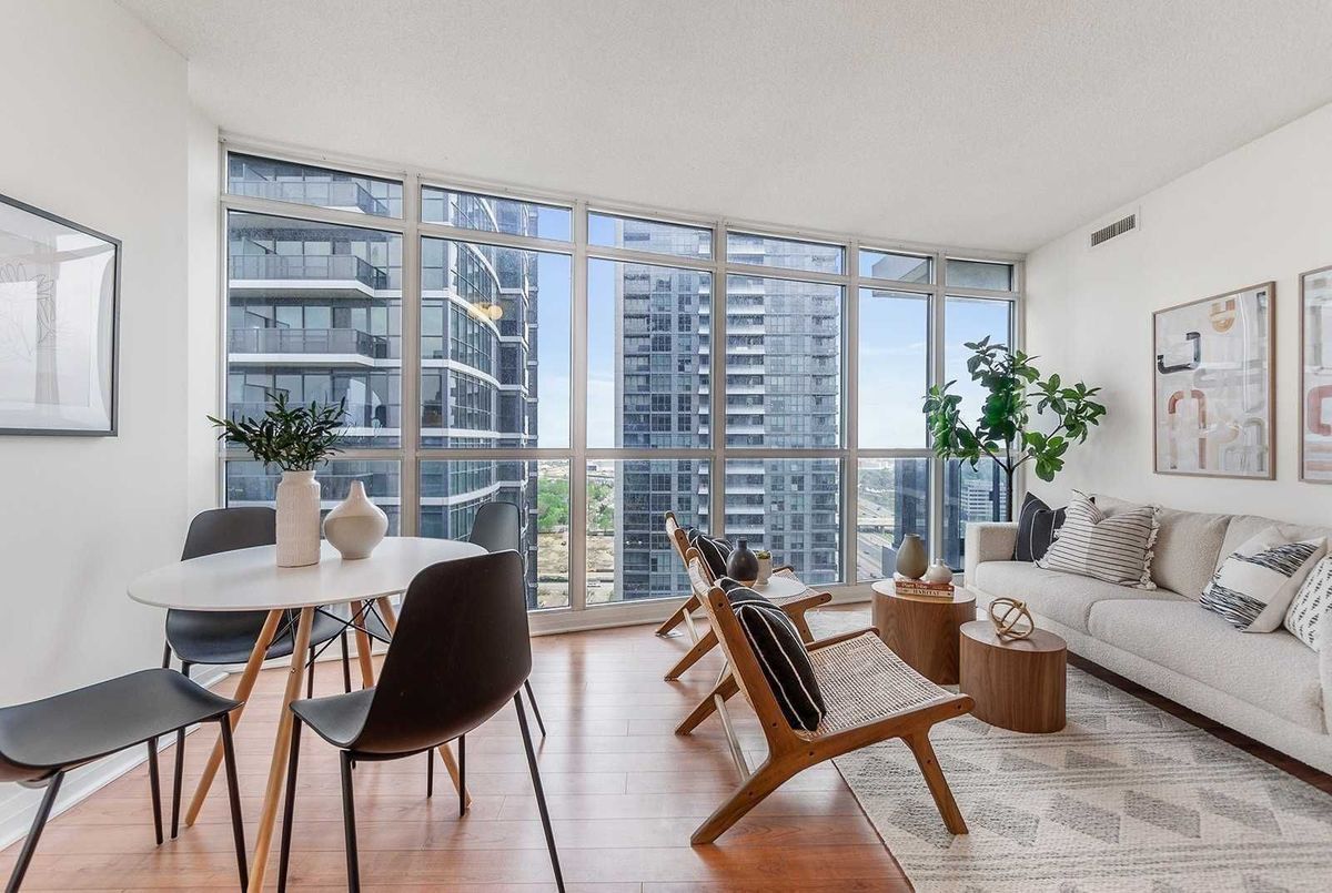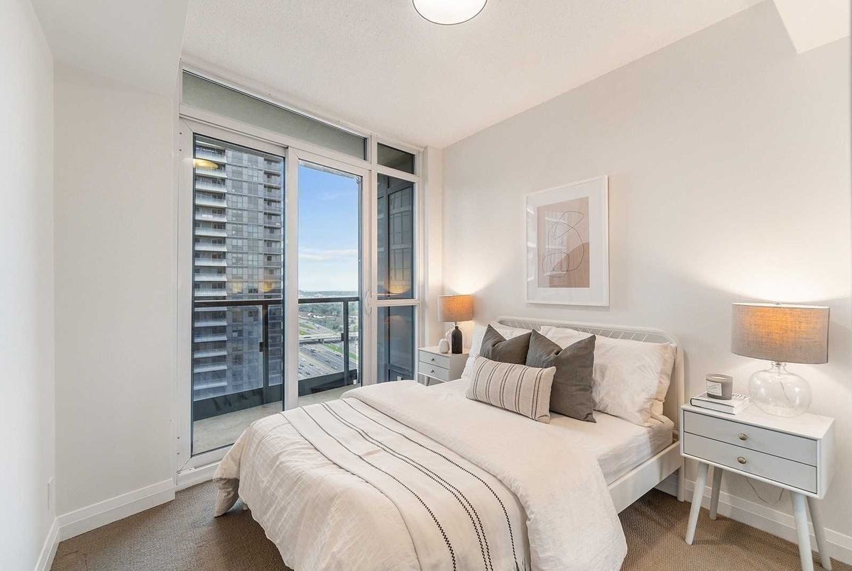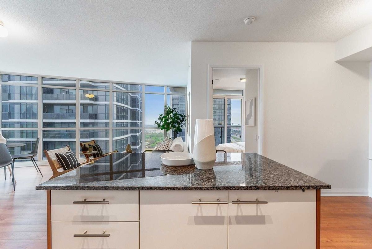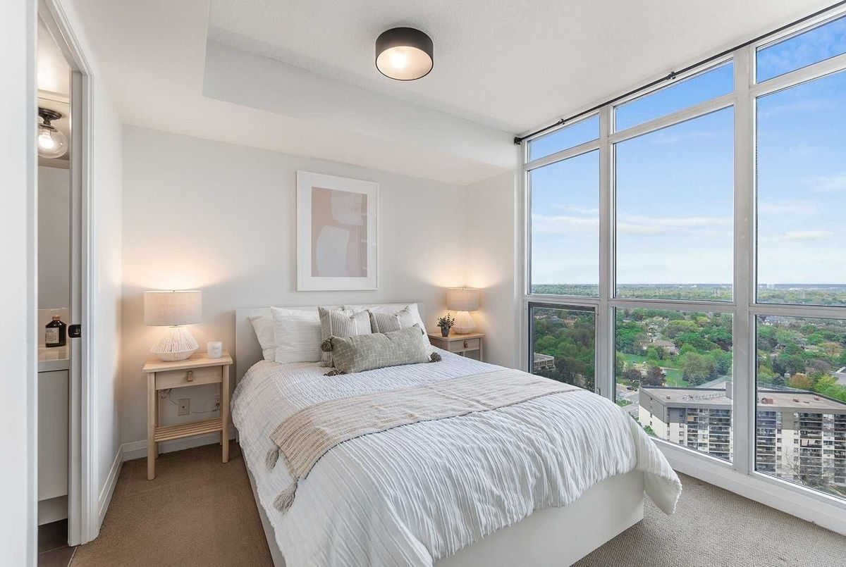 Don't miss this rare opportunity to lease a stunning 2-bedroom, 2-bathroom corner condo offering nearly 900 sq. ft. of modern living space with floor-to-ceiling windows and a breathtaking panoramic view. This bright, open-concept layout features a contemporary kitchen with granite counters, stainless steel appliances, a large island with breakfast bar and storage, and two private balconies perfect for relaxing or entertaining. Ideally located just minutes to Hwy 427 and Kipling Subway Station, with shopping, dining, and Sherway Gardens Mall at your doorstep, this prime urban setting delivers exceptional convenience and a walk score of 76. Residents enjoy premium amenities including an indoor pool, fitness centre, sauna, rooftop patio, concierge, and more, making this condo the perfect blend of comfort, style, and lifestyle.