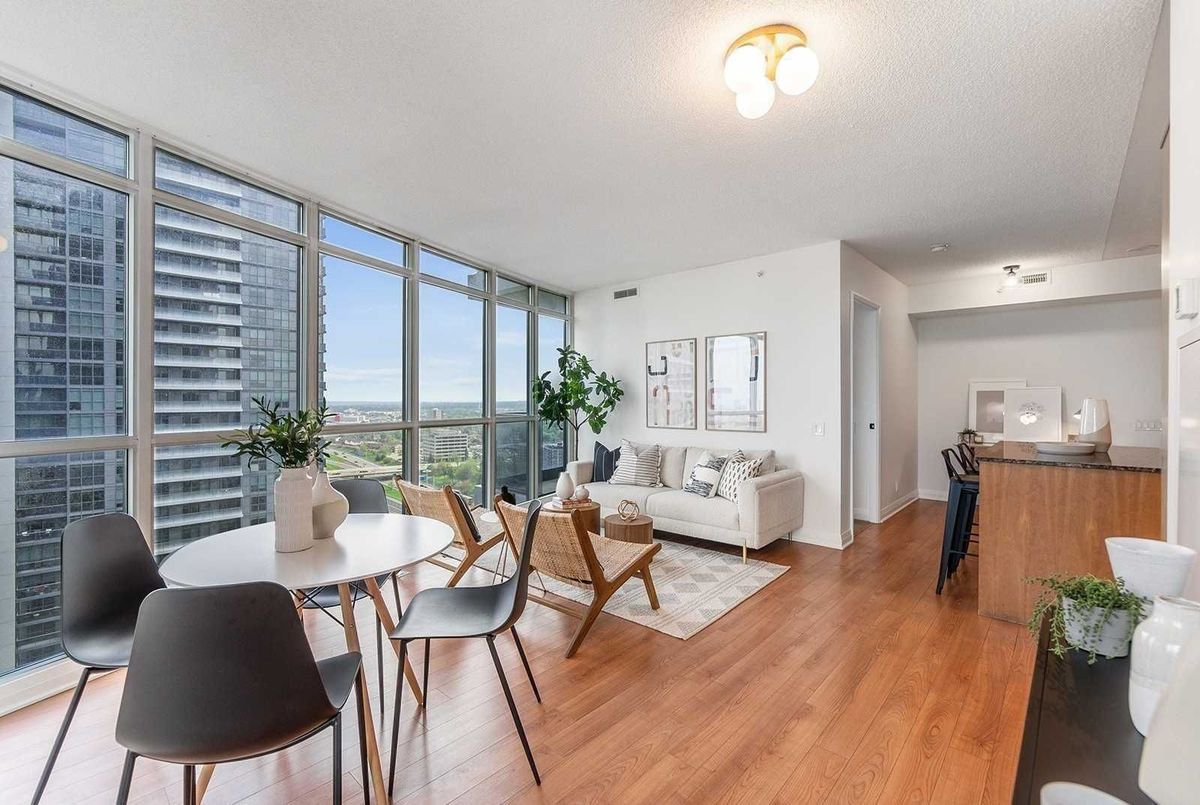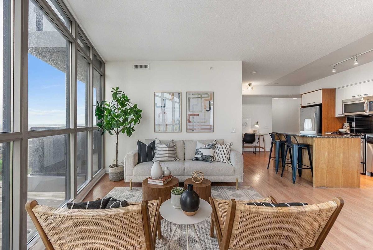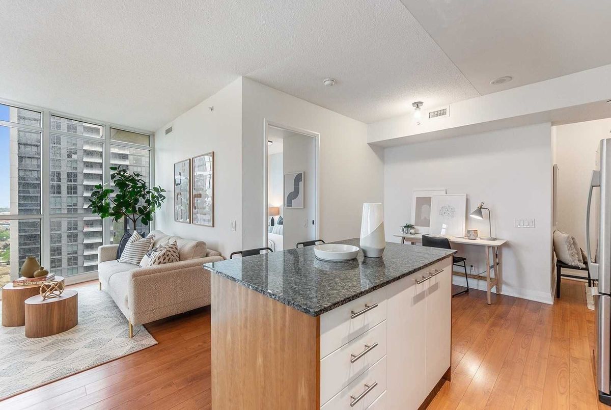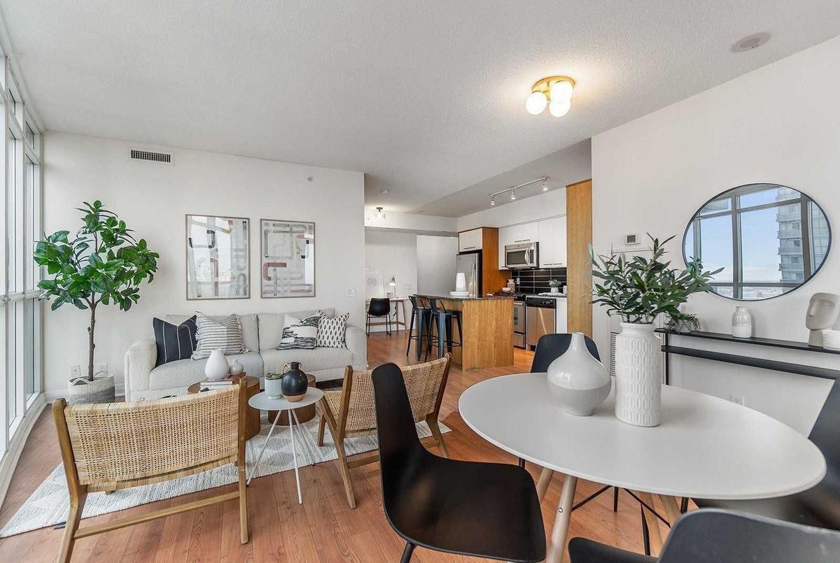 Don't miss this rare opportunity to lease a stunning 2-bedroom, 2-bathroom corner condo offering nearly 900 sq. ft. of modern living space with floor-to-ceiling windows and a breathtaking panoramic view. This bright, open-concept layout features a contemporary kitchen with granite counters, stainless steel appliances, a large island with breakfast bar and storage, and two private balconies perfect for relaxing or entertaining. Ideally located just minutes to Hwy 427 and Kipling Subway Station, with shopping, dining, and Sherway Gardens Mall at your doorstep, this prime urban setting delivers exceptional convenience and a walk score of 76. Residents enjoy premium amenities including an indoor pool, fitness centre, sauna, rooftop patio, concierge, and more, making this condo the perfect blend of comfort, style, and lifestyle.