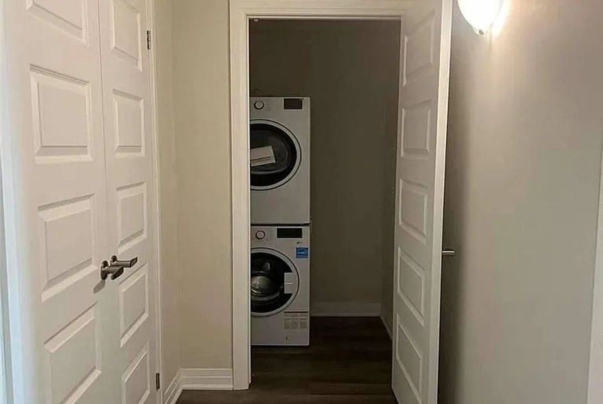 Spacious 2 Bed, 2 Bath Condo Prime Location! Bright and airy unit with 9' ceilings, grey flooring, and quartz kitchen with stainless steel appliances. Largest layout in the building with huge balcony and unobstructed views. Includes ensuite laundry, 2 parking spots, and locker. Amenities: Gym, party room, car wash, pet area, bike storage, and more. Close to hospital, schools, plaza, and transit.