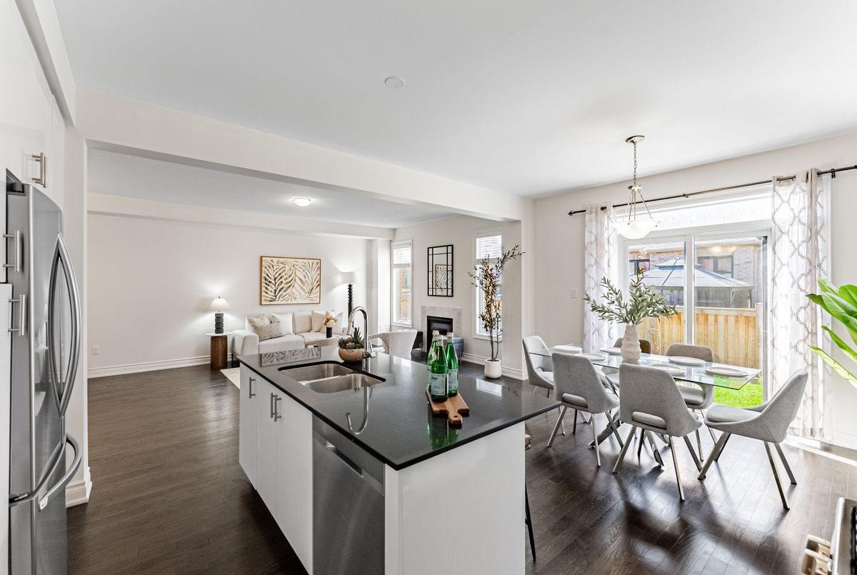 Discover this exceptional Great Gulf Kelso model, offering approximately 3,000 sq ft of thoughtfully designed living space. Just 7 years young, this home has been freshly painted throughout in stylish neutral tones, creating a bright and inviting atmosphere. Enjoy open-concept living perfect for modern lifestyles, with a chef-inspired kitchen featuring quartz countertops, a large island, stainless steel appliances, and plenty of cabinetry. The seamless flow into the living and dining areas makes entertaining effortless. Upstairs, you'll find 4 spacious bedrooms and 4 bathrooms, providing comfort and privacy for the whole family. The builder finished basement is a true bonus, offering completely separate living quarters with its own private entrance, second kitchen and private laundry. It includes 2 additional bedrooms, Kitchen and a full bathroom, making it ideal for multi-generational living or rental income. Step outside to a beautiful backyard with lush green space, perfect for gardening, hosting guests, summer barbecues, or simply relaxing in your own private oasis. Additional features include a double garage and parking for up to 4 vehicles, offering both convenience and comfort. Situated in the vibrant Ford community, you're just minutes from Highway 401/407 access, Milton GO Station, and top-rated schools like Boyne Public School and St. Scholastica Catholic Elementary School. Enjoy nearby amenities including the Mattamy National Cycling Centre, library, big box stores, places of worship, and more. This home offers the perfect blend of style, comfort, and convenience in a family-friendly neighborhood. Just move in and enjoy!