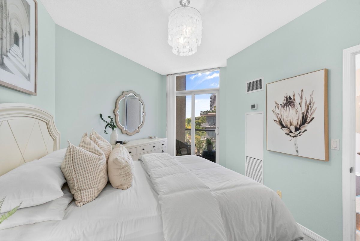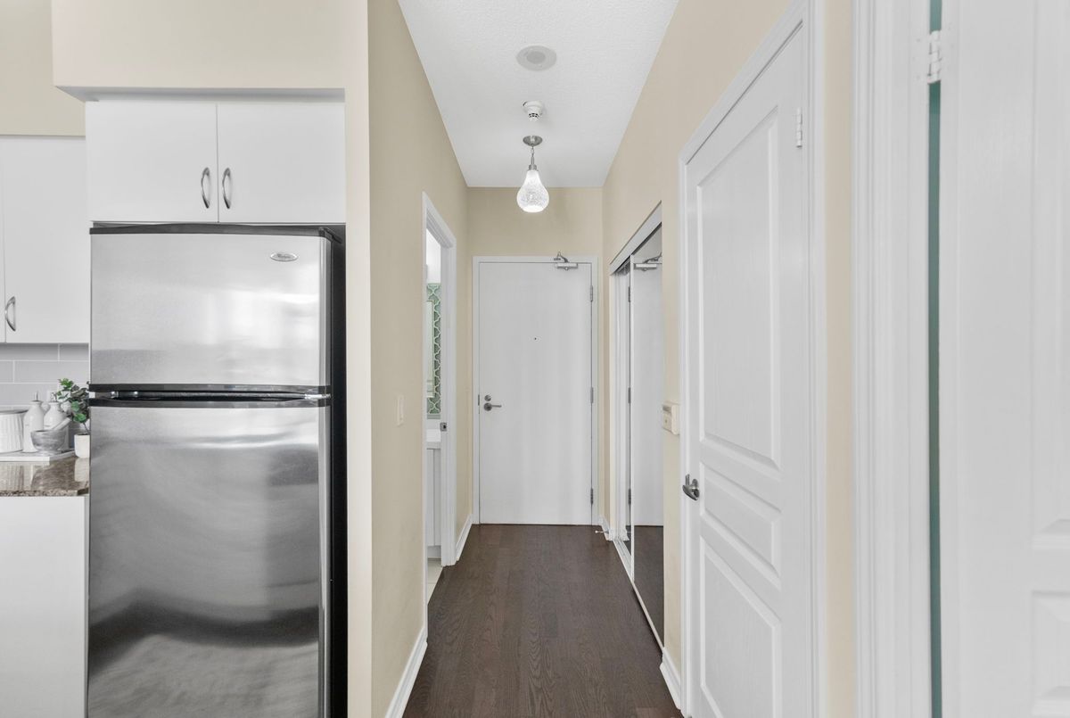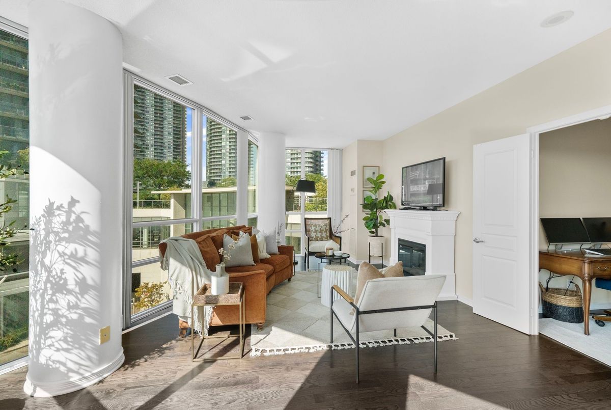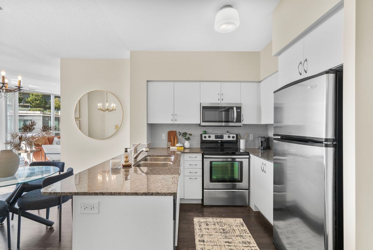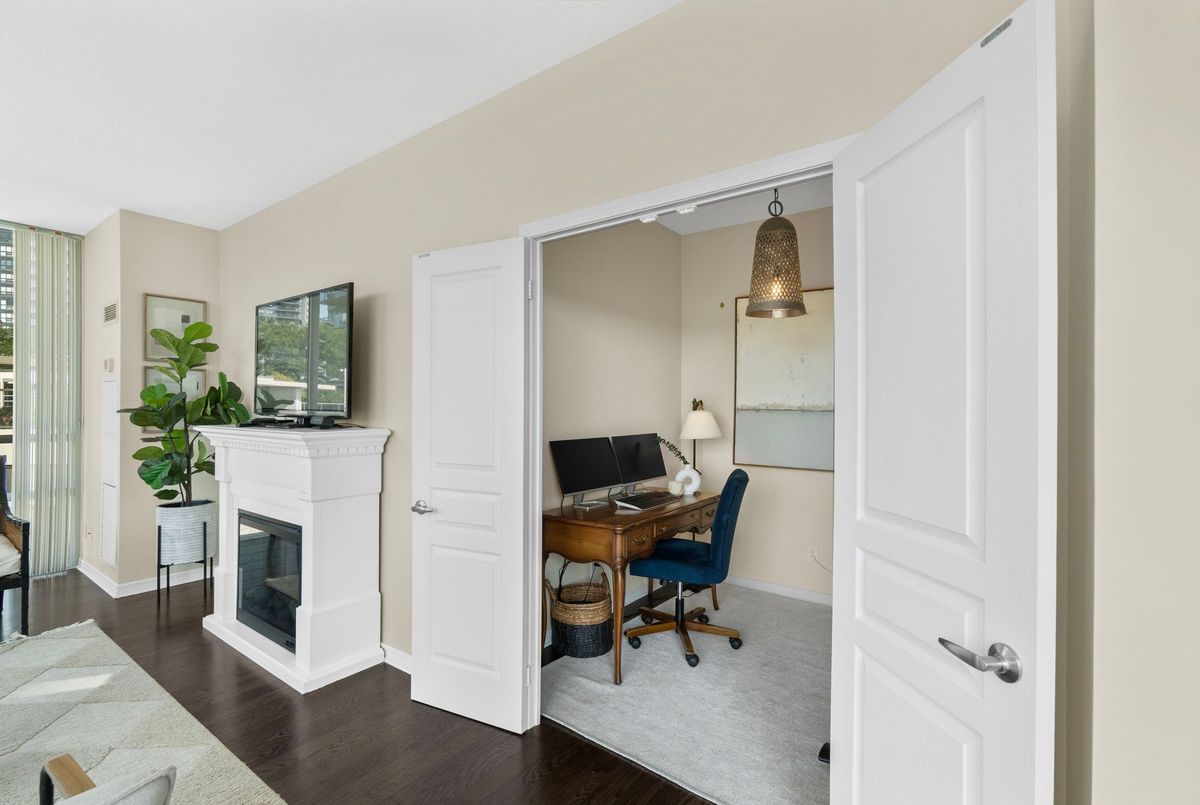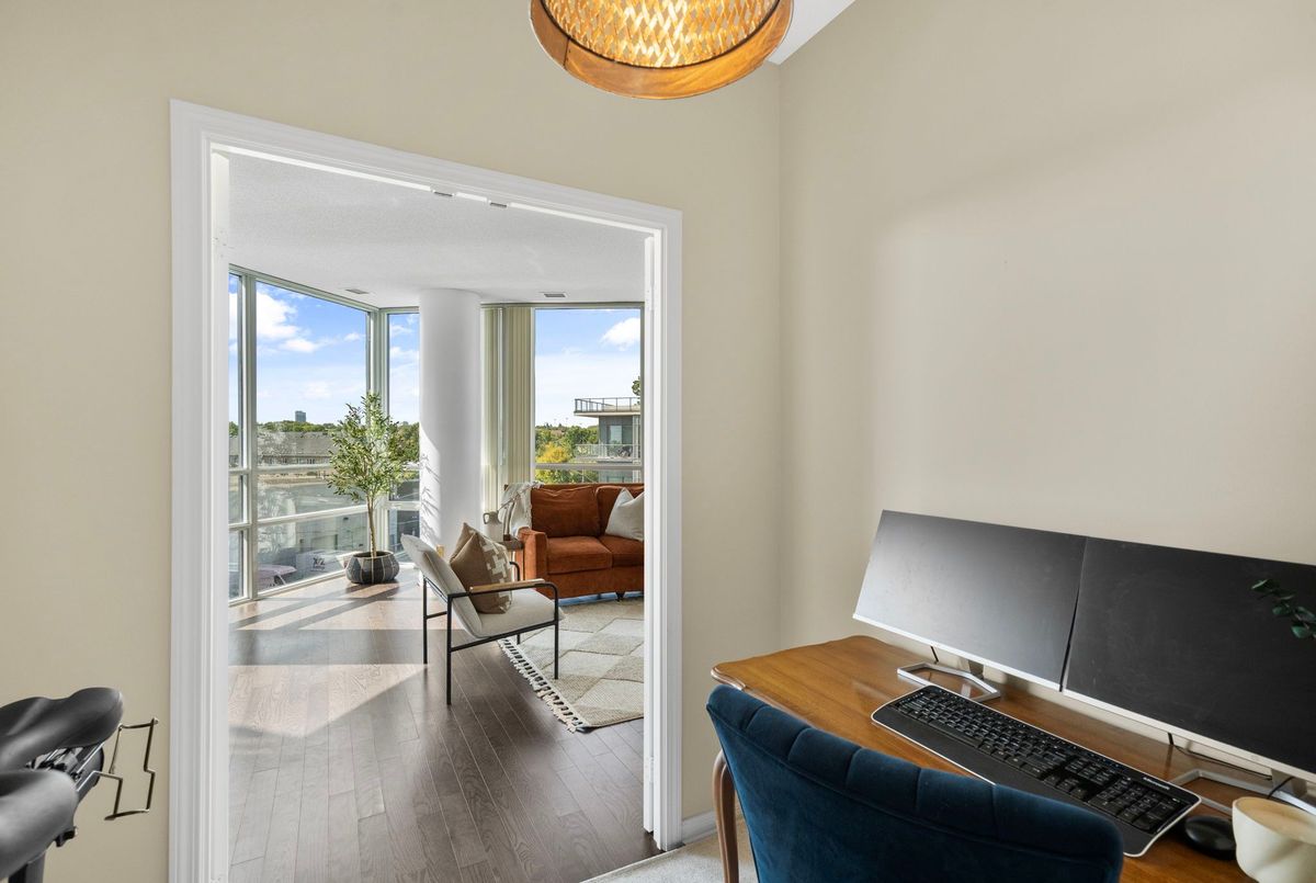 Welcome to Suite 319 at Beyond the Sea South Tower where elevated lakefront living meets exceptional value in the heart of Mimico.This spacious 1 Bedroom + Den One of a kind Cobble model spans an impressive 867 sq ft, offering the size and layout of many 2-bedroom condos without the price tag. The enclosed den with double doors is ideal as a home office, guest space, nursery, or even a second bedroom. Thoughtful design, floor-to-ceiling windows, and a private balcony maximize natural light and offer a peaceful connection to the outdoors.The open concept kitchen is equally refined and functional, featuring granite countertops, an undermount sink, and a breakfast bar perfect for entertaining. Hardwood floors flow throughout the living spaces, while carpet in the bedroom adds warmth and comfort. Enjoy five-star amenities: a sun-drenched indoor pool, fitness centre, rooftop deck with BBQs, concierge, party and business rooms, sauna, and more. Just steps to Humber Bay Park, Martin Goodman Trail, and the TTC at your doorstep, with downtown Toronto minutes away. Elevate your lifestyle without overstretching your budget. Building has no weight restrictions for pets! 2 pets allowed!