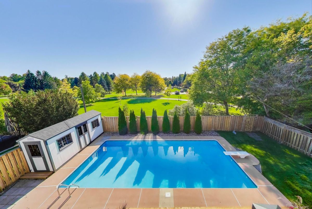 Coveted detached home on a rare 65 x 120 lot in Mineola East with gate access to Spruce Park. This bright and airy 4-bedroom, 4-bathroom residence offers an exquisite master suite with soaring windows and panoramic park views, walk-in closet, 5-piece bathroom with jetted tub, & glass-enclosed shower. The 2nd and 3rd bedrooms share a 4-piece bath with laundry (one of two laundry areas) for added convenience and both have Juliette balconies overlooking the front yard and tranquil neighbourhood tree-scape. The main floor includes a versatile office or bedroom adjacent to a 4-piece bath. Enjoy open-concept living, dining, kitchen, and family room spaces that seamlessly blend comfort and style. Enjoy evenings, dinners and entertaining on the spacious 500 sq/ft deck in your lush backyard that is ideal for entertaining. The partially finished basement includes a second laundry and 3-piece bath, as well as an office and study area. This carpet-free home boasts modern upgrades including a (2023) oven with steam cook and air fry, new roof in (2023), pool pump upgrades in (2025), removable pool safety fence. Situated in one of Mississauga's most prestigious and tranquil neighbourhoods, this home offers easy access to top-rated schools, scenic walking and biking trails, and beautiful parks including Spruce Park and nearby waterfront parks in Port Credit and Lakeview. Commute with ease via close proximity to the QEW, Highway 427, and Port Credit GO Station offering direct trains to downtown Toronto. Residents enjoy charming nearby boutiques, upscale dining, and quick drives to major shopping hubs like Square One and Sherway Gardens.Walk, bike, or drive just 3 minutes to the lake, embracing an exceptional lifestyle that balances serene natural surroundings with convenient urban amenities.This home backs onto a park, offering privacy in a vibrant community known for luxury, safety, and excellent quality of life. A superb family home with endless potential awaits in Mineola East.