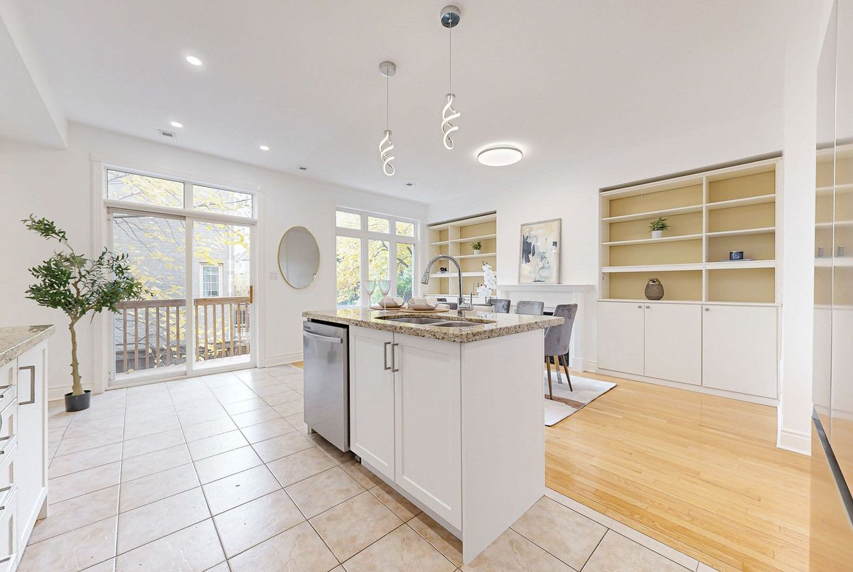 Welcome to 29 Yachters Lane - a beautifully updated 3-bedroom plus office townhome offering over 2,100 sq.ft. of living space in a quiet, private Mimico enclave just steps from the waterfront!This spacious and bright home features a large eat-in kitchen with granite countertops, stainless steel appliances, a double sink, and a walkout to a private deck perfect for barbecuing. The open-concept dining area with a cozy gas fireplace and custom built-in shelving creates an inviting space for entertaining.The oversized living room provides plenty of room to relax or gather with guests. Upstairs, the large primary suite includes a walk-in closet and a luxurious 5-piece ensuite with double sinks, a soaker tub, and a separate shower. Two additional bedrooms and a 4-piece main bath complete the upper level.Freshly painted throughout, this home features all new light fixtures, updated cabinet fronts in the kitchen and bathrooms, and modern door hardware - giving it a fresh, contemporary look.The lower level includes a spacious recreation room or guest suite with a 2-piece bath, while the main level offers a versatile office or family room with a 3-piece bath and a direct walkout to a private patio and fenced backyard - a rare feature in this complex!Additional highlights include an attached garage with custom wall and overhead storage, a private driveway, and multiple visitor parking spaces within the complex.Enjoy the best of lakeside living - stroll to the waterfront trails, parks, and playground, or explore nearby shops and restaurants along Lake Shore Blvd. Conveniently located near Metro, LCBO, Shoppers Drug Mart, TD Bank, TTC, and more.This move-in ready home offers the perfect combination of space, comfort, and location - ideal for families or professionals looking to enjoy the relaxed Mimico lifestyle!