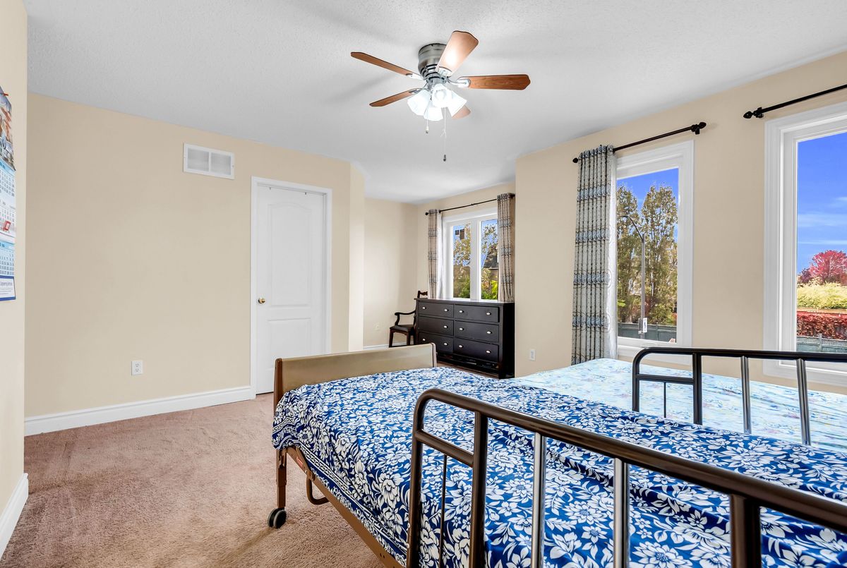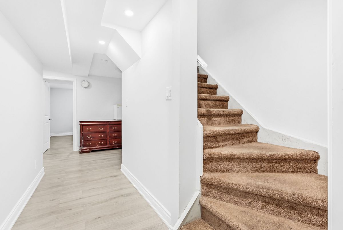 Welcome to this beautiful 3-bedroom townhouse located in the highly sought-after Churchill Meadows community! This bright and spacious home features an open-concept living and dining area, a large kitchen with a stylish backsplash, and a generous family-sized breakfast area. The primary bedroom offers a walk-in closet and a 4-piece ensuite, complemented by a convenient second-floor computer loft. Enjoy direct access to the garage, parking for up to 5 cars, and no neighbours behind for added privacy. The fully finished basement includes a room and a den, ideal for a home office, gym, or guest space. Recent renovations include new windows, main-level flooring, updated kitchen and bathroom countertops, a new garage door, and a new roof, ensuring modern comfort and peace of mind. Perfectly situated within walking distance to Ridgeway Plaza and Masjid, and close to all amenities, schools, parks, and major highways.