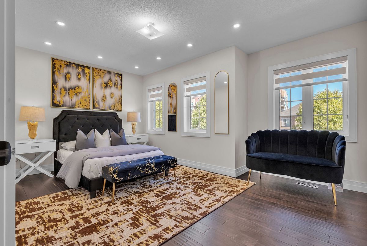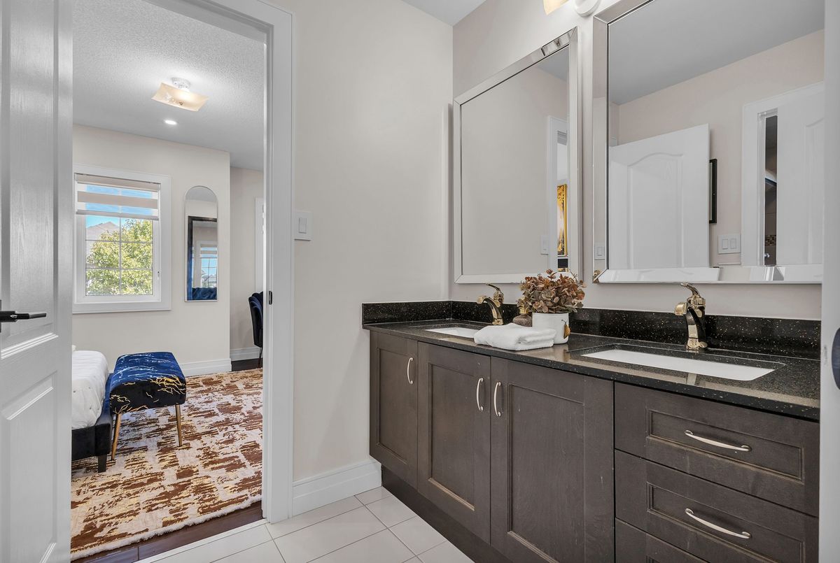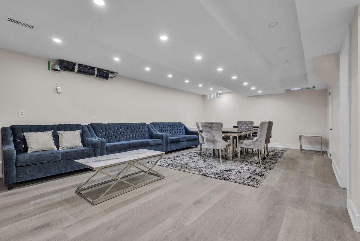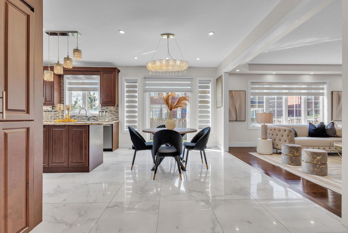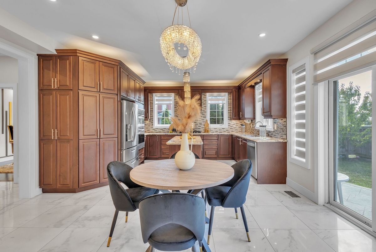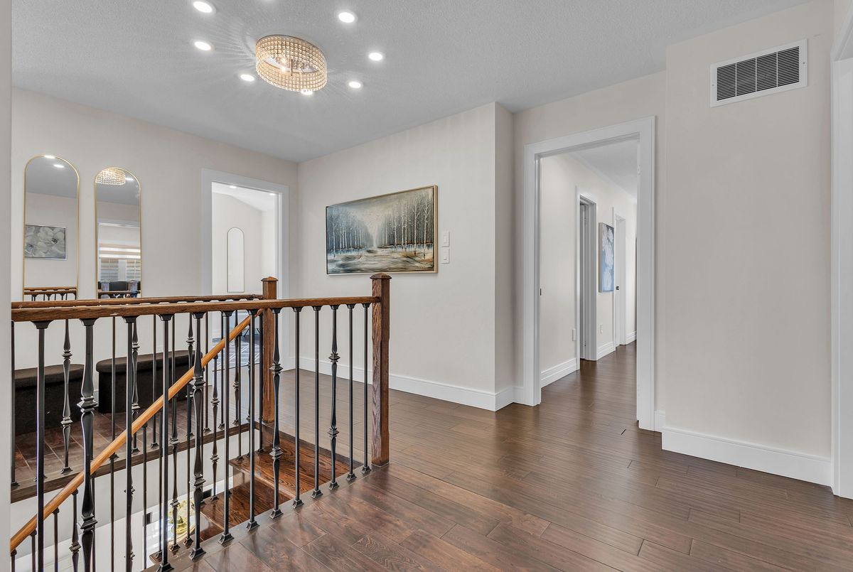 This fully upgraded home has 4500 sq. ft. of total living space on a premium corner lot with abackyard stretching 58 feet wide. This home welcomes you with a grand foyer and soaring 15-ft ceilings in the living room, framed by oversized bay windows that fill the space with natural light. The main floor showcases 24x24 marble flooring, custom metal picket railings, and over 100 pot lights across the main and second levels. A formal accent wall dining room with double door entry provides an elegant setting for entertaining, while the gourmet kitchen features three-inch granite countertops, built-in appliances, upper cabinet lighting, and spacious breakfast area. The kitchen flows into the family room, where another accent wall and fireplace create the perfect space for gatherings. Completing the main level are electric-powered blinds throughout and a full 3-piece bathroom with a stand-up shower. Upstairs, hardwood flooring runs throughout, with four generous bedrooms including a primary retreat with a 5-piece ensuite, a junior suite with its own ensuite, and two bedrooms sharing a jack-and-jill. The fully finished basement adds over 1,200 sq. ft comprised of three bedrooms, a 3-piece ensuite, abundant storage, and 60 additional pot lights. Exterior upgrades include a light brick and stone façade, exterior pot lights, and double side entries, completing this rare offering in one of Oakville's most desirable neighborhoods.