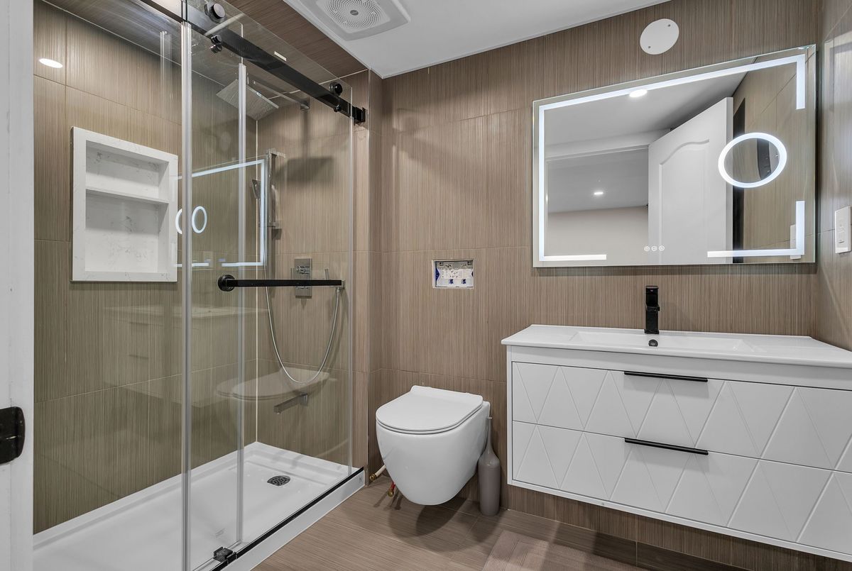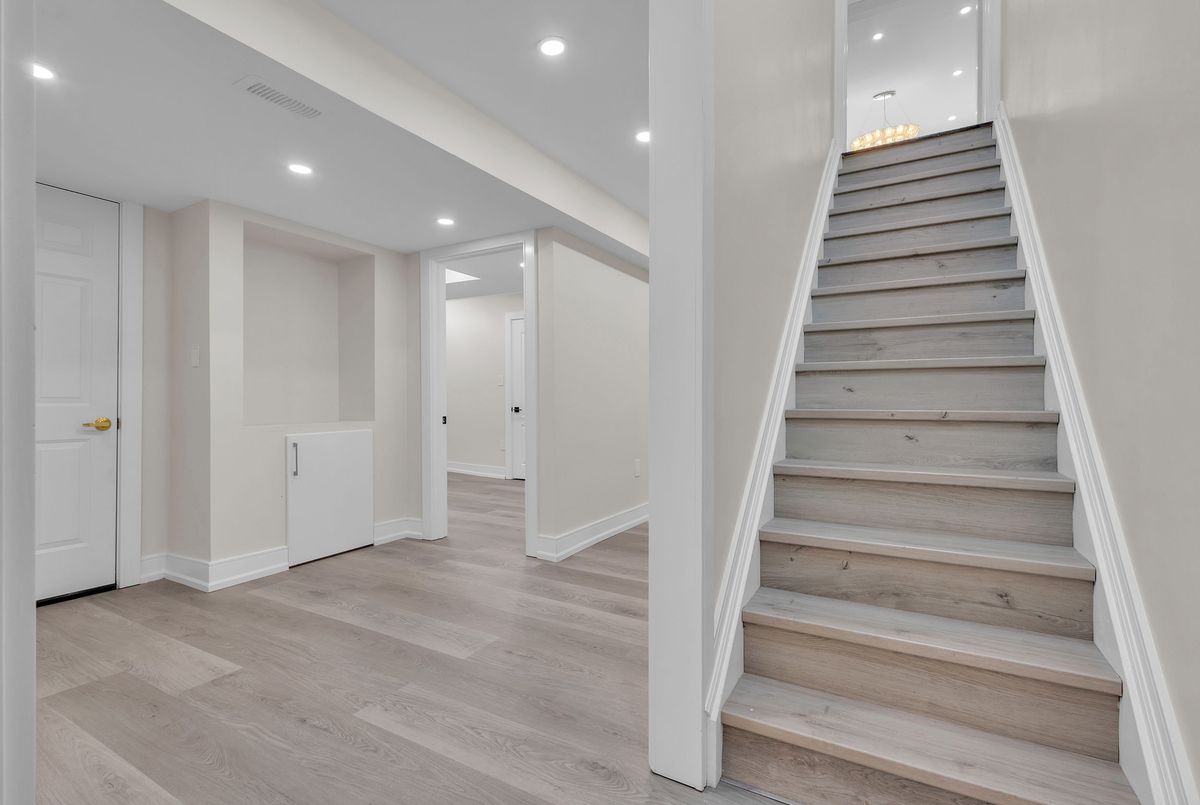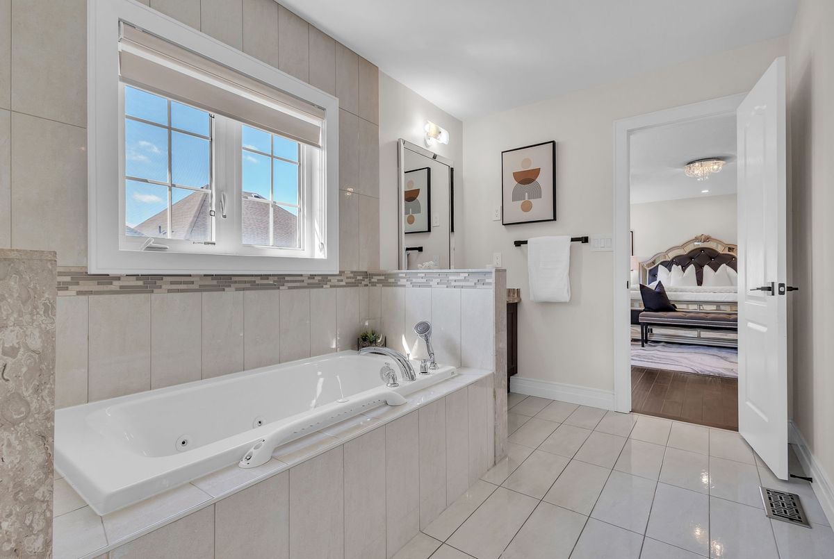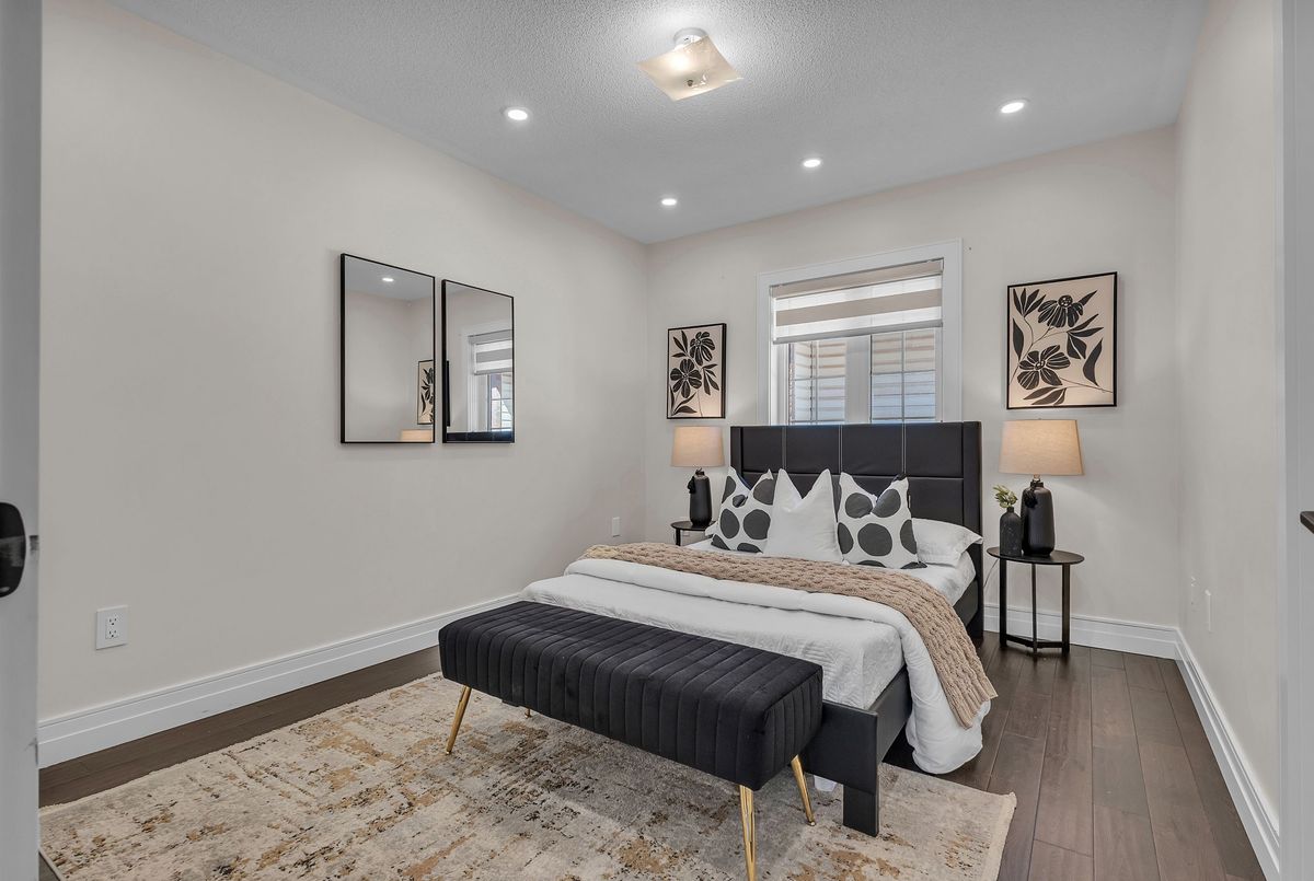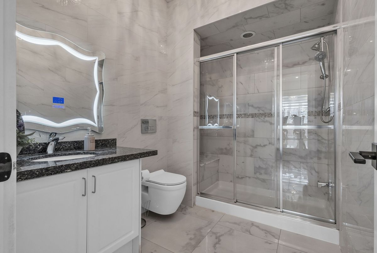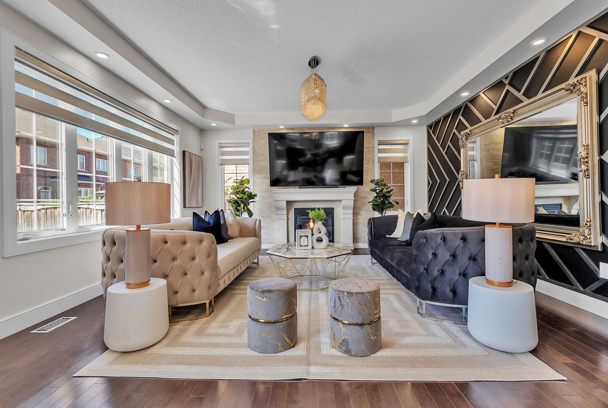This fully upgraded home has 4500 sq. ft. of total living space on a premium corner lot with abackyard stretching 58 feet wide. This home welcomes you with a grand foyer and soaring 15-ft ceilings in the living room, framed by oversized bay windows that fill the space with natural light. The main floor showcases 24x24 marble flooring, custom metal picket railings, and over 100 pot lights across the main and second levels. A formal accent wall dining room with double door entry provides an elegant setting for entertaining, while the gourmet kitchen features three-inch granite countertops, built-in appliances, upper cabinet lighting, and spacious breakfast area. The kitchen flows into the family room, where another accent wall and fireplace create the perfect space for gatherings. Completing the main level are electric-powered blinds throughout and a full 3-piece bathroom with a stand-up shower. Upstairs, hardwood flooring runs throughout, with four generous bedrooms including a primary retreat with a 5-piece ensuite, a junior suite with its own ensuite, and two bedrooms sharing a jack-and-jill. The fully finished basement adds over 1,200 sq. ft comprised of three bedrooms, a 3-piece ensuite, abundant storage, and 60 additional pot lights. Exterior upgrades include a light brick and stone façade, exterior pot lights, and double side entries, completing this rare offering in one of Oakville's most desirable neighborhoods.