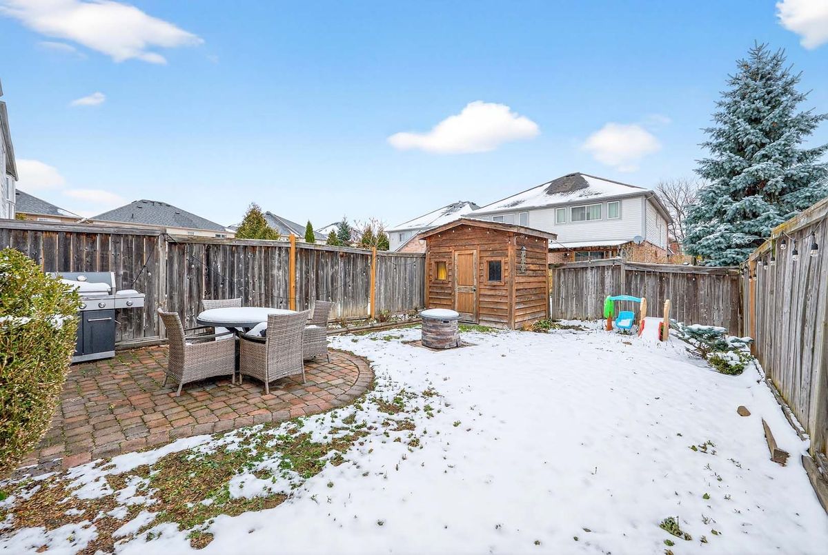 Executive 3-Bedroom Semi In The Heart Of Fletcher's Meadow With No Sidewalks And A Professionally Finished Basement! Featuring An Open Concept Layout With Hardwood Flooring Throughout, An Upgraded Kitchen With Newer Stainless Steel Appliances (2023), And Freshly Painted Interiors Including A Designer Feature Wall And Built-In Surround Sound Speakers. Step Outside To A Private Backyard Oasis Complete With Patio, Exterior Lighting, And Storage Shed-Perfect For Relaxing Or Entertaining. Upstairs Offers 3 Spacious Bedrooms And 2 Upgraded Bathrooms With Brand New Vanities. The Finished Basement With A Full Bath Provides Versatile Space For Recreation, Guests, Or Future Rental Potential. Furnace & A/C Replaced In 2022! Close To Schools, Parks, Shopping, And Transit - This Home Combines Style, Comfort, And Investment Opportunity In One Exceptional Package.