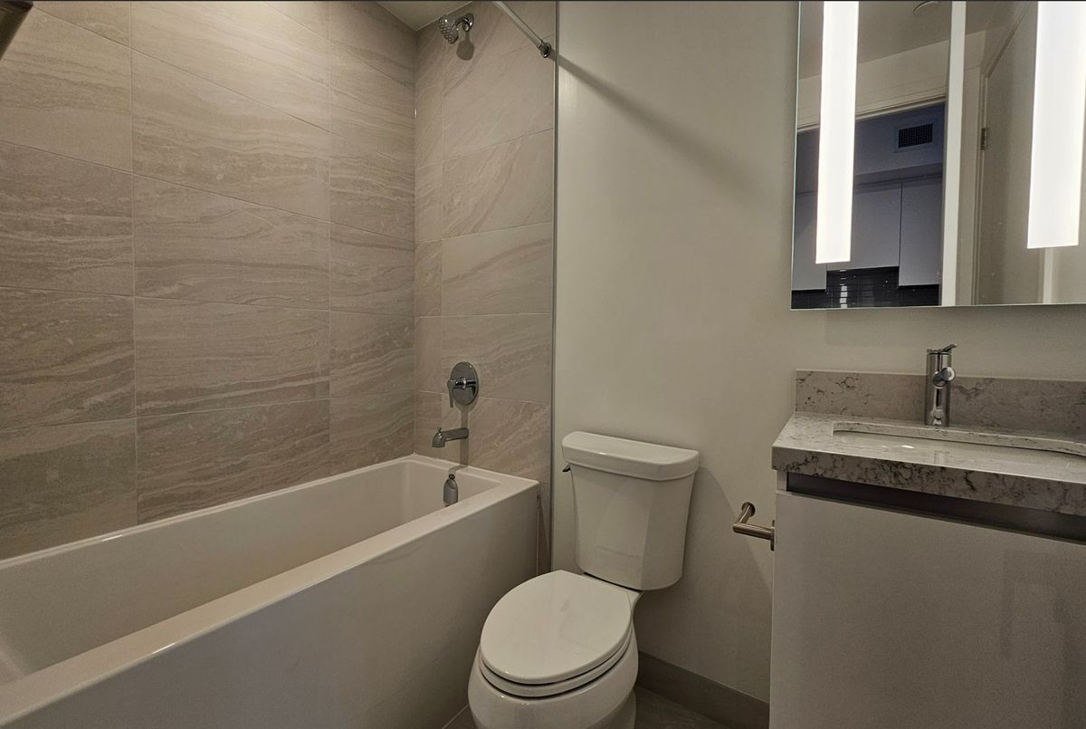 Live in the heart of the vibrant Exchange District! Welcome to EX2 at 2 Erskine Rd, perfectly situated in downtown Mississauga-just steps from Square One. This bright and spacious 1-bedroom, 1-bath suite offers comfort, style, and exceptional modern features. Enjoy elevated interior finishes such as approximately 9' ceilings in the living/dining area and primary bedroom, integrated stainless-steel appliances, imported Italian Trevisana kitchen cabinetry, quartz countertops, LATCH/DOOR smart access system, Kohler plumbing fixtures, and an efficient geothermal source. Enjoy an elevated lifestyle with an impressive collection of amenities, including a Sky Gymnasium to experience sunrise or sunset with breathtaking views, or enjoy a run on a 360-degree Sky Running Track overlooking the clouds and all of Mississauga. Work seamlessly from the modern Co-Working Space, unwind in the stylish Games Room and Lounge, or relax in the Outdoor Terrace complete with BBQs and comfortable seating. Perfectly located just minutes from major highways, GO Transit, Walmart, and all the vibrant conveniences that downtown Mississauga has to offer. Photos are taken from a similar unit with the same floor plan, upgrades, and colour selections; the actual unit may vary slightly.