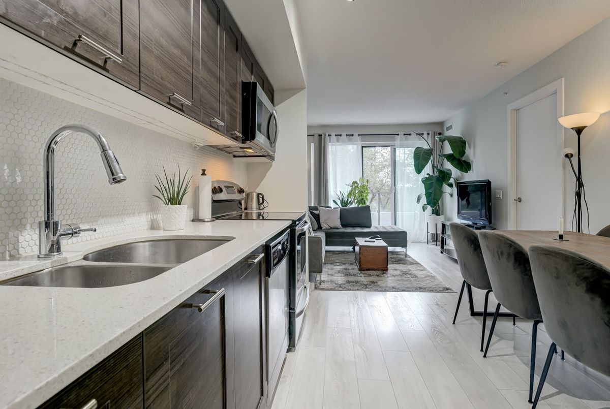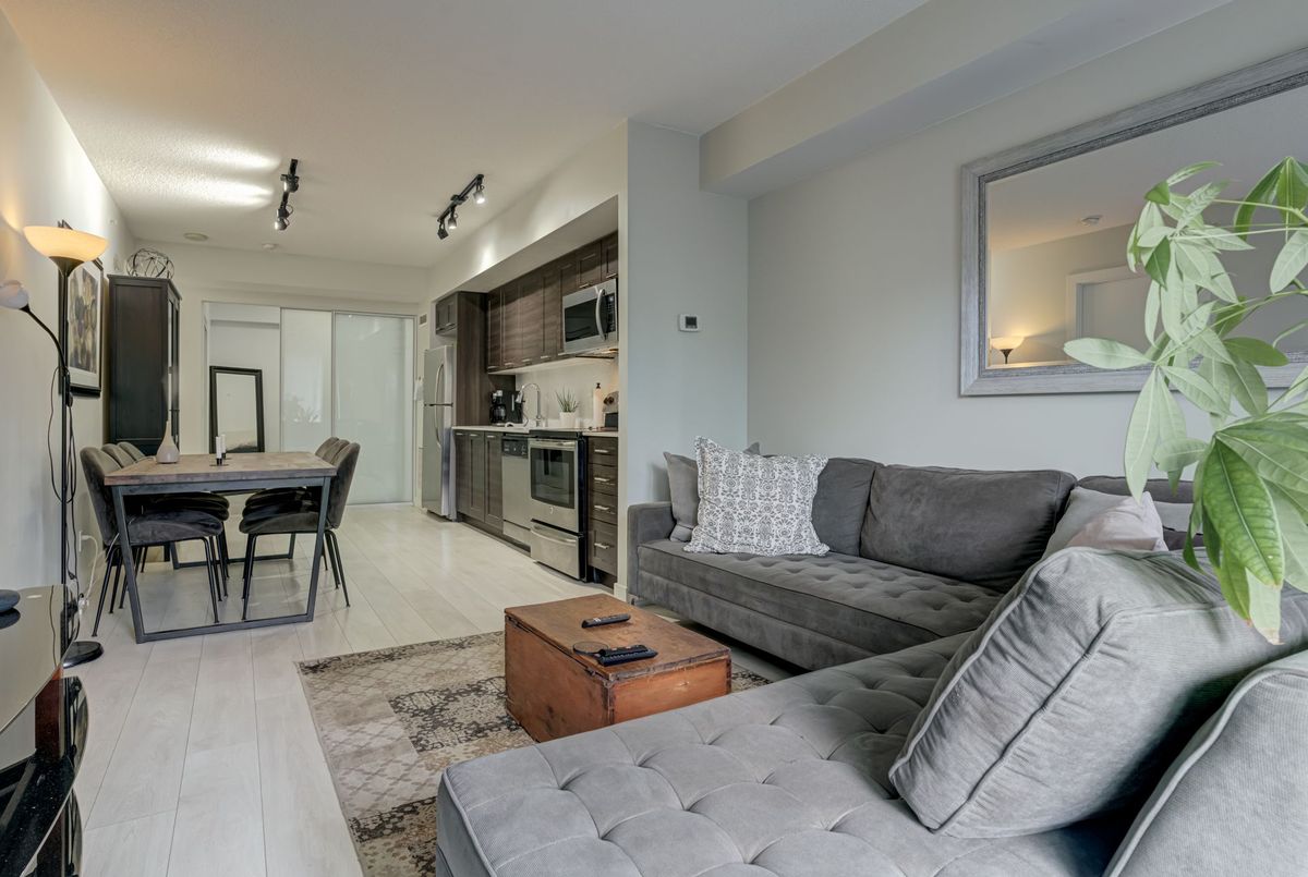 Experience refined lakeside living in this beautifully furnished, west-facing 2-bedroom plus den residence at Westlake Condos. This spacious, sun-filled layout is ideal for those who work from home and features soaring 9-foot ceilings, floor-to-ceiling windows, and sleek laminate flooring throughout. Overlooking the quiet side of the building, the unit includes a large private balcony perfect for sunset views. Residents enjoy ultimate convenience with on-site retail including Metro, Shoppers Drug Mart, Starbucks, and banks, while being steps from waterfront parks, trails, and public transit. Just minutes to the Gardiner, QEW, and Hwy 427, this home offers access to 30,000 sq. ft. of "Club W" amenities, including state-of-the-art fitness facilities, indoor/outdoor pools, a yoga studio, 24-hour concierge, and a rooftop BBQ terrace.