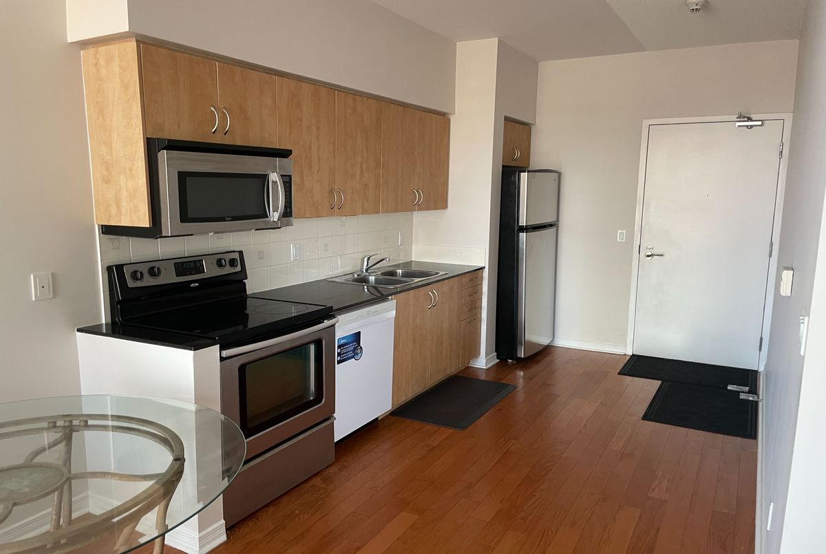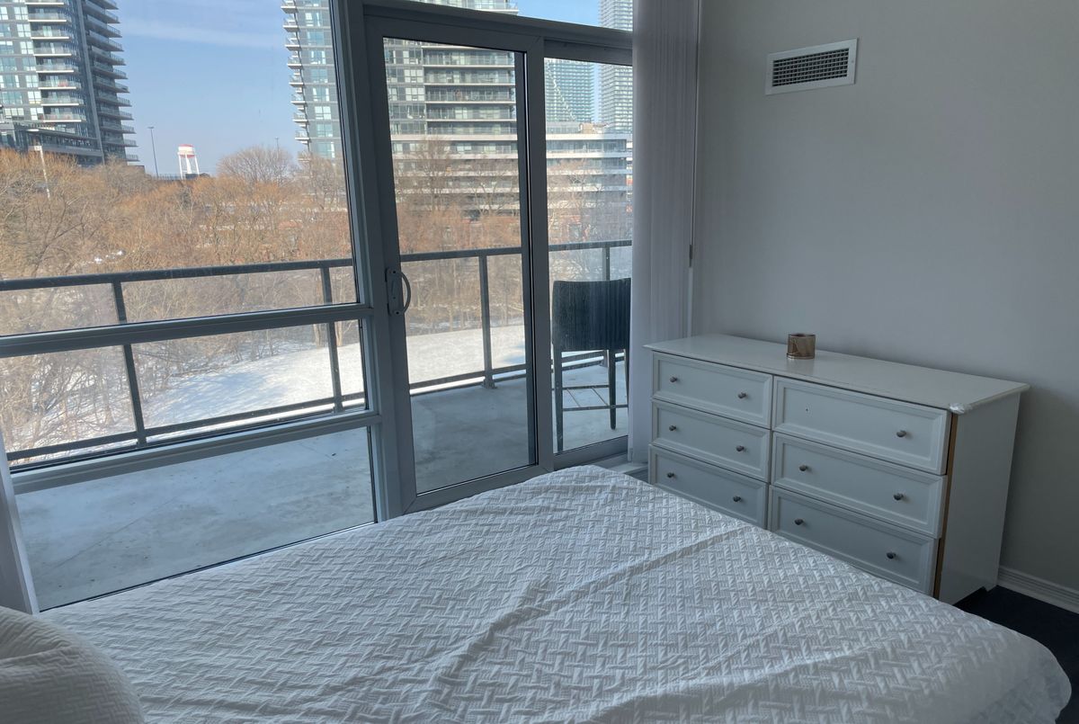 This bright 1-bedroom, 1 bathroom suite offers a rare, oversized balcony with serene treetop views overlooking the park, and gleaming hardwood throughout. Walk out to the balcony from both the bedroom and living room for your morning coffee. Enjoy indoor-outdoor living and peaceful natural surroundings right from your private perch. Located in the sought-after Humber Bay Shores community, you'll love being steps from Humber Bay Park, waterfront trails, transit, and neighbourhood conveniences. TTC access and the Gardiner Expressway are moments away, making commuting into or out of Toronto a breeze. Conveniently located at the outdoor terrace level with easy access to all of the amenities, this condo will feel like way more home than one bedroom.