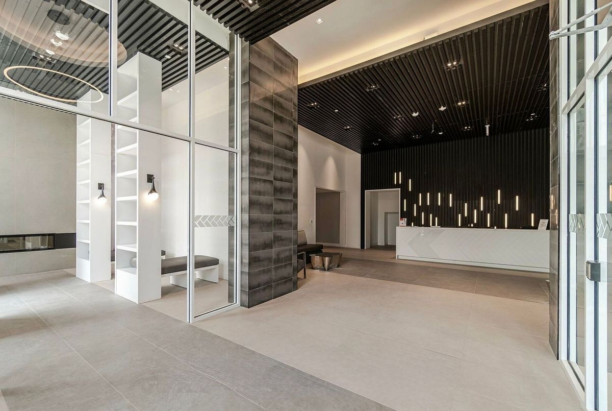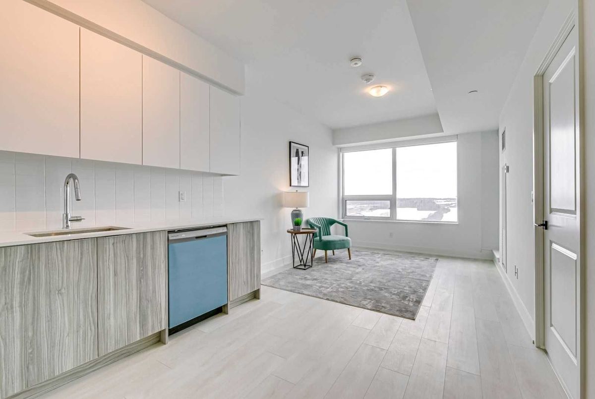 ** One Parking & One Locker Included ** Welcome to this beautifully maintained condo in the heart of Oakville's sought-after Uptown core, where convenience meets modern comfort. Ideally located within walking distance to shopping, dining, transit, and everyday amenities, this unit offers exceptional lifestyle value in a prime location. Designed with a functional and open layout, this bright one-bedroom, one-bathroom suite features a contemporary kitchen complete with premium two-tone cabinetry, quartz countertops, tiled backsplash, and stainless steel appliances. The spacious living and dining area is enhanced by 9-foot ceilings and modern lighting fixture, creating a clean and inviting atmosphere. The generously sized bedroom includes a walk-in closet, while the west-facing exposure fills the unit with natural light and offers beautiful sunset views overlooking the Escarpment. Step out onto the large private balcony with glass railing-perfect for relaxing or entertaining. Additional highlights include in-suite laundry, one underground parking space, and one locker for extra storage. An excellent opportunity to enjoy stylish, low-maintenance living in one of Oakville's most convenient and desirable communities.